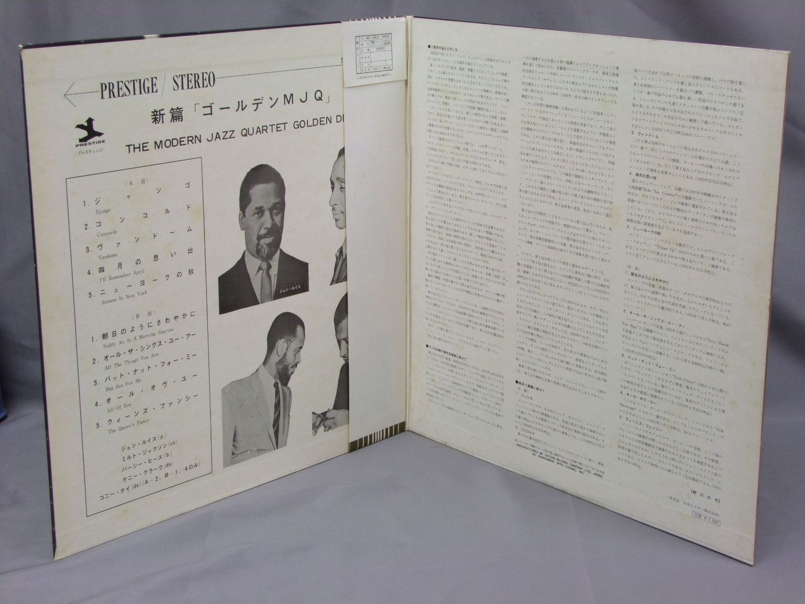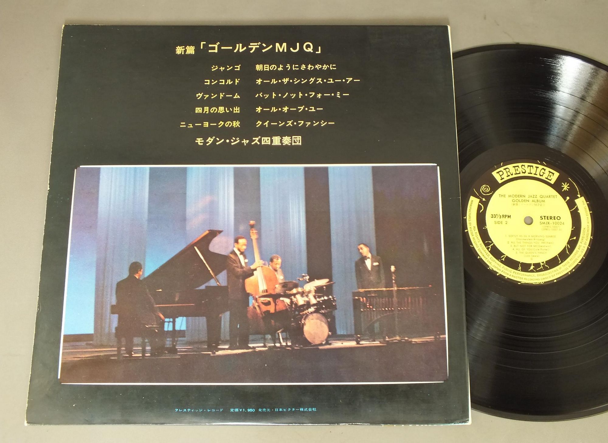 MJQモダン・ジャズ・カルテット/MODERN JAZZ QUARTET GOLDEN DISK新編「ゴールデンMJQ」 SMJX10024 製造国:日本盤 / Media:LP外観:EX盤の状態:EX-帯:EX- 価格(税込):¥1,980(売約済) 送料 7inch:定形外郵便 360円~LP:定形外郵便 660円~送料は、注文の最終画面で確認頂けます。 レコード検索 > ALL Genre > MJQ/MODERN JAZZ QUARTET GOLDEN DISK 外観 (EX)特記事項:見開きにシミ有。外観EXの共通説明:ダメージが限定的。中古品としては保存状態がよい方。シミ、ヨゴレ、スレ 少し~軽度。 盤の状態 (EX-)特記事項:薄いスリキズ・細かい表面スレ軽くある感じ。全体的には殆どが軽微なものの様子です。盤EX-の共通説明:盤面のスリキズが多少有り。音に出そうなものは殆ど無いように見える~さほど気にならないぐらいの軽いプチ数カ所程度。 帯の状態 (EX-):シミ有。 Tweet それぞれの画像をクリックすると、大きい写真が見られます こちらの商品もお勧めです 1,320円 McCOY TYNERマッコイ・タイナー / ECHOES OF A FRIENDエコーズ・オブ・ア・フレンド 1,320円 RICHIE COLEリッチー・コール / ALIVE !アライヴ ! 1,210円 PHIL WOODS & GENE QUILL QUINTETフィル・アンド・クイル5重奏団 / PHIL & QUILL WITH PRESTIGEフィル・アンド・クイル 1,210円 BENNY GOODMAN TRIOベニーグッドマントリオ / PLAYS FOR FLETCHER HENDERSON FUNDプレイズ・フォー・ザ・フィレッチャー・ヘンダーソン 990円 ISAO SASAKIイサオ・ササキ / AUTUMN SERENADEオータム・セレナーデ 1,980円 GEORGE LEWIS` RAGTIME JAZZ BANDジョージ・ルイス・ラグタイム・バンド / JASS AT OHIO UNION (LIVE 1954) 2LP BOXSETオハイオ・ユニオン (1954年実況録音) 2枚組BOX 770円 MUGGSY SPANIERマグシー・スパニア / MUGGSY SPANIERマグシー・スパニア 770円 LIONEL HAMPTONライオネル・ハンプトン楽団 / LIONEL HAMPTON ON TOURニュー・コンサート