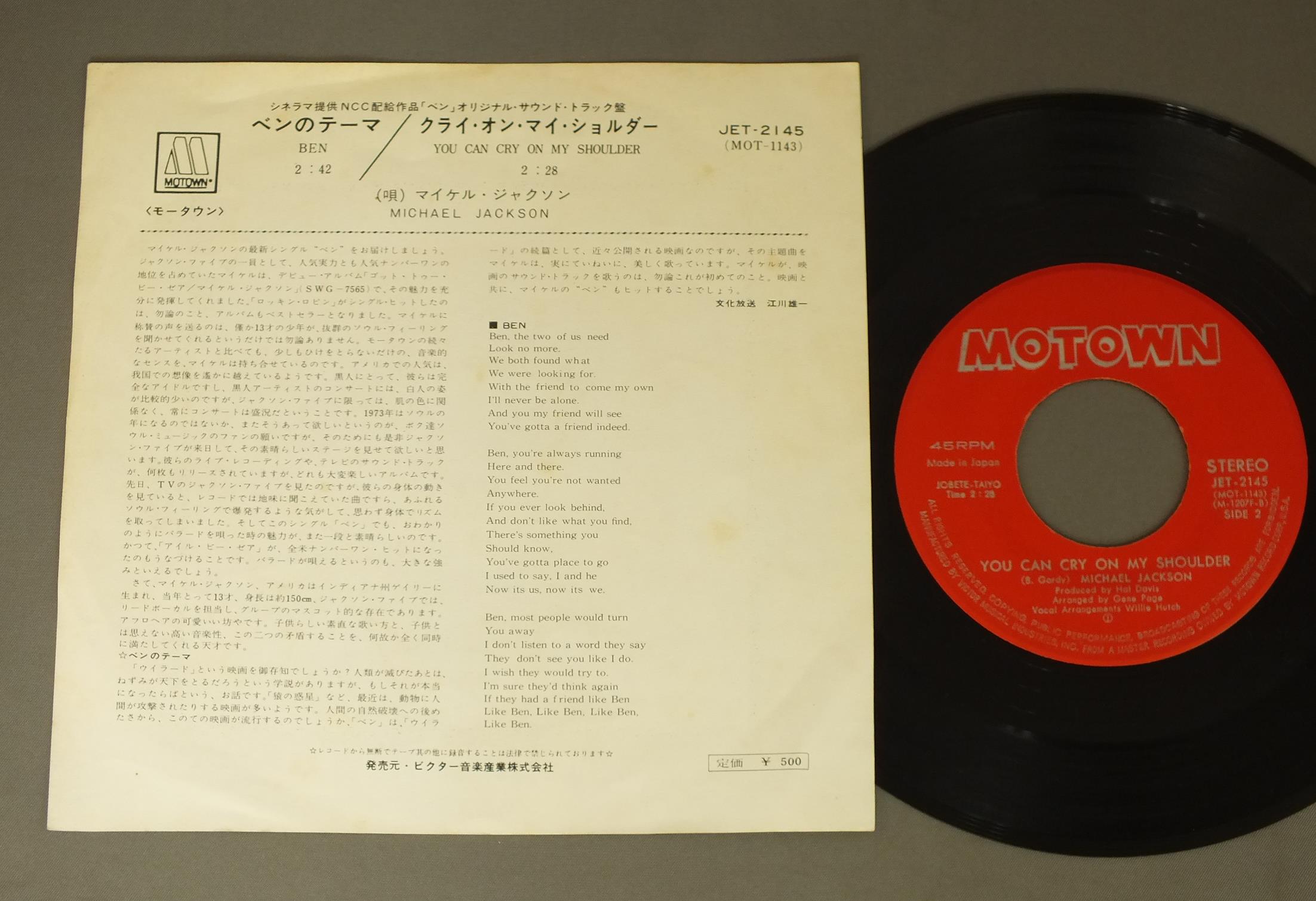 MICHAEL JACKSONマイケル・ジャクソン/BENベンのテーマ JET2145 製造国:日本盤 / Media:7inch外観:EX盤の状態:EX 価格(税込):¥1,320(売約済) 送料 7inch:定形外郵便 360円~LP:定形外郵便 660円~送料は、注文の最終画面で確認頂けます。 > > MICHAEL JACKSON/BEN 外観 (EX)特記事項:薄いシミ軽く有り。外観EXの共通説明:ダメージが限定的。中古品としては保存状態がよい方。シミ、ヨゴレ、スレ 少し~軽度。 盤の状態 (EX)特記事項:薄いスリキズ・スレ軽くある感じ。殆どが軽微なものの様子です。盤EXの共通説明:盤面のスリキズが薄いものが少し~軽度 音に出そうなものは無いように見える(軽微なソフトティック音は除く)。 Tweet それぞれの画像をクリックすると、大きい写真が見られます こちらの商品もお勧めです 1,210円 OTIS REDDINGオーティス・レディング / RECORDED LIVEビッグ・オー 未発表ライブ 1,210円 TEMPTATIONSテンプテーションズ / BACK TO BASICSバック・トゥー・ベイシックス 770円 DIANA ROSSダイアナ・ロス / ROSSロス 1,210円 O`JAYSオージェイズ / MY FAVORITE PERSONマイ・フェバリット・パーソン 770円 STEVIE WONDERスティービー・ワンダー / IN SQUARE CIRCLEイン・スクエア・サークル 1,210円 FOUR TOPSフォー・トップス / MAGICマジック 1,210円 VAN MCCOYヴァン・マッコイ / RHYTHMS OF WORLDリズム・オブ・ザ・ワールド 1,320円 DIANA ROSSダイアナ・ロス / ROSSロス