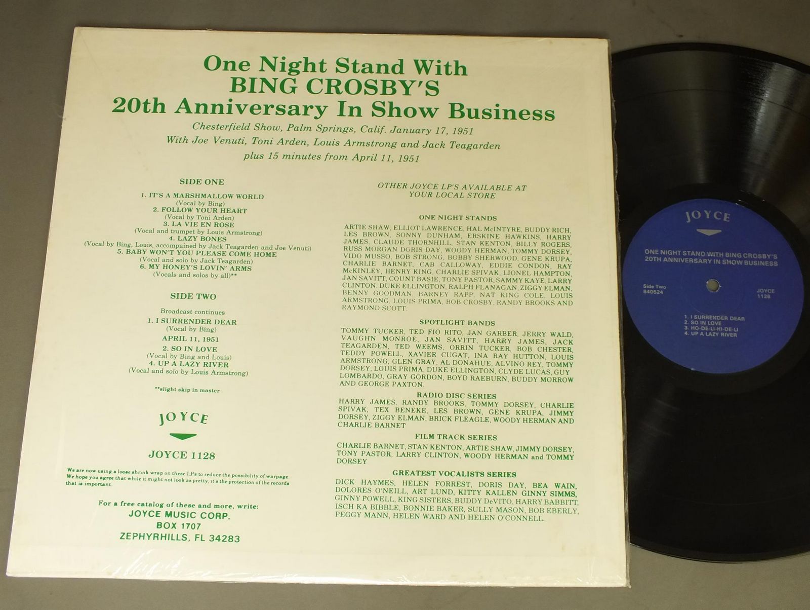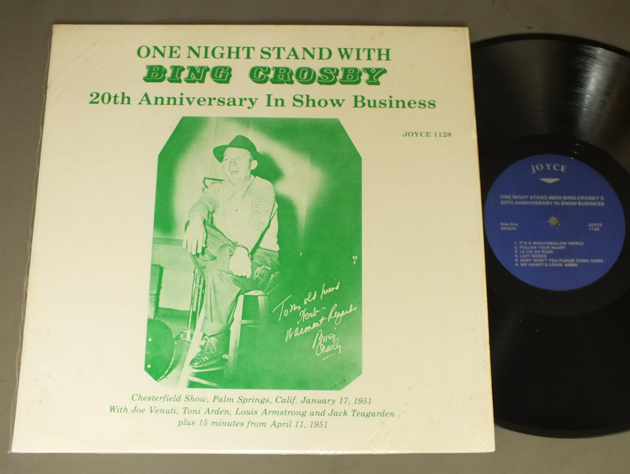 BING CROSBY/ONE NIGHT STAND 20th ANNIVERSARY IN SHOW BUSINESS 1951 JOYCE1128 製造国:米国盤 / Media:LP外観:EX-盤の状態:EX 価格(税込):¥550(売約済) 送料 7inch:定形外郵便 360円~LP:定形外郵便 660円~送料は、注文の最終画面で確認頂けます。 > > BING CROSBY/ONE NIGHT STAND 20th ANNIVERSARY IN SHOW BUSINESS 1951 外観 (EX-)特記事項:ジャケ表面にシミ、よごれ有。外観EX-の共通説明:ダメージ軽度~多少。 中古品としては普通の状態。シミ、ヨゴレ、スレなど軽く~多少。 盤の状態 (EX)特記事項:薄いスリキズ・スレ少しある感じ。一見してきれいな感じです。盤EXの共通説明:盤面のスリキズが薄いものが少し~軽度 音に出そうなものは無いように見える(軽微なソフトティック音は除く)。 Tweet それぞれの画像をクリックすると、大きい写真が見られます こちらの商品もお勧めです 770円 LARRY CARR / SINGS VERSE & CHORUS 990円 CARMAN MCRAE / ALFIE 1,210円 TERESA BREWER & THE WORLD`S GREATEST JAZZ BAND / GOOD NEWS (RALPH SUTTON AUTOGRAPHED)GOOD NEWS (RALPH SUTTONサイン付) 990円 LES BROWN AND HIS ORCHESTRA WITH DORIS DAY / SENTIMENTAL JOURNEY 1,870円 FAY DE WITT / THROUGH SICK AND SIN 990円 CLEO LAINE / BORN ON A FRIDAY 440円 HELEN O`CONNELL WITH JIMMY DORSEY & HIS ORCHESTRA / BIG BAND VOCALIST HELEN O`CONNELL. VOLUME 2 440円 DICK HAYMES / DICK HAYMES SINGS