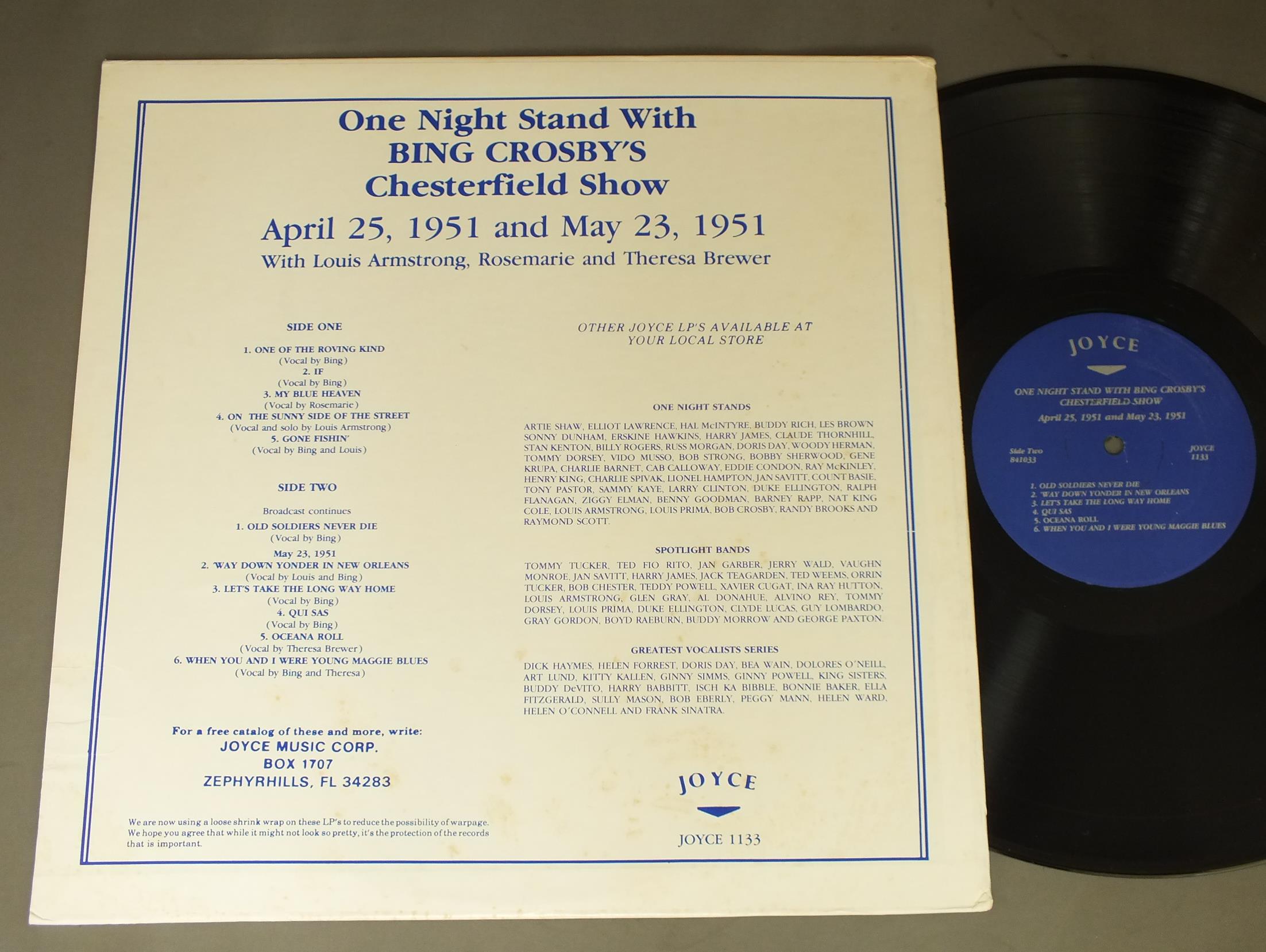 BING CROSBY/ONE NIGHT STAND CHESTERFIELD SHOW 1951 JOYCE1133 製造国:米国盤 / Media:LP外観:EX-盤の状態:EX+ 価格(税込):¥550(売約済) 送料 7inch:定形外郵便 360円~LP:定形外郵便 660円~送料は、注文の最終画面で確認頂けます。 > > BING CROSBY/ONE NIGHT STAND CHESTERFIELD SHOW 1951 外観 (EX-)特記事項:ジャケ表面にシミ、よごれ有。外観EX-の共通説明:ダメージ軽度~多少。 中古品としては普通の状態。シミ、ヨゴレ、スレなど軽く~多少。 盤の状態 (EX+)特記事項:極薄いスリキズ・スレ少し。一見してきれいな状態です。盤EX+の共通説明:盤面の極薄いスリキズ、スレ少し程度 音に出そうなものは無いように見える(極軽微なソフトティック音は除く)。 Tweet それぞれの画像をクリックすると、大きい写真が見られます こちらの商品もお勧めです 990円 CARMAN MCRAE / ALFIE 990円 LES BROWN AND HIS ORCHESTRA WITH DORIS DAY / SENTIMENTAL JOURNEY 440円 DICK HAYMES / DICK HAYMES SINGS 550円 BING CROSBY / EARLY BING CROSBY PLUS THE BING CROSBY SHOW 770円 BOB CROSBY / THE HITS OF BOB CROSBY`S BOBCAST 770円 ROSEMARY CLOONEY / MIXED EMOTIONS 1,210円 TERESA BREWER & THE WORLD`S GREATEST JAZZ BAND / GOOD NEWS (RALPH SUTTON AUTOGRAPHED)GOOD NEWS (RALPH SUTTONサイン付) 990円 RICHARD PERRY / SWING