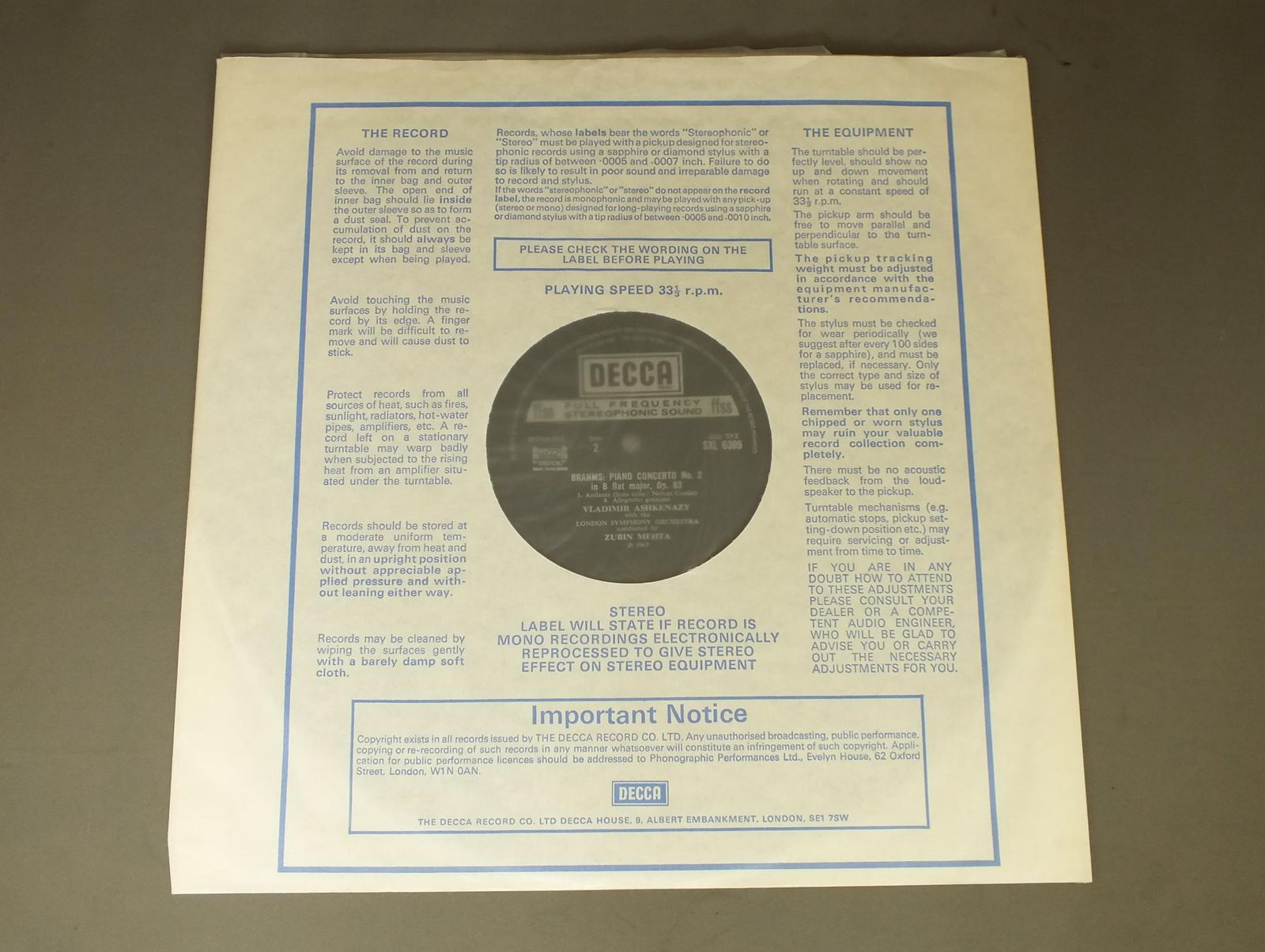 MEHTA/BRAHMS PIANO CONC. NO.2 ED4 SXL6309 製造国:英国盤 / Media:LP外観:EX盤の状態:EX 価格(税込):¥2,750(売約済) 送料 7inch:定形外郵便 360円~LP:定形外郵便 660円~送料は、注文の最終画面で確認頂けます。 > > MEHTA/BRAHMS PIANO CONC. NO.2 ED4 外観 (EX)特記事項:特記なし。コンディションリストを参照ください。外観EXの共通説明:ダメージが限定的。中古品としては保存状態がよい方。シミ、ヨゴレ、スレ 少し~軽度。 盤の状態 (EX)特記事項:長めのスレキズがありますが、音には影響ない感じの薄いスレです。盤EXの共通説明:盤面のスリキズが薄いものが少し~軽度 音に出そうなものは無いように見える(軽微なソフトティック音は除く)。 Tweet それぞれの画像をクリックすると、大きい写真が見られます こちらの商品もお勧めです 990円 BERNSTEIN / R. STRAUSS-ALSO SPRACH-ZARATHUSTRA 990円 KLEMPERER / BRAHMS-SINFONIA N.1 990円 RUDOLF SERKIN-SZELL / MOZART-PIANO CONCERTI NOS19 & 20 2,420円 MENUHIN ENESCO / DVORAK-MENDELSSOHN VIOLIN CONC. 990円 TOSCANINI / BEETHOVEN SYM. NO6 OP 68`PASTORAL` 1,320円 KONWITSCHNY / BEETHOVEN - SYMPHONY NO7 & 8 1,650円 MENUHIN / ETERNA BARTOK VIOLINKONZERT 990円 SMETACEK / DVORAK-SYM.