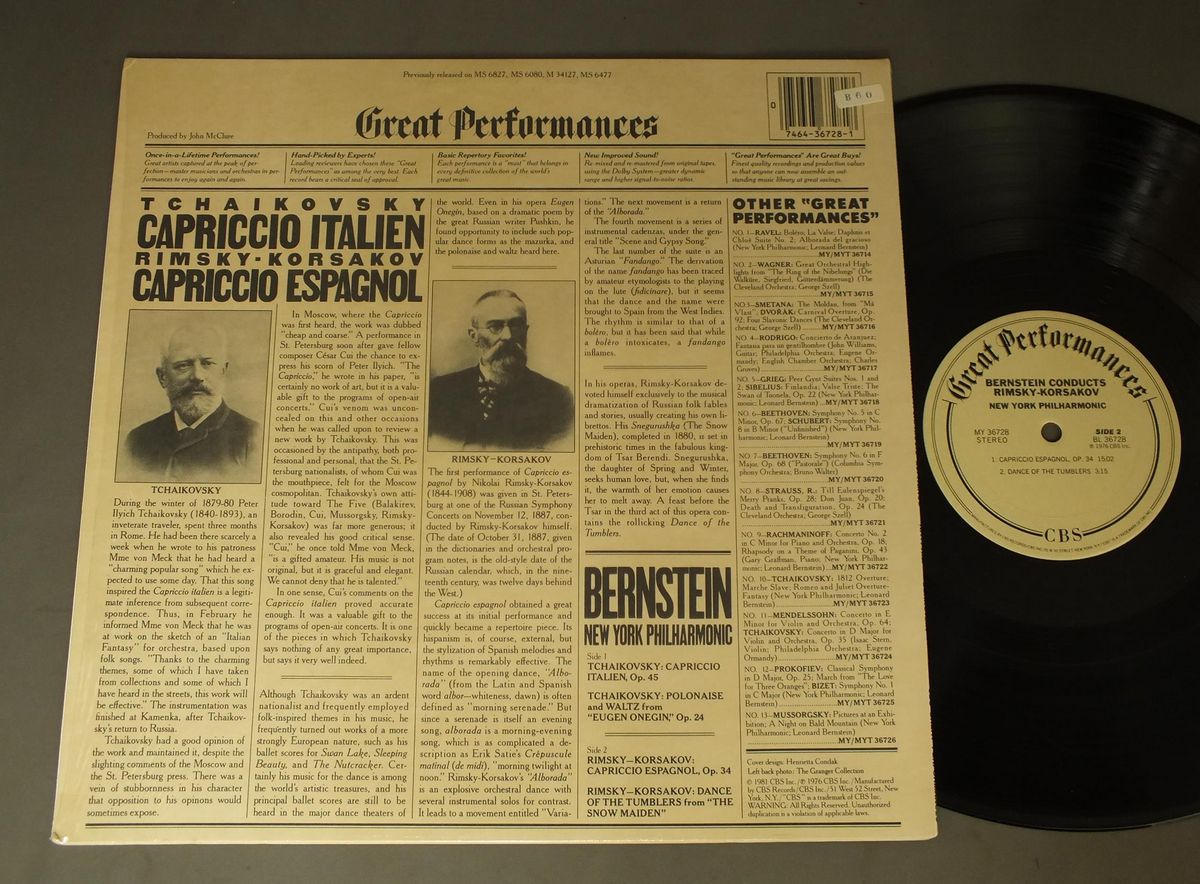 BERNSTEIN/TCHAIKOVSKY:CAPRICCIO ITALIEN MY36728 製造国:米国盤 / Media:LP外観:EX+盤の状態:EX+ 価格(税込):¥990(売約済) 送料 7inch:定形外郵便 360円~LP:定形外郵便 660円~送料は、注文の最終画面で確認頂けます。 > > BERNSTEIN/TCHAIKOVSKY:CAPRICCIO ITALIEN 外観 (EX+)特記事項:特記なし。コンディションリストを参照ください。外観EX+の共通説明:中古としては美品、一見してきれいでダメージが軽微。シミ、ヨゴレ、スレ有っても僅か~少し。 盤の状態 (EX+)特記事項:極薄いスリキズ・スレ少し。一見してきれいな状態です。盤EX+の共通説明:盤面の極薄いスリキズ、スレ少し程度 音に出そうなものは無いように見える(極軽微なソフトティック音は除く)。 Tweet それぞれの画像をクリックすると、大きい写真が見られます こちらの商品もお勧めです 990円 ROSTROPOVITCH / TCHAIKOVSKY-ROMEO&JULIET etc 1,320円 KONWITSCHNY / BEETHOVEN-SYM.S NOS 7 & 8 2,750円 BOHM / R. STRAUSS-AINSI PARLA ZARATHOUSTRA 990円 ORMANDY / FRANCK-SYM. 1,210円 ASHKENAZY - ENGLISH CHEMBER ORCHESTRA / WAGNER - SIEGFRIED IDYLL 990円 GULDA - STEIN / BEETHOVEN - PIANO CONC. NO5 4,950円 FURTWANGLER / J.HAYDN-SYM. -MOZART-SYM. 1,650円 JOCHUM / BEETHOVEN- SYM.NO1 & NO8