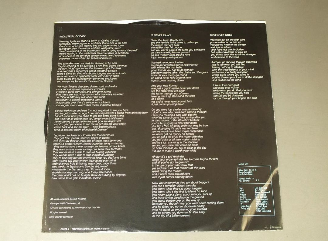 DIRE STRAITS/LOVE OVER GOLD 23728 1 製造国:米国盤 / Media:LP外観:EX盤の状態:EX 価格(税込):¥880(売約済) 送料 7inch:定形外郵便 360円~LP:定形外郵便 660円~送料は、注文の最終画面で確認頂けます。 > > DIRE STRAITS/LOVE OVER GOLD 外観 (EX)特記事項:背やヘリにスレ有。外観EXの共通説明:ダメージが限定的。中古品としては保存状態がよい方。シミ、ヨゴレ、スレ 少し~軽度。 盤の状態 (EX)特記事項:薄いスリキズ・スレ軽くある感じ。殆どが軽微なものの様子です。盤EXの共通説明:盤面のスリキズが薄いものが少し~軽度 音に出そうなものは無いように見える(軽微なソフトティック音は除く)。 Tweet それぞれの画像をクリックすると、大きい写真が見られます こちらの商品もお勧めです 1,650円 LLOYD COLE AND THE COMMOTION / EASY PIECES 1,320円 SUNSET STRIP / MOVE RIGHT IN 990円 TUXEDOMOON / TIME TO LOSE-BLIND 3,300円 KING OF LUXEMBOURG / ROYAL BASTARD 770円 CLASSIX NOUVEAUX / CLASSIX NOUVEAUX 1,980円 PRISONSHAKE / ROARING THIRD 1,650円 SAD CAFE / FACADES BLUE VINYLFACADES 青盤 660円 GO WEST / GO WEST