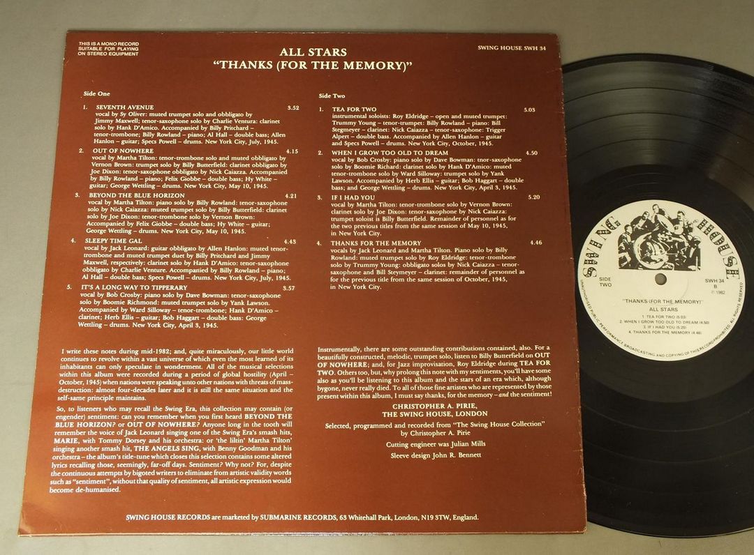 BOB CROSBY YANK LAWSON etc/THANKS FOR THE MEMORY SWH34 製造国:英国盤 / Media:LP外観:EX盤の状態:EX+ 価格(税込):¥660(売約済) 送料 7inch:定形外郵便 360円~LP:定形外郵便 660円~送料は、注文の最終画面で確認頂けます。 > > BOB CROSBY YANK LAWSON etc/THANKS FOR THE MEMORY 外観 (EX)特記事項:特記なし。コンディションリストを参照ください。外観EXの共通説明:ダメージが限定的。中古品としては保存状態がよい方。シミ、ヨゴレ、スレ 少し~軽度。 盤の状態 (EX+)特記事項:薄いスリキズ・スレ少し。一見してきれいな状態です。盤EX+の共通説明:盤面の極薄いスリキズ、スレ少し程度 音に出そうなものは無いように見える(極軽微なソフトティック音は除く)。 Tweet それぞれの画像をクリックすると、大きい写真が見られます こちらの商品もお勧めです 770円 LIONEL HAMPTON / LIONEL HAMPTON&HIS BIG BAND `OUTRAGEOUS` 1,100円 HARRY JAMESハリー・ジェイムズ / ALL ABOUT HARRY JAMES 770円 LIONEL HAMPTON / BRAT OF THE BIG BANDS GOOD VIBES 770円 ARTIE SHAW ORCHESTRA / BORN TO SWING 990円 BUCK CLAYTON / JAM SESSION VOL.1 AUTOGRAPHEDSIR CHARLESサイン付 1,210円 YANK LAWSON & BOB HAGGART / WHAT`S NEW AUTOGRAPHEDWHAT`S NEW RALPH SUTTONサイン付 1,210円 EDDIE CONDON & DIXIELAND ALL STARS / SPOTLIGHT ON AUTOGRAPHEDSPOTLIGHT ON サイン付 1,320円 YANK LAWSON AND BOB HAGGART / WORLD`S GREATEST JAZZ BAND