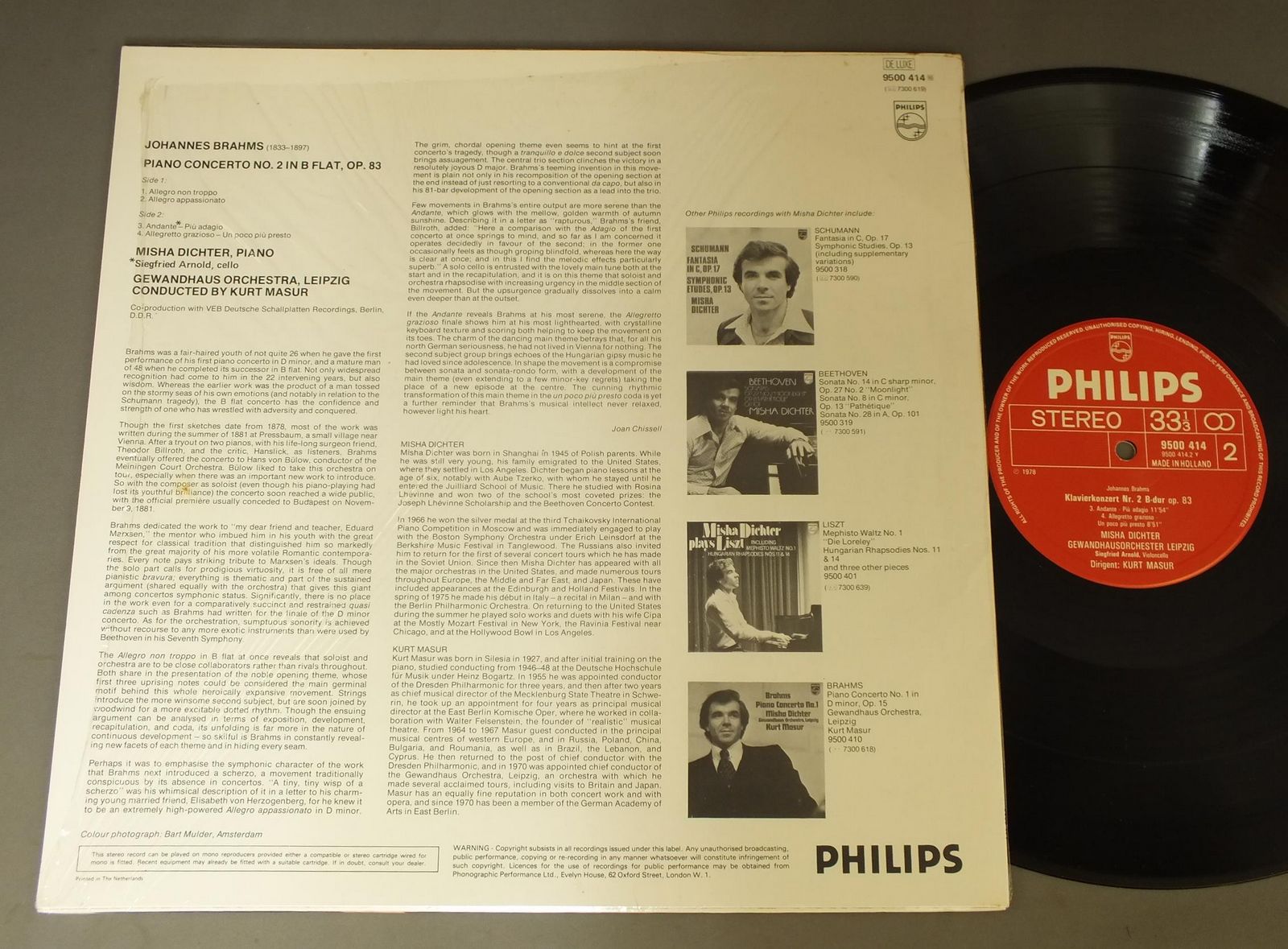MASURマズ―ア/BRAHMS: PIANO CONCERTO NO.2 9500 414 製造国:オランダ盤 / Media:LP外観:EX+盤の状態:EX 価格(税込):¥880(売約済) 送料 7inch:定形外郵便 360円~LP:定形外郵便 660円~送料は、注文の最終画面で確認頂けます。 > > MASUR/BRAHMS: PIANO CONCERTO NO.2 外観 (EX+)特記事項:特記なし。コンディションリストを参照ください。外観EX+の共通説明:中古としては美品、一見してきれいでダメージが軽微。シミ、ヨゴレ、スレ有っても僅か~少し。 盤の状態 (EX)特記事項:薄いスリキズ・スレ軽くある感じ。殆どが軽微なものの様子です。盤EXの共通説明:盤面のスリキズが薄いものが少し~軽度 音に出そうなものは無いように見える(軽微なソフトティック音は除く)。 Tweet それぞれの画像をクリックすると、大きい写真が見られます こちらの商品もお勧めです 1,650円 DAVIS / BERLIOZ TE DEUM 990円 STOKOWSKI / DEBUSSY-NOCTURNES-RAVEL-RAPSODIE ESPAGNOLE 1,320円 ANDERSEN / GRIEG SYM. 990円 NEUMANN / SMETANA-SWEDISH SYMPHONIC POEMS 990円 KRIPS / BRAHMS-SYM. NO1 2,200円 FERNANDO PREVITALI / CASELLA-LA GIARA 990円 SOLTI / NO39 MOZART-LE NOZZE DI FIGARO 990円 MARRINER / MOZART PETITS RIENS