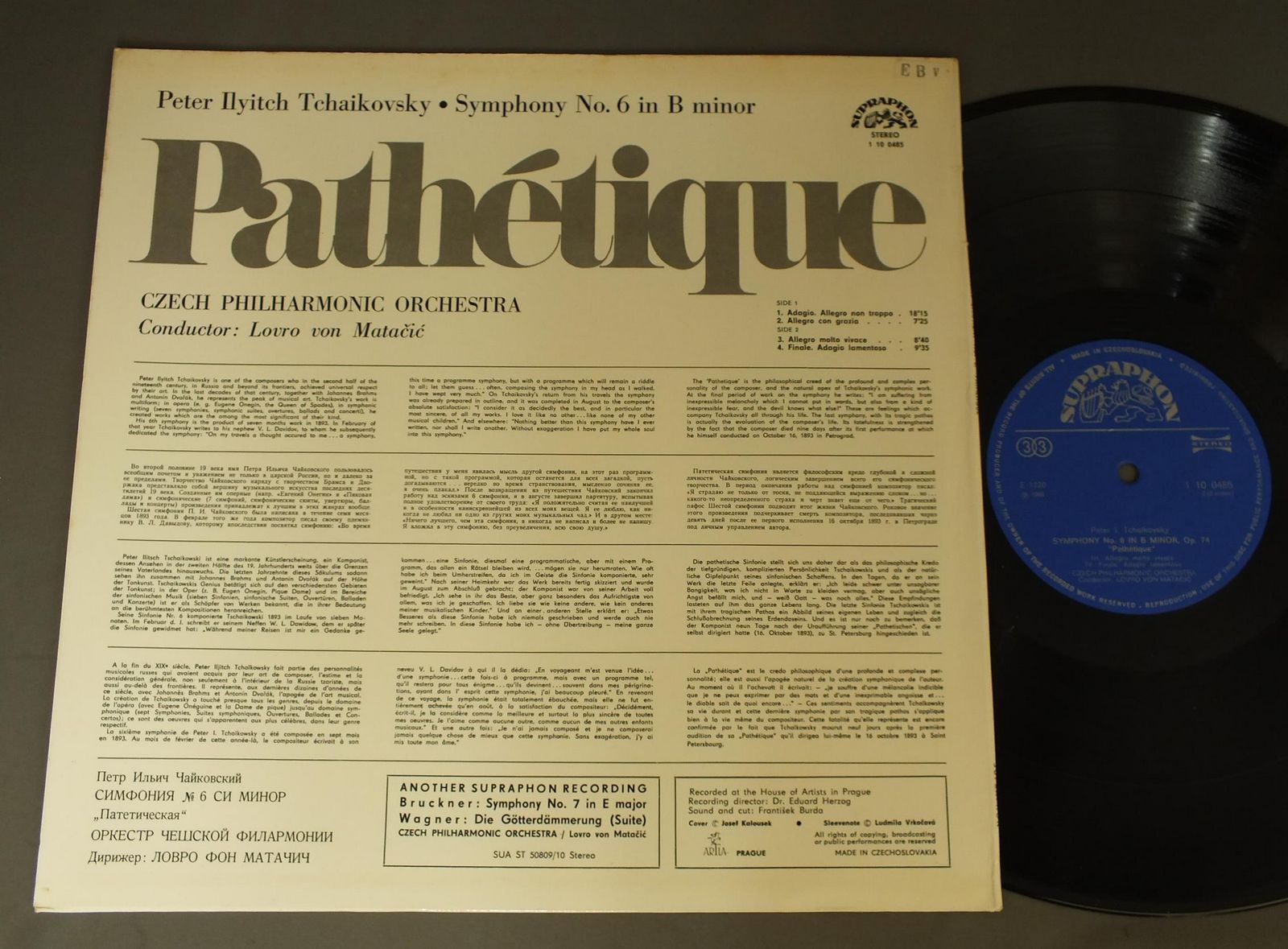 MATACIC/TCHAIKOVSKY: SYM. NO.6 PATHETIQUE 1 100 485 製造国:輸入盤 / Media:LP外観:EX盤の状態:EX+ 価格(税込):¥990(売約済) 送料 7inch:定形外郵便 360円~LP:定形外郵便 660円~送料は、注文の最終画面で確認頂けます。 > > MATACIC/TCHAIKOVSKY: SYM. NO.6 PATHETIQUE 外観 (EX)特記事項:ヘリにシミ、よごれ有。外観EXの共通説明:ダメージが限定的。中古品としては保存状態がよい方。シミ、ヨゴレ、スレ 少し~軽度。 盤の状態 (EX+)特記事項:薄いスリキズ・スレ少し。一見してきれいな状態です。盤EX+の共通説明:盤面の極薄いスリキズ、スレ少し程度 音に出そうなものは無いように見える(極軽微なソフトティック音は除く)。 その他:チェコ盤 Tweet それぞれの画像をクリックすると、大きい写真が見られます こちらの商品もお勧めです 1,320円 JAROSLAV KROMBHOLC / MARTINU-JULIETTA 990円 KUBELIK / JANACEK-TARAS BULBA-MARTINU- 2,640円 FURTWANGLER / WEBER-IL FRANCO CACCIATORE 1,430円 KUBELIK / DVORAK OVERTURES 1,540円 BERNSTEIIN - WIENER PHILHARMONIKERバーンスタイン - ウィーンフィルハーモニー管弦楽団 / BEETHOVEN - SYMPHONY NO.1&2ベートーヴェン - 交響曲第1番2番 990円 T.VARGA - J.SEMKOW / NIELSEN - VIOLIN CONC. 990円 MARTINON / DEBUSSY-LA MER-NOCTURNES-FAUNE 1,980円 CREMENS KRAUSS / STRAUSS TILL EULENSPIEGEL