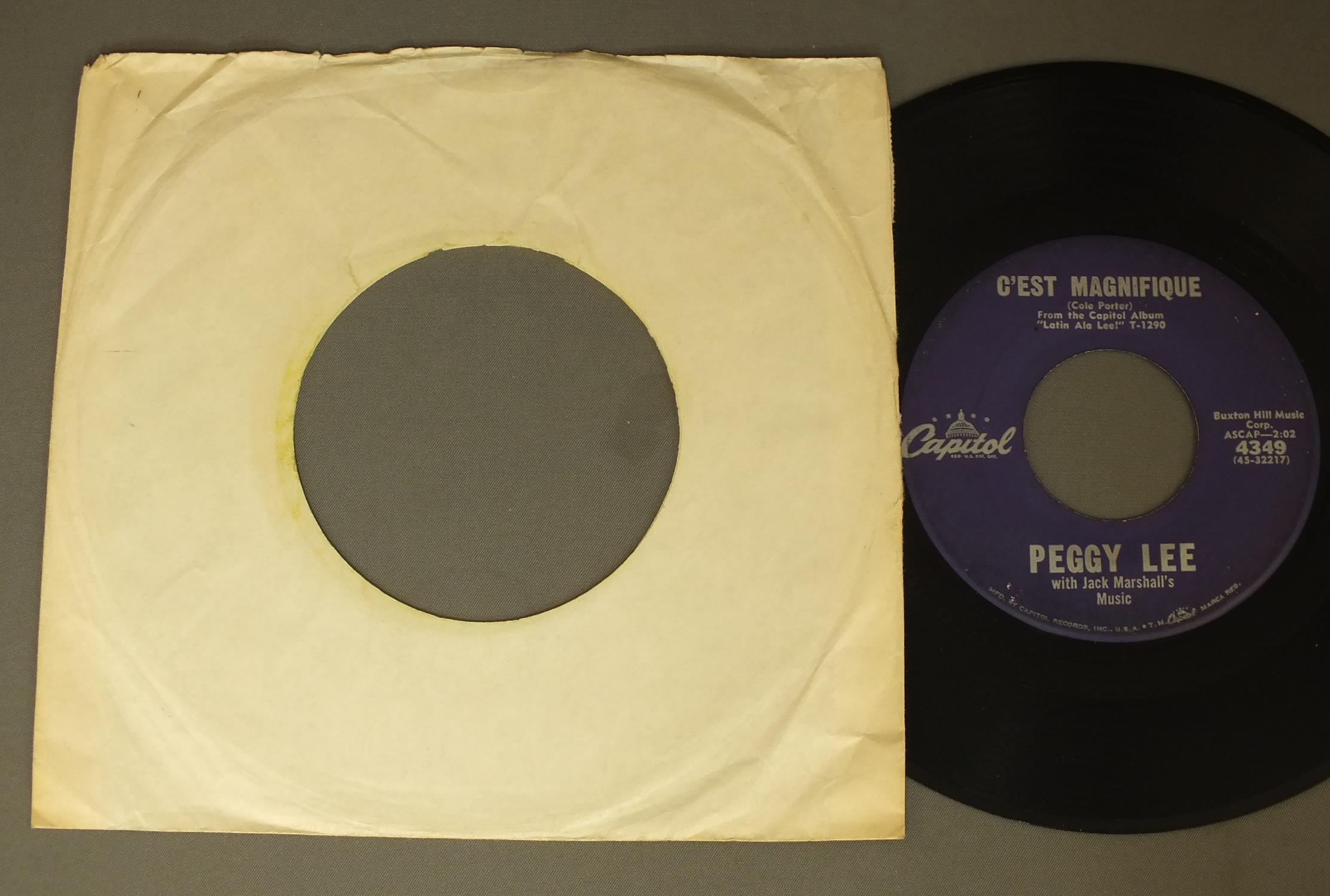 PEGGY LEE/C`EST MAGNIFIQUE 4349 製造国:米国盤 / Media:7inch盤の状態:EX- 価格(税込):¥550(売約済) 送料 7inch:定形外郵便 360円~LP:定形外郵便 660円~送料は、注文の最終画面で確認頂けます。 > > PEGGY LEE/C`EST MAGNIFIQUE 盤の状態 (EX-)特記事項:薄いスリキズ・細かい表面スレ軽くある感じ。全体的には殆どが軽微なものの様子です。盤EX-の共通説明:盤面のスリキズが多少有り。音に出そうなものは殆ど無いように見える~さほど気にならないぐらいの軽いプチ数カ所程度。 Tweet それぞれの画像をクリックすると、大きい写真が見られます こちらの商品もお勧めです 770円 ROSEMARY CLOONEY / MIXED EMOTIONS 1,210円 TERESA BREWER & THE WORLD`S GREATEST JAZZ BAND / GOOD NEWS (RALPH SUTTON AUTOGRAPHED)GOOD NEWS (RALPH SUTTONサイン付) 550円 BING CROSBY / EARLY BING CROSBY PLUS THE BING CROSBY SHOW 990円 CLEO LAINE / BORN ON A FRIDAY 1,870円 FAY DE WITT / THROUGH SICK AND SIN 990円 RICHARD PERRY / SWING 1,980円 JONI JAMES / ITALIANISSIME 550円 JEANETTE MacDONALD & NELSON EDDY / SAME TITLE