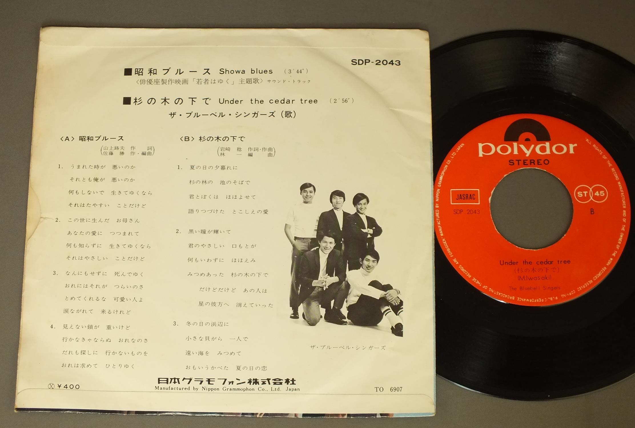 BLUE BELL SINGERSブルーベル・シンガーズ/SHOWA BLUES昭和ブルース SDP2043 製造国:日本盤 / Media:7inch外観:EX-盤の状態:EX- 価格(税込):¥330 送料 7inch:定形外郵便 360円~LP:定形外郵便 660円~送料は、注文の最終画面で確認頂けます。 > > BLUE BELL SINGERS/SHOWA BLUES 外観 (EX-)特記事項:背スレ多少有り。極薄いシミや軽いヨレやや有る感じ。裏側は、取り出し口に小さな破れ。内側は日焼け感軽く有り。外観EX-の共通説明:ダメージ軽度~多少。 中古品としては普通の状態。シミ、ヨゴレ、スレなど軽く~多少。 盤の状態 (EX-)特記事項:薄いスリキズ・細かい表面スレ多少ある感じ。殆どが軽微なものの様子です。盤EX-の共通説明:盤面のスリキズが多少有り。音に出そうなものは殆ど無いように見える~さほど気にならないぐらいの軽いプチ数カ所程度。 Tweet それぞれの画像をクリックすると、大きい写真が見られます こちらの商品もお勧めです 1,320円 SHIGERU IZUMIYA泉谷しげる / 3rd ALBUM第三集 地球はお祭りさわぎ 770円 TAKASHI NISHIOKA西岡たかし / 1969-19781969-1978 西岡たかし 五つの赤い風船 2 1,980円 HAKO YAMAZAKI山崎ハコ / NINGEN MAGAI人間まがい 2,200円 ITSUTSUNO AKAI FUSEN五つの赤い風船 / FOLK ALBUM VOL2フォーク・アルバム 第2集 660円 KEMEケメ / TOKI GA SHIMESUMONO時が示すもの KEME VOL4 1,980円 FURIDO古井戸 / POESYぽえじー(3rd ALBUM) 1,320円 TAKASHI NISHIOKA西岡たかし / SOUPスープ 880円 IRUKAイルカ / SHURIKUSUイルカのうた-イルカ・シュリークス時代