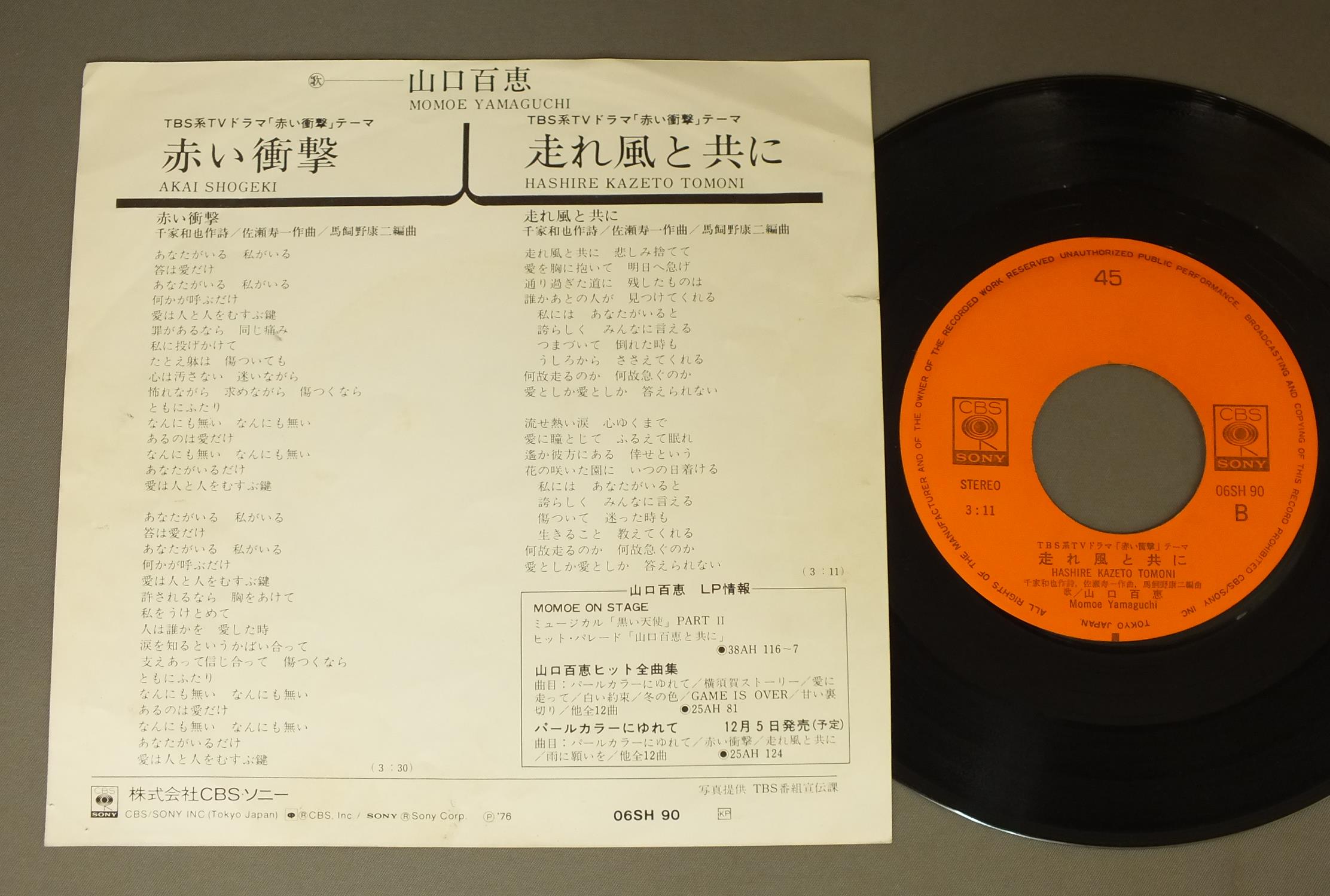MOMOE YAMAGUCHI山口百恵/AKAI SHOGEKI赤い衝撃 06SH90 製造国:日本盤 / Media:7inch外観:EX盤の状態:EX 価格(税込):¥330 送料 7inch:定形外郵便 360円~LP:定形外郵便 660円~送料は、注文の最終画面で確認頂けます。 > > MOMOE YAMAGUCHI/AKAI SHOGEKI 外観 (EX)特記事項:右下にホチキス跡。軽いヨレ有ります。左端に小さな破れ有り。外観EXの共通説明:ダメージが限定的。中古品としては保存状態がよい方。シミ、ヨゴレ、スレ 少し~軽度。 盤の状態 (EX)特記事項:薄いスリキズ・スレ軽くある感じ。軽微なものの様子です。盤EXの共通説明:盤面のスリキズが薄いものが少し~軽度 音に出そうなものは無いように見える(軽微なソフトティック音は除く)。 Tweet それぞれの画像をクリックすると、大きい写真が見られます こちらの商品もお勧めです 1,320円 YOU HAYAMI早見優 / COLORFUL BOX 440円 ERI E-AREA新田恵利 / ERI E-AREA 1,320円 MIKI ASAKURA麻倉未稀 / LOVE AGAIN 770円 SEIKO MATSUDA松田聖子 / CANDYキャンディー 770円 TOMOYO HARADA原田知世 / NADESHIKO JUNJO撫子純情(なでしこじゅんじょう)-拾七歳バースデイ・アルバム 1,210円 AKINA NAKAMORI中森明菜 / SILENT LOVE 550円 SONOKO KAWAI河合その子 / SONOKOその子 1,210円 SAYURI KOKUSHO国生さゆり / TRANSIT