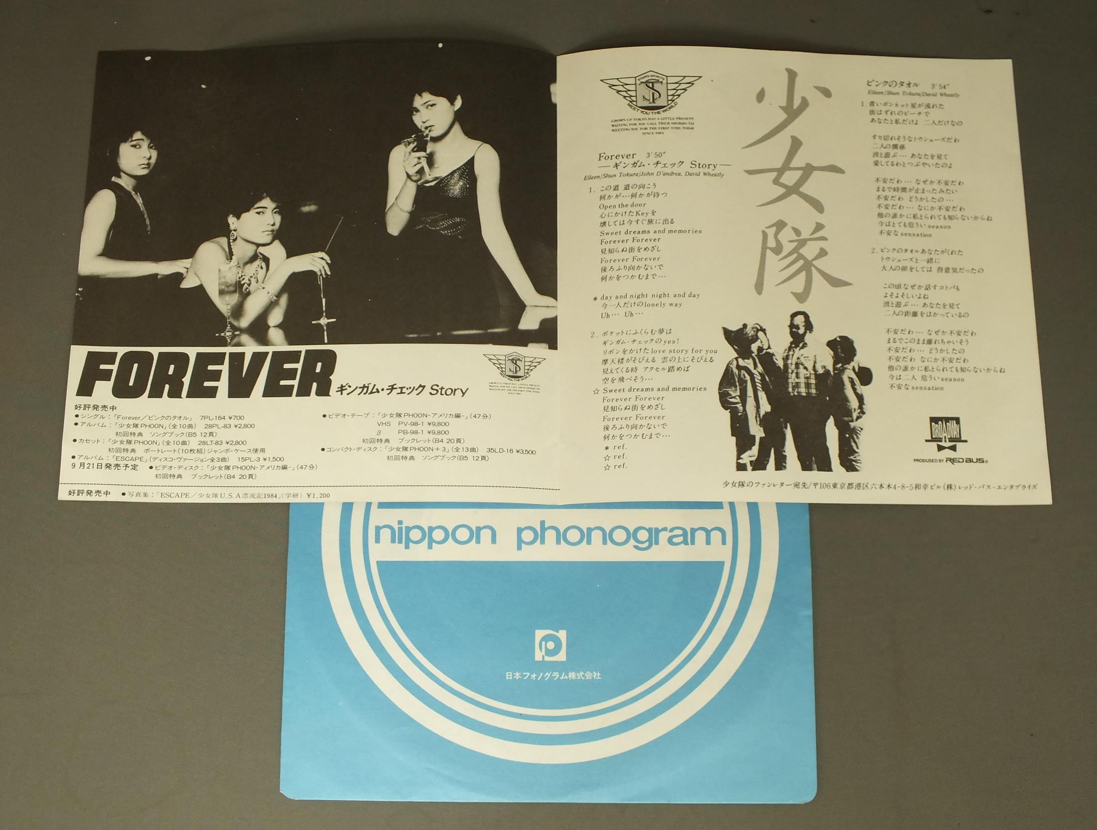 SHOUJYO TAI少女隊/FOREVERギンガム・チェックSTORY 7PL164 製造国:日本盤 / Media:7inch外観:EX+盤の状態:EX+ 価格(税込):¥330(売約済) 送料 7inch:定形外郵便 360円~LP:定形外郵便 660円~送料は、注文の最終画面で確認頂けます。 > > SHOUJYO TAI/FOREVER 外観 (EX+)特記事項:ヨレ少し有りますが、きれいな感じです。外観EX+の共通説明:中古としては美品、一見してきれいでダメージが軽微。シミ、ヨゴレ、スレ有っても僅か~少し。 盤の状態 (EX+)特記事項:極薄いスリキズ・スレ少し。一見してきれいな状態です。盤EX+の共通説明:盤面の極薄いスリキズ、スレ少し程度 音に出そうなものは無いように見える(極軽微なソフトティック音は除く)。 Tweet それぞれの画像をクリックすると、大きい写真が見られます こちらの商品もお勧めです 1,320円 PINK LADYピンク・レディー / PINK LADY-SUMMER FIRE `77ピンク・レディー-サマー・ファイア `77 990円 PINK LADYピンク・レディー / CHALLENGE CONCERTチャレンジ・コンサート 990円 PINK LADYピンク・レディー / BYE BYE CARNIVALバイ・バイ・カーニバル 880円 SONOKO KAWAI河合その子 / SONOKOその子 770円 MIKI ASAKURA麻倉末稀 / LOVE AGAIN 1,210円 TSUKASA ITOH伊藤つかさ / SAYONARA KONNICHIWAさよなら、こんにちは 550円 ERI NITTA新田恵利 / E-AREA 770円 NAOKO KAWAI河合奈保子 / NAOKO IN CONCERT河合奈保子 カナリー・コンサート PART 2