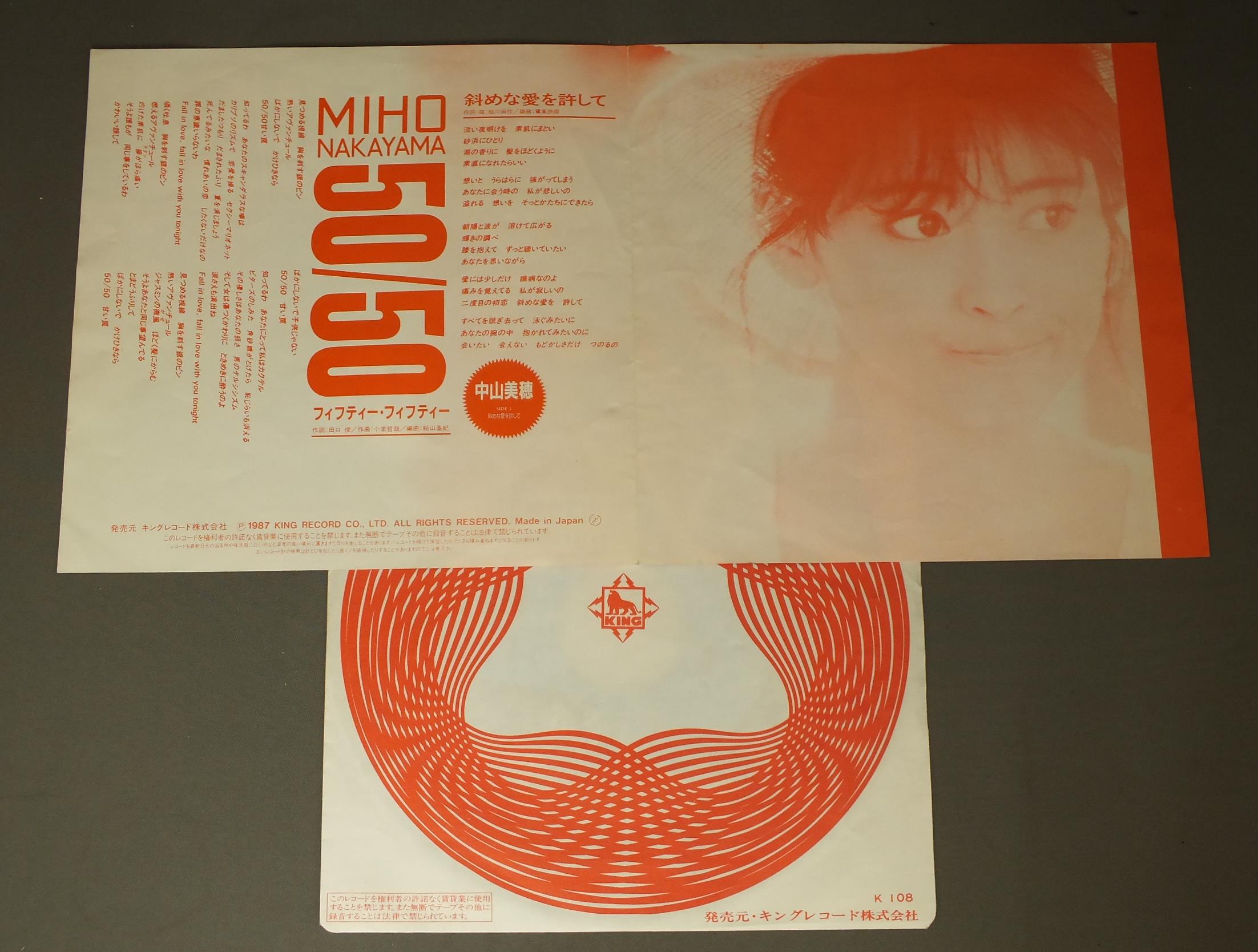 MIHO NAKAYAMA中山美穂/50-50フィフティー・フィフティー K07S10201 製造国:日本盤 / Media:7inch外観:EX盤の状態:EX 価格(税込):¥330 送料 7inch:定形外郵便 360円~LP:定形外郵便 660円~送料は、注文の最終画面で確認頂けます。 > > MIHO NAKAYAMA/50-50 外観 (EX)特記事項:背スレやヨレ多少有り。外観EXの共通説明:ダメージが限定的。中古品としては保存状態がよい方。シミ、ヨゴレ、スレ 少し~軽度。 盤の状態 (EX)特記事項:薄いスリキズ・スレ軽くある感じ。殆どが軽微なものの様子です。盤EXの共通説明:盤面のスリキズが薄いものが少し~軽度 音に出そうなものは無いように見える(軽微なソフトティック音は除く)。 Tweet それぞれの画像をクリックすると、大きい写真が見られます こちらの商品もお勧めです 880円 MOMOE YAMAGUCHI山口百恵 / BEST HITS山口百恵ヒット全曲集 770円 MIKI ASAKURA麻倉未希 / DANCIN` M. 770円 ERI NITTA新田恵利 / E-AREA 1,320円 MIKI ASAKURA麻倉未稀 / SEXY ELEGANCEセクシー・エレガント 770円 SEIKO MATSUDA松田聖子 / CANDYキャンディー 1,210円 SONOKO KAWAI河合その子 / SIESTAシエスタ 1,210円 YUKO TOMITAとみたゆう子 / CLASSICAL HEARTクラシカル・ハート 770円 SEIKO MATSUDA松田聖子 / SEIKO TOWN