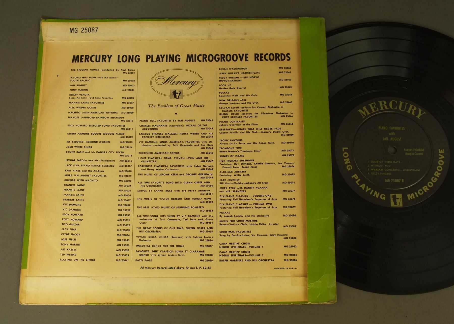 JAN AUGUST/PIANO FAVORITES MG25087 製造国:米国盤 / Media:10inch外観:VG+盤の状態:EX- 価格(税込):¥880(売約済) 送料 7inch:定形外郵便 360円~LP:定形外郵便 660円~送料は、注文の最終画面で確認頂けます。 > > JAN AUGUST/PIANO FAVORITES 外観 (VG+)特記事項:ヘリにスレ有。背にテープ。ジャケ表面にシミ、よごれ有、スレ有、ヨレ有。外観VG+の共通説明:ダメージやや有り。シミ、ヨゴレ、スレなど多少~やや多め。 盤の状態 (EX-)特記事項:薄いスリキズ・細かい表面スレ多少ある感じです。プチ出そうな所は少し。軽微なものが中心の様子です。盤EX-の共通説明:盤面のスリキズが多少有り。音に出そうなものは殆ど無いように見える~さほど気にならないぐらいの軽いプチ数カ所程度。 Tweet それぞれの画像をクリックすると、大きい写真が見られます こちらの商品もお勧めです 1,210円 ALBERT NICHOLAS WITH ART HODES` ALL STAR STOMPERSMARTY GROSZ AUTOGRAPHED / ALBERT NICHOLAS WITH ART HODES` ALL STAR STOMPERSMARTY GROSZサイン付 1,210円 PETER SPRAGUE / MUSICA DEL MAR 1,980円 ART HEATLIE / SOUL HITS-SAX STYLE 990円 ART HODES / HOME COOKIN` 550円 JOE SULLIVAN / PIANO MAN 1935-1940 770円 GEORGE H BUCK JR-AI ROSE etc / NEW ORLEANS DAILY JAZZ 1,100円 COLEMAN HAWKINS WITH THE RAMBLERS / HANK IN HOLLAND 1,100円 BAY CITY SEVEN JAZZ BAND / GRAND & GLORIOUS FEELING