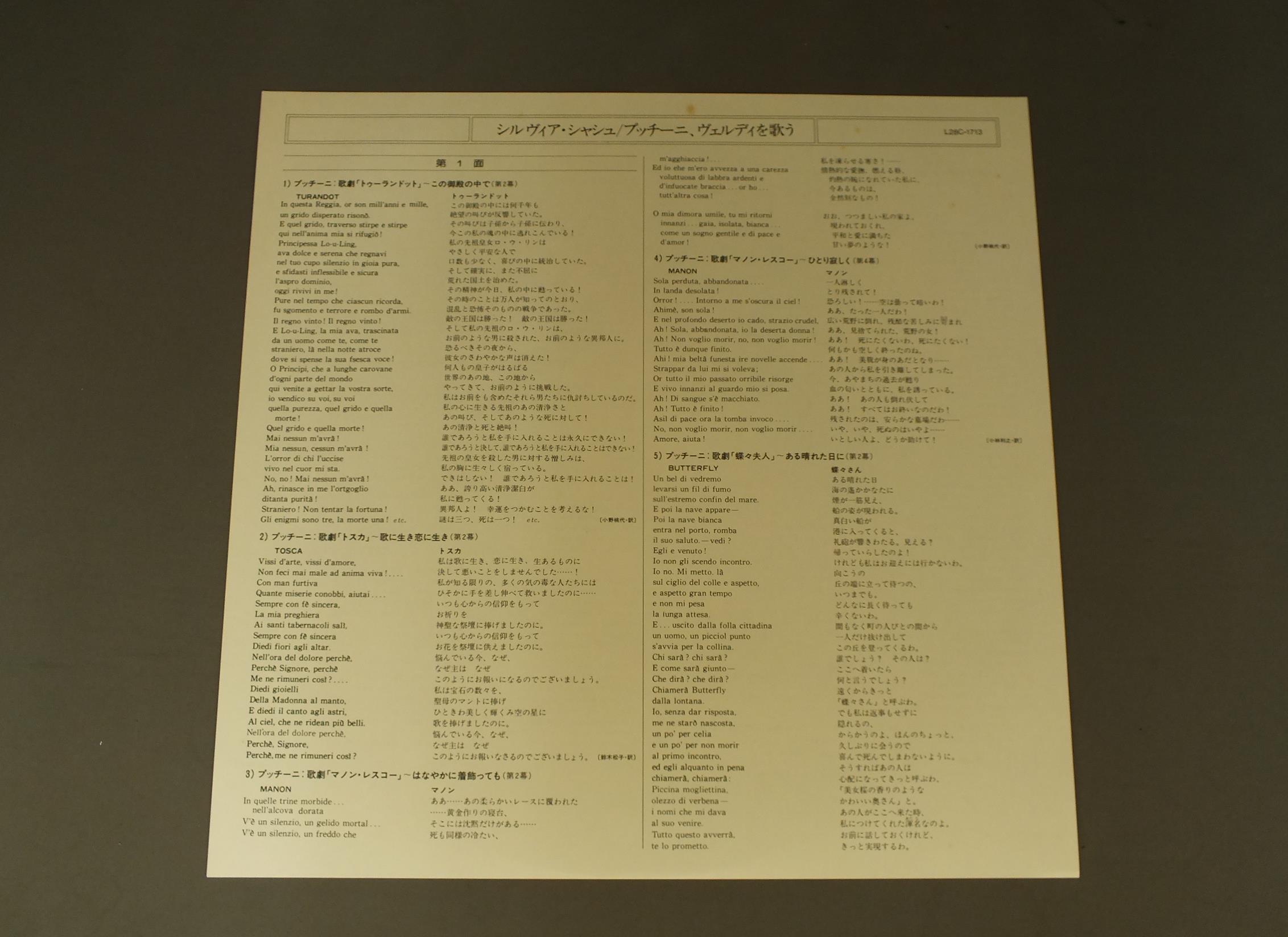 SYLVIA SASSシルヴィア・シャシュ/SINGS PUCCINI & VERDIプッチーニ.ヴェルディを歌う L28C1713 製造国:日本盤 / Media:LP外観:EX-盤の状態:EX+ 価格(税込):¥2,200(売約済) 送料 7inch:定形外郵便 360円~LP:定形外郵便 660円~送料は、注文の最終画面で確認頂けます。 > > SYLVIA SASS/SINGS PUCCINI & VERDI 外観 (EX-)特記事項:裏ジャケにシミ有。外観EX-の共通説明:ダメージ軽度~多少。 中古品としては普通の状態。シミ、ヨゴレ、スレなど軽く~多少。 盤の状態 (EX+)特記事項:極薄いスリキズ・スレ少し。一見してきれいな状態です。盤EX+の共通説明:盤面の極薄いスリキズ、スレ少し程度 音に出そうなものは無いように見える(極軽微なソフトティック音は除く)。 帯の状態 ():特記なし。 その他:白見本盤 Tweet それぞれの画像をクリックすると、大きい写真が見られます こちらの商品もお勧めです 990円 RUDOLF LAMY - SINGGEMEINSCHAFT RUDOLF LAMYルドルフ・ラーミイ - ルドルフ・ラーミイ聖歌隊 / LASSUS - NEUE TEUSCHE LIDER etcオルランドゥス・ラッスス - ドイツ歌曲他 990円 NOBUAKI - TANAKA - TOKYO MIXED CHORUS田中信明 - 東京混声合唱団 / MAKOTO SATOH - SUITE FOR MIXED CHOURS ZAOH佐藤真 - 混声合唱のための組曲 蔵王 990円 VARIOUS ARTISTS / GRAND OPERA GALA OF GREAT OPERATIC ENSEMBLES魅惑のオペラ重唱曲集 990円 SCHWARZKOPFエリザベート・シュワルツコップ / MOZART OPERATIC ARIASモーツァルト・アリア集 990円 DETELデーテル / 10WEIHNACHTSLIEDER10のクリスマス音楽 880円 HANS HOTTERハンス・ホッター / SCHUBERT`SCHWANENGESANG`-SONG CYCLEシューベルトー`白鳥の歌`全曲 990円 HAEFLIGER-WERBAヘフリガー-ヴェルバ / SCHUBERT SCHWANENGESANGシューベルト 歌曲集`白鳥の歌` 1,210円 SEIJI OZAWA-BOSTON SYMPHONYフレデリカ・フォン・シュターデ-小沢征爾-ボストン交響楽団 / FREDERICA VON STADE SINGS RAVELラヴェル歌曲集