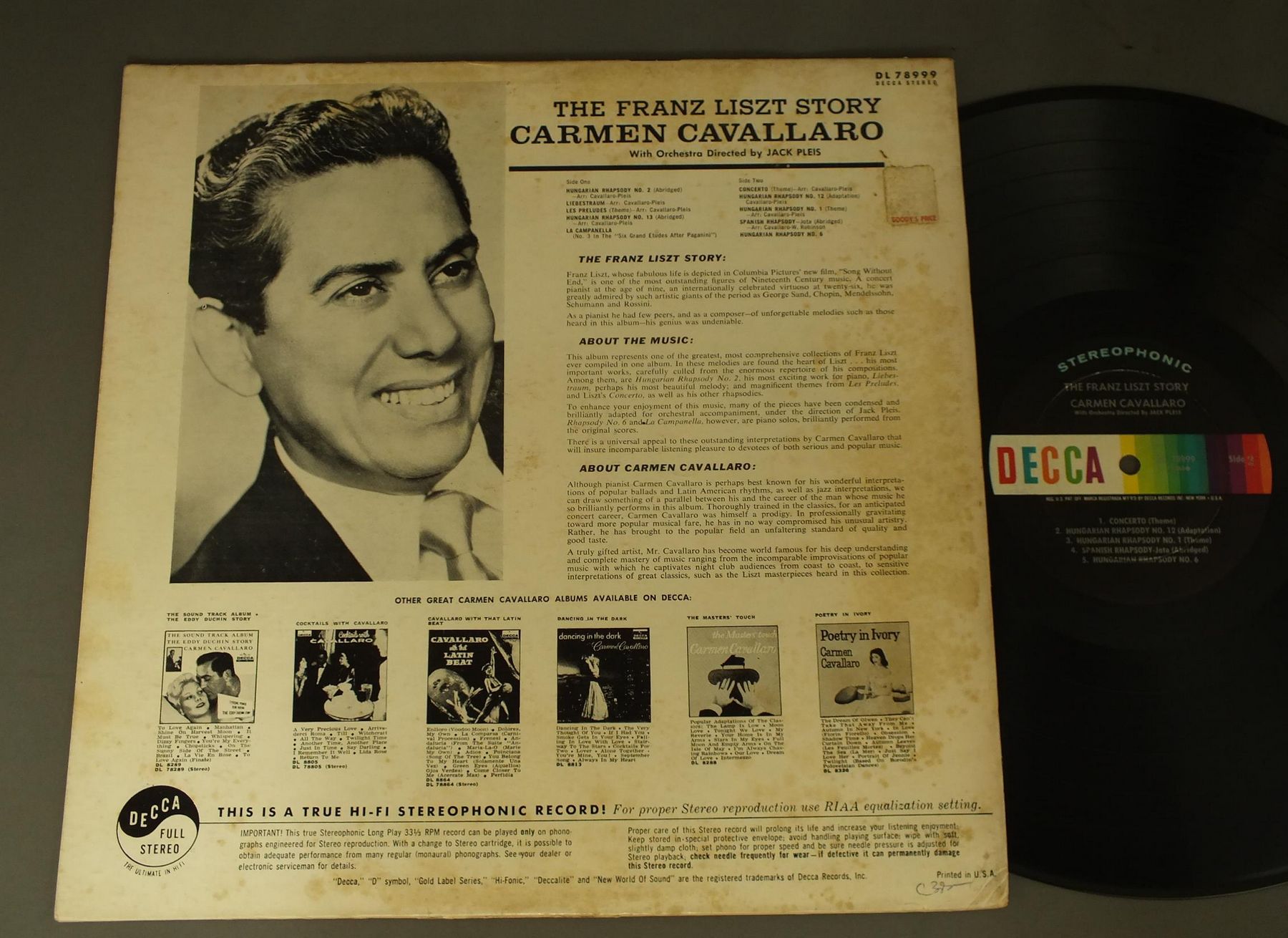 CARMEN CAVALLARO/FRANZ LISZT STORY DL78999 製造国:米国盤 / Media:LP外観:VG+盤の状態:EX 価格(税込):¥880(売約済) 送料 7inch:定形外郵便 360円~LP:定形外郵便 660円~送料は、注文の最終画面で確認頂けます。 > > CARMEN CAVALLARO/FRANZ LISZT STORY 外観 (VG+)特記事項:ヘリにスレ有。ジャケ表面にシミ、よごれ有。外観VG+の共通説明:ダメージやや有り。シミ、ヨゴレ、スレなど多少~やや多め。 盤の状態 (EX)特記事項:薄いスリキズ・スレ軽くある感じ。殆どが軽微なものの様子です。盤EXの共通説明:盤面のスリキズが薄いものが少し~軽度 音に出そうなものは無いように見える(軽微なソフトティック音は除く)。 Tweet それぞれの画像をクリックすると、大きい写真が見られます こちらの商品もお勧めです 990円 SUSAN MAZER - STEVEN HALPERN - DALLAS SMITH / LIFETIDE 770円 ALFRED NEWMAN / LOVE SCENES 770円 CLAUDE BLOUIN / BALLROOM DANCIHG