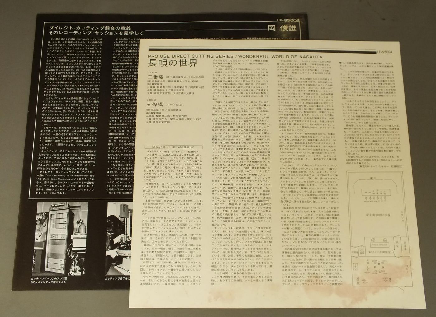 PRO USE SERIES/WONDERFUL WORLD OF NAGAUTA長唄の世界 三番叟 五條橋 LF95004 製造国:日本盤 / Media:LP外観:EX盤の状態:EX-帯:EX- 価格(税込):¥1,650(売約済) 送料 7inch:定形外郵便 360円~LP:定形外郵便 660円~送料は、注文の最終画面で確認頂けます。 > > PRO USE SERIES/WONDERFUL WORLD OF NAGAUTA 外観 (EX)特記事項:ヘリスレ有。外観EXの共通説明:ダメージが限定的。中古品としては保存状態がよい方。シミ、ヨゴレ、スレ 少し~軽度。 盤の状態 (EX-)特記事項:薄いスリキズ・細かい表面スレ軽くある感じ。全体的には殆どが軽微なものの様子です。盤EX-の共通説明:盤面のスリキズが多少有り。音に出そうなものは殆ど無いように見える~さほど気にならないぐらいの軽いプチ数カ所程度。 帯の状態 (EX-):シミ有。 その他:白見本盤 Tweet それぞれの画像をクリックすると、大きい写真が見られます こちらの商品もお勧めです 1,210円 MICHIO MIYAGI宮城道雄 / MASTERPIECES OF KOTO 60s ISSUE宮城道雄名曲選集ペラジャケ 440円 TOHO KAGESAWA影澤藤峰 / JAPANESE TRADITIONAL FOLK SONG (HOKKAIDO & TOHOKU)民謡おさらい集(東北・北海道編) 660円 YASUKO NAKAJIMA中島靖子 / 中島靖子の音楽 990円 BAMBOO FLUTE村岡実-豊藤-豊文-豊輔 他 / SINGS VOL2デラックス 尺八はうたう 第2集 1,210円 KIFU MITSUHASHI三橋貴風 / TAMAFURI魂ふり 2,200円 SHINICHI YUIZE唯是震一 / MUSIC OF SHINICHI YUIZE VOL6唯是震一の音楽第6集 770円 YUKO MIKASA三笠優子 / ENKA GEKIJO歌謡浪曲・艶歌劇場 440円 SHINTAROU SUGIYAMA杉山真太郎 / INTRODUCING JAPANESE MUSIC日本音楽の手引き