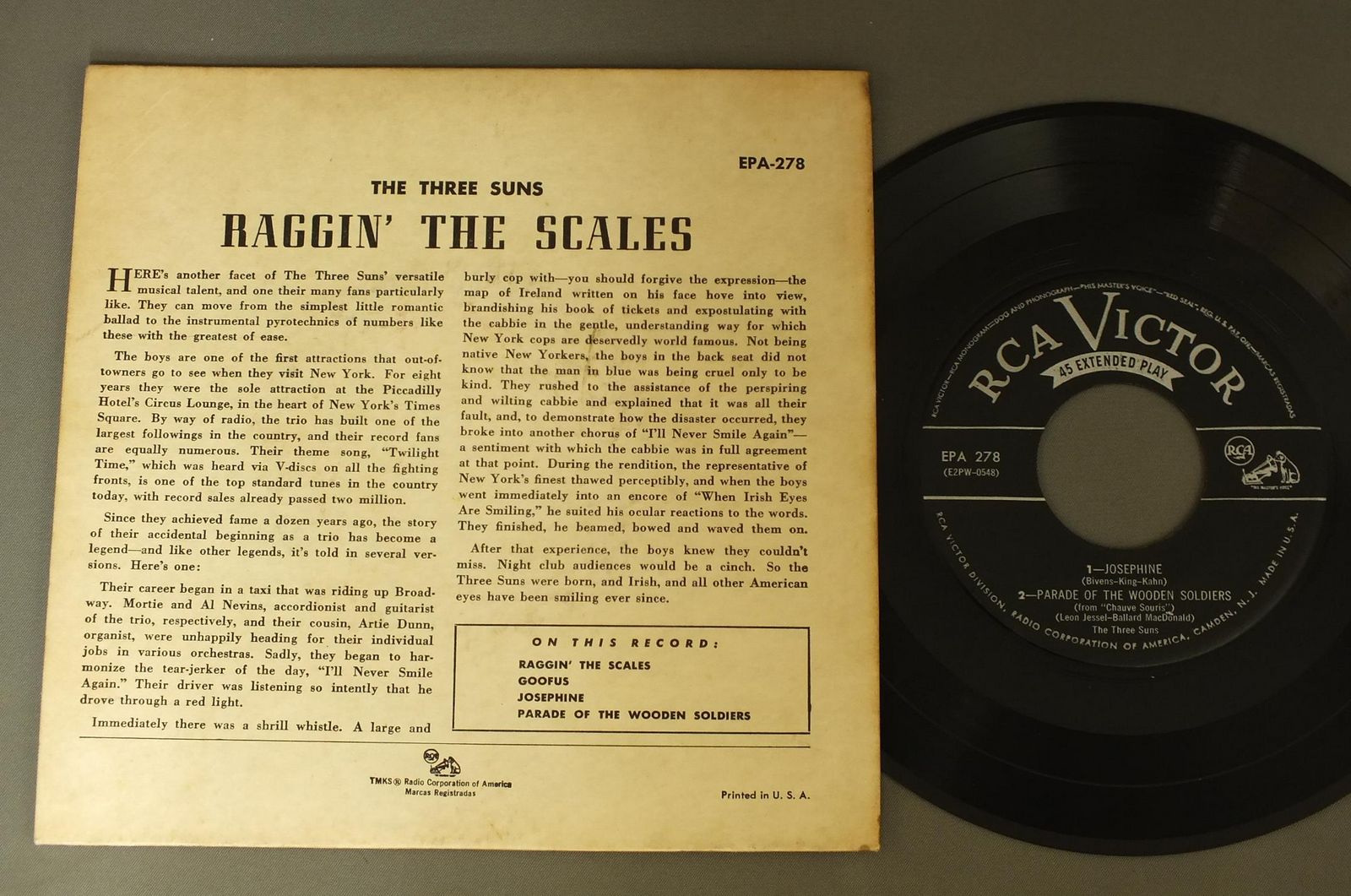THREE SUNS/RAGGIN` THE SCALES EP EPA278 製造国:米国盤 / Media:7inch外観:EX盤の状態:EX+ 価格(税込):¥880(売約済) 送料 7inch:定形外郵便 360円~LP:定形外郵便 660円~送料は、注文の最終画面で確認頂けます。 > > THREE SUNS/RAGGIN` THE SCALES EP 外観 (EX)特記事項:背は、上下にシミが少し有り。外観EXの共通説明:ダメージが限定的。中古品としては保存状態がよい方。シミ、ヨゴレ、スレ 少し~軽度。 盤の状態 (EX+)特記事項:薄いスリキズ・スレ少し。一見してきれいな状態です。盤EX+の共通説明:盤面の極薄いスリキズ、スレ少し程度 音に出そうなものは無いように見える(極軽微なソフトティック音は除く)。 Tweet それぞれの画像をクリックすると、大きい写真が見られます こちらの商品もお勧めです 1,210円 RALPH SUTTON / COSENZA JAZZ WORKSHOP AUTOGRAPHEDCOSENZA JAZZ WORKSHOP サイン付 1,320円 CHARLIE VENTURA & HIS BAND / CHARLIE VENTURA IN CONCERT 990円 SPIKE JONES / KING OF CORN 770円 SHARKEY BONANO & HIS SHARKS OF RHYTHM / 1936-1937 1,320円 YANK LAWSON / BIG YANK IS HERE ! 1,210円 FRANKIE CAPP & NAT PIERCE / FEATURING JOE WILLIAMS AUTOGRAPHEDサイン付 440円 WILD BILL DAVISON / GOOD CLEAN FUN 770円 MICHEL LEGRANDミッシェル・ルグラン / I LOVE PARIS