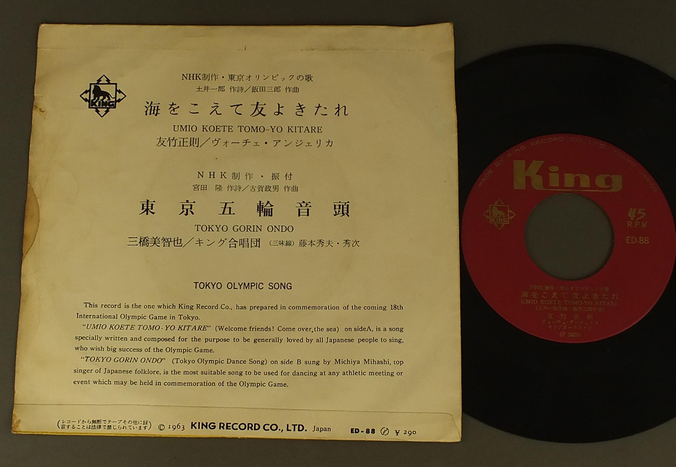 NORIO TOMOTAKE友竹正則/UMIO KOETE TOMO YO KITARE TOKYO東京オリンピックの歌 海をこえて友よきたれ ED88 製造国:日本盤 / Media:7inch外観:EX-盤の状態:EX- 価格(税込):¥440 送料 7inch:定形外郵便 360円~LP:定形外郵便 660円~送料は、注文の最終画面で確認頂けます。 > > NORIO TOMOTAKE/UMIO KOETE TOMO YO KITARE TOKYO 外観 (EX-)特記事項:表裏共に、取り出し口に小さな破れ有り。内側は、日焼け感やや有ります。外観EX-の共通説明:ダメージ軽度~多少。 中古品としては普通の状態。シミ、ヨゴレ、スレなど軽く~多少。 盤の状態 (EX-)特記事項:薄いスリキズ・細かい表面スレ軽くある感じ。全体的には殆どが軽微なものの様子です。盤EX-の共通説明:盤面のスリキズが多少有り。音に出そうなものは殆ど無いように見える~さほど気にならないぐらいの軽いプチ数カ所程度。 Tweet それぞれの画像をクリックすると、大きい写真が見られます こちらの商品もお勧めです 990円 甲子園 / 全国中等学校・高等学校野球大会史 1,320円 PRO-WRESTLINGプロレスリング / STAR PRO-WRESTER THEME SONGS各スーパースターテーマ曲集 770円 JAPANESE PRO-WRESTLINGプロレス / SUPER FIGHTER`S THEMESスーパー・ファイターのテーマ 770円 SUMO SOUNDS呼出し三郎 他 / SUMO-JINKU相撲甚句 1,320円 PRO-WRESTLINGプロレスリング / PRO-WRESTLING 2プロレスリング 2