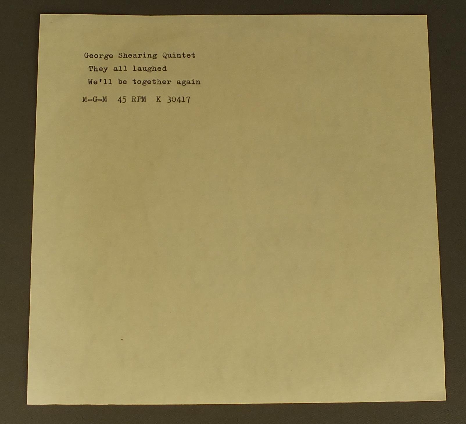 GEORGE SHEARING QUINTET/THEY ALL LAUGHED K30417 製造国:米国盤 / Media:7inch盤の状態:EX- 価格(税込):¥440(売約済) 送料 7inch:定形外郵便 360円~LP:定形外郵便 660円~送料は、注文の最終画面で確認頂けます。 > > GEORGE SHEARING QUINTET/THEY ALL LAUGHED 盤の状態 (EX-)特記事項:薄いスリキズ・細かい表面スレ多少ある感じです。プチ出そうな所は少し。軽微なものが中心の様子です。盤EX-の共通説明:盤面のスリキズが多少有り。音に出そうなものは殆ど無いように見える~さほど気にならないぐらいの軽いプチ数カ所程度。 Tweet それぞれの画像をクリックすると、大きい写真が見られます こちらの商品もお勧めです 770円 OSCAR PETERSON / GOLDEN ACHIVE SERIES 770円 BUDDY GRECO / BUDDY GRECO FOR ONCE IN MY LIFE 1,320円 RALPH SUTTON / BIX BEIDERBECKE SUITE AUTOGRAPHEDBIX BEIDERBECKE SUITE サイン付 440円 RED MCKENZIE-EDDIE CONDON / CHICAGOANS 2,640円 ERIC DOLPHY / GREAT CONCERT OF ERIC DOLPHY 1,650円 DAVID LIEBMAN AND RICHARD BEIRACH / FOGOTTEN FANTASIES 1,210円 BOBBY HACKETT / BUTTERFLY AIRS VOLUME 1 SIR CHARLES AUTOGRAPHEDSIR CHARLESサイン付 1,100円 EDDIE HEYWOOD / CANADIAN SUNSET BOSSA NOVA