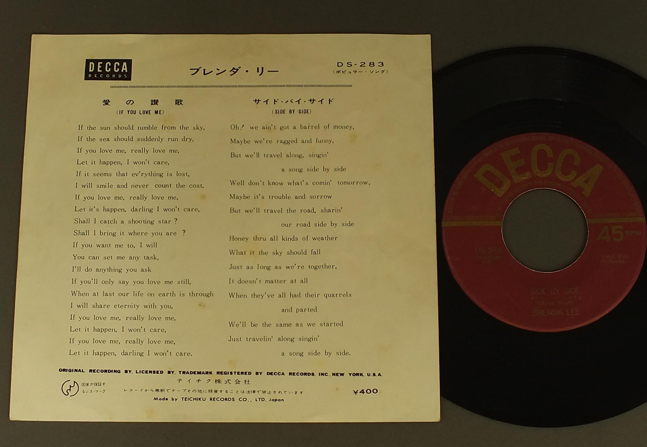 BRENDA LEEブレンダ・リー/IF YOU LOVE ME愛の讃歌 DS283 製造国:日本盤 / Media:7inch外観:EX盤の状態:EX- 価格(税込):¥330(売約済) 送料 7inch:定形外郵便 360円~LP:定形外郵便 660円~送料は、注文の最終画面で確認頂けます。 > > BRENDA LEE/IF YOU LOVE ME 外観 (EX)特記事項:ヨレや折れ跡軽く有り。外観EXの共通説明:ダメージが限定的。中古品としては保存状態がよい方。シミ、ヨゴレ、スレ 少し~軽度。 盤の状態 (EX-)特記事項:薄いスリキズ・細かい表面スレ多少ある感じ。殆どが軽微なものの様子です。盤EX-の共通説明:盤面のスリキズが多少有り。音に出そうなものは殆ど無いように見える~さほど気にならないぐらいの軽いプチ数カ所程度。 Tweet それぞれの画像をクリックすると、大きい写真が見られます こちらの商品もお勧めです 770円 MAHALIA JACKSONマヘリア・ジャクソン / MAHALIA JACKSON IN CONCERTマヘリア・ジャクソン・イン・コンサート 1,210円 YASUKO阿川泰子 / JOURNEY-YASUKO LOVE-BIRDジャーニー-ヤスコ・ラブ・バード 1,650円 NAMI HIDAKA日高なみ / NAMI HIDAKA AUTOGRAPHED日高なみ サイン付 660円 PAUL ROBESONポール・ロブスン / PAUL ROBESON AT CARNEGIE HALLカーネギー・ホールのポール・ロブスン 1,320円 DELLA REESEデラ・リーズ / DELLA REESE LIVEデラ・リーズ・ライヴ 1,320円 BUDDY GRECOバディ・グレコ / AT MISTER KELLY`Sアット・ミスター・ケリーズ 1,320円 YUKARI KANEKO金子由香利 / MEGURIAIめぐり逢い 1,320円 SWINGLE SINGERSスイングル・シンガール / JAZZ SEBASTIEN BACHジャズ・セバスチャン・バッハ