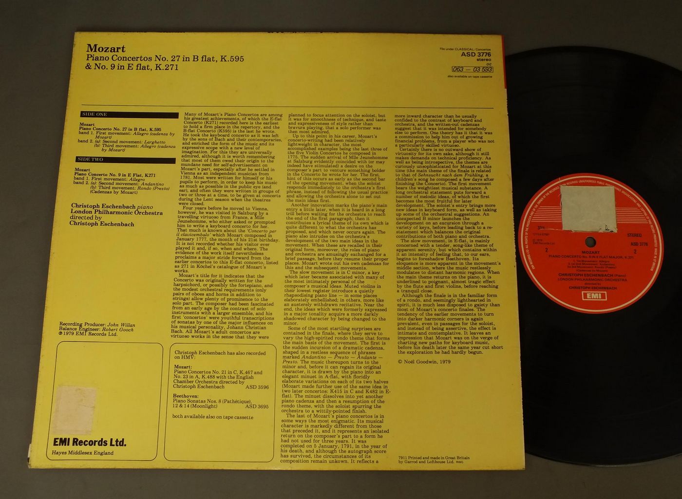 ECSHENBACHエッシェンバッハ/MOZART PIANO CONC. 27 ASD3776 製造国:英国盤 / Media:LP外観:EX盤の状態:EX 価格(税込):¥1,320(売約済) 送料 7inch:定形外郵便 360円~LP:定形外郵便 660円~送料は、注文の最終画面で確認頂けます。 > > ECSHENBACH/MOZART PIANO CONC. 27 外観 (EX)特記事項:特記なし。外観EXの共通説明:ダメージが限定的。中古品としては保存状態がよい方。シミ、ヨゴレ、スレ 少し~軽度。 盤の状態 (EX)特記事項:薄いスリキズ・スレ軽くある感じ。殆どが軽微なものの様子です。盤EXの共通説明:盤面のスリキズが薄いものが少し~軽度 音に出そうなものは無いように見える(軽微なソフトティック音は除く)。 その他:ジャケとレーベルのEMIロゴ切り取り有り。これは輸入の際の日本ビクターの指示によるもの。 Tweet それぞれの画像をクリックすると、大きい写真が見られます こちらの商品もお勧めです 1,320円 JOHN GEORGIADIS / STRAUSS FAMILY VIENNA DANCES 990円 BOHM / MOZART-SYM.N KV550- KV551 990円 FRITZ REINER / GREAT MUSIC OF SPAIN 1,430円 BOULT / VAUGHAN WILLIAMS-JOB 1,540円 ISSERSTEDT - SZERYNG - LONDON SYM. ORCH. / BEETHOVEN - VIOLIN KONZERT 1,650円 MARRINER / MOZART-PIANO CONC 1,650円 BRAIN-KARAYAN / MOZART VIER KONZERTE 1,430円 STEINBERG / BEETHOVEN-SYM. NO5