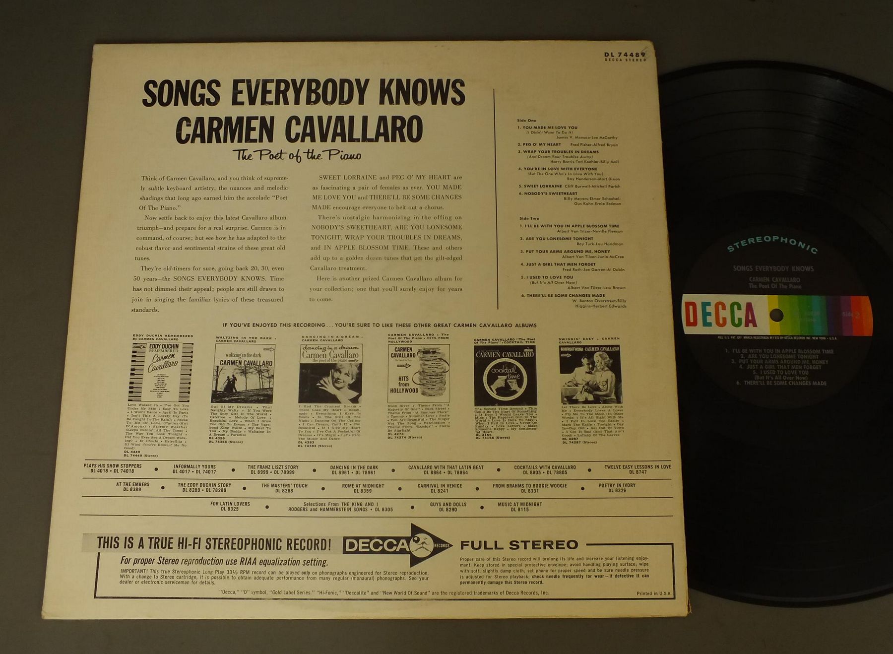 CARMEN CAVALLARO/SONGS EVERYBADY KNOWS DL74489 製造国:米国盤 / Media:LP外観:EX盤の状態:EX+ 価格(税込):¥880(売約済) 送料 7inch:定形外郵便 360円~LP:定形外郵便 660円~送料は、注文の最終画面で確認頂けます。 > > CARMEN CAVALLARO/SONGS EVERYBADY KNOWS 外観 (EX)特記事項:角スレやヘリスレ多少有り。外観EXの共通説明:ダメージが限定的。中古品としては保存状態がよい方。シミ、ヨゴレ、スレ 少し~軽度。 盤の状態 (EX+)特記事項:薄いスリキズ・スレ少し。一見してきれいな状態です。盤EX+の共通説明:盤面の極薄いスリキズ、スレ少し程度 音に出そうなものは無いように見える(極軽微なソフトティック音は除く)。 Tweet それぞれの画像をクリックすると、大きい写真が見られます こちらの商品もお勧めです 990円 SUSAN MAZER - STEVEN HALPERN - DALLAS SMITH / LIFETIDE 770円 ALFRED NEWMAN / LOVE SCENES 770円 CLAUDE BLOUIN / BALLROOM DANCIHG