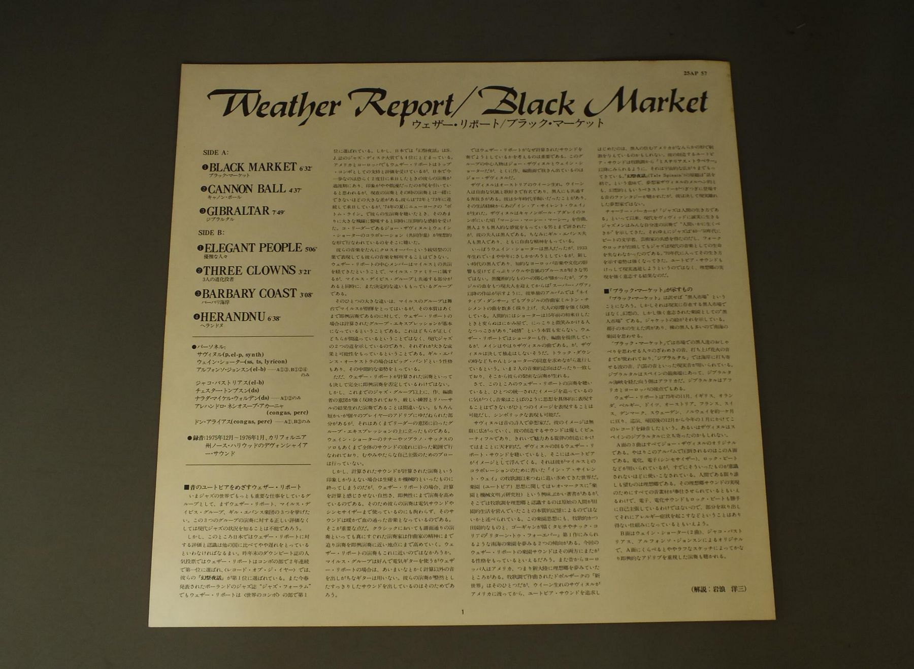 WEATHER REPORTウェザー・レポート/BLACK MARKETブラック・マーケット 25AP57 製造国:日本盤 / Media:LP外観:EX-盤の状態:EX+ 価格(税込):¥1,100(売約済) 送料 7inch:定形外郵便 360円~LP:定形外郵便 660円~送料は、注文の最終画面で確認頂けます。 > > WEATHER REPORT/BLACK MARKET 外観 (EX-)特記事項:ジャケ表面にシミ、よごれ有。外観EX-の共通説明:ダメージ軽度~多少。 中古品としては普通の状態。シミ、ヨゴレ、スレなど軽く~多少。 盤の状態 (EX+)特記事項:極薄いスリキズ・スレ少し。一見してきれいな状態です。盤EX+の共通説明:盤面の極薄いスリキズ、スレ少し程度 音に出そうなものは無いように見える(極軽微なソフトティック音は除く)。 Tweet それぞれの画像をクリックすると、大きい写真が見られます こちらの商品もお勧めです 1,320円 McCOY TYNERマッコイ・タイナー / ECHOES OF A FRIENDエコーズ・オブ・ア・フレンド 1,320円 MODERN JAZZ QUARTETMJQ / BASED ON BACH & THE BLUESバッハとブルースを基に 440円 JONES BOYS / WHOLE TOWN`S TALKING ABOUT 1,320円 PAUL WINTER SEXTETポール・ウィンター・セクステット / JAZZ MEETS THE FOLK SONG 60s ISUUEフォーク・モダン・ジャズ ペラジャケ 1,210円 MAYNARD FURGUSONメイナード・ファーガソン / WORLD OF MAYNARD FURGUSONM・F・ホーン・1 1,210円 BUD POWELL TRIOバド・パウエル・トリオ / ROOST SESSION BEST 6-VOL.1バド・パウエルの芸術 770円 JACQUES LOUSSIER TRIO - ROYAL PHIL. ORCH.ジャック・ルーシェ・トリオ - ロイヤル・フィルハーモニー管弦楽団 / BACH - BRANDENBURG NO5バッハ - ブランデンブルグ協奏曲第5番 1,320円 THE QUINTETパーカー - ガレスピー - パウエル - ローチ - ミンガス / JAZZ AT MASSEY HALLジャズ・アット・マッセイ・ホール