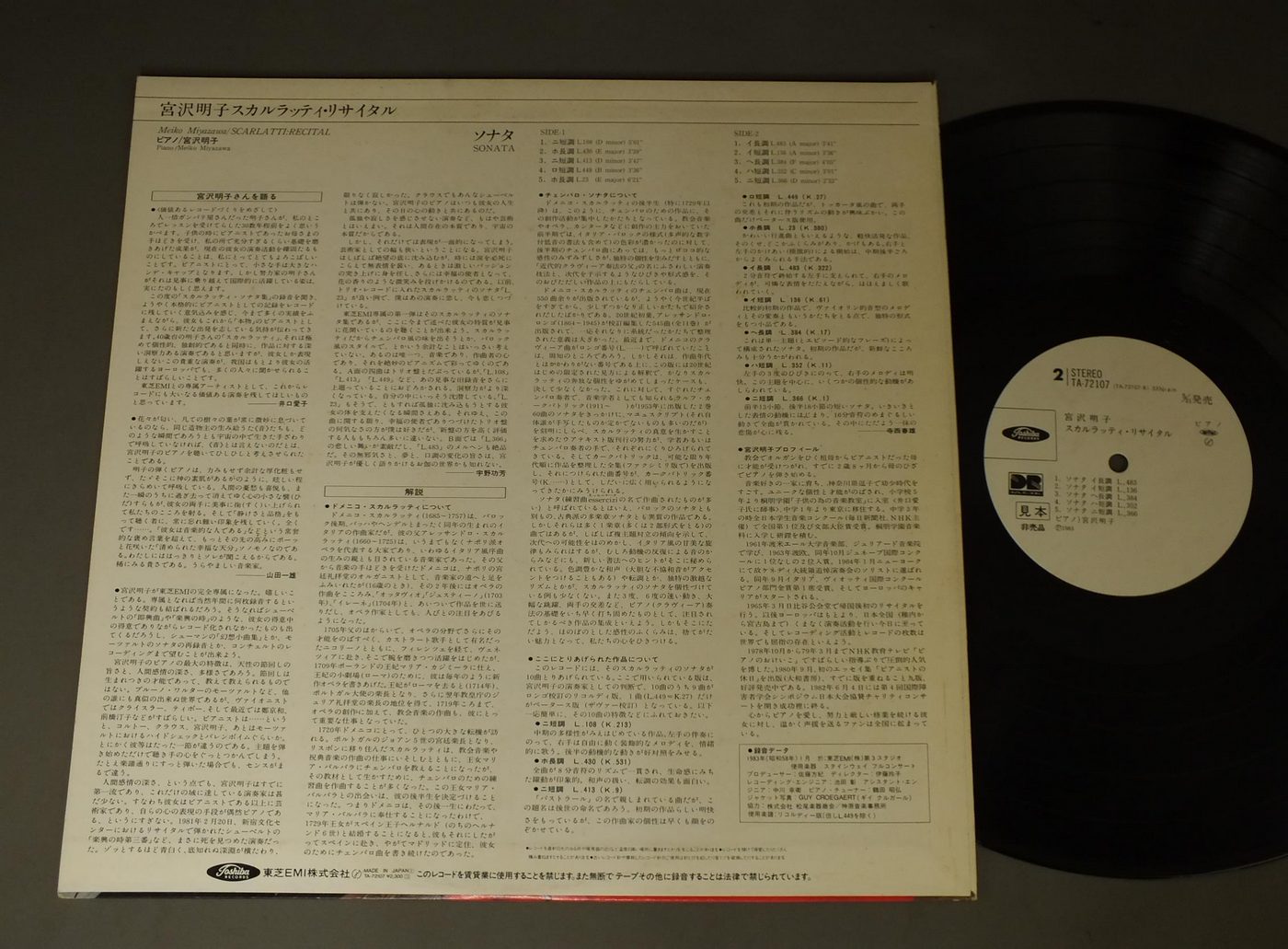 M. MIYAZAWA宮沢明子/SCARLATTI: RECITALスカルラッティ・リサイタル TA72107 製造国:日本盤 / Media:LP外観:EX盤の状態:EX 価格(税込):¥990(売約済) 送料 7inch:定形外郵便 360円~LP:定形外郵便 660円~送料は、注文の最終画面で確認頂けます。 > > M. MIYAZAWA/SCARLATTI: RECITAL 外観 (EX)特記事項:ジャケ表面にシミ、よごれ有、スレ有。外観EXの共通説明:ダメージが限定的。中古品としては保存状態がよい方。シミ、ヨゴレ、スレ 少し~軽度。 盤の状態 (EX)特記事項:薄いスリキズ・スレ軽くある感じ。軽微なものの様子です。盤EXの共通説明:盤面のスリキズが薄いものが少し~軽度 音に出そうなものは無いように見える(軽微なソフトティック音は除く)。 その他:白見本盤 Tweet それぞれの画像をクリックすると、大きい写真が見られます こちらの商品もお勧めです 1,430円 SEGOVIAセゴビア / UNIQUE ART OF SEGOVIAセゴビアの芸術 990円 ENTREMONTフィリップ・アントルモン / ENTREMONT PLAYS CHOPINショパン スケルツォ-バラード 990円 LARROCHAラローチャ / FALLA PIANO MUSIC三角帽子・ファリャ・ピアノ・リサイタル 990円 POLLINIポリーニ / CHOPIN - 24 PRELUDESショパン - 前奏曲集 990円 ALICIA DE LARROCHAアリシア・デ・ラローチャ / ALRELIZ-OBRAS PARA PIANO VOL?アルベニス-スペイン音楽シリーズ第3集 990円 RICHTERリヒテル / BEETHOVEN PIANO SONATA NO9 OP14-1 PIANO SONATA NO10 OP14-2ベートーヴェン ピアノ・ソナタ第9番 の1 第10番の2 1,430円 EMIL GILELSギレリス / MOZART - PIANO SONATASモーツァルト - ピアノ・ソナタ第3番 1,320円 WEISSENBERGワイセンベルク / SCHUMANN ALBUM FOR THE YOUNGシューマン 子供のためのアルバム(全曲)
