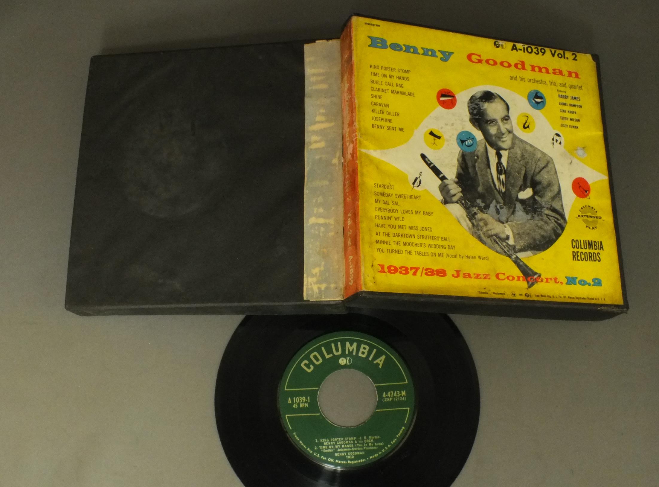 BENNY GOODMAN/1937/38 JAZZ CONCERT NO2 BOX VOL2 A1039 製造国:米国盤 / Media:7inch外観:VG-盤の状態:EX 価格(税込):¥3,300(売約済) 送料 7inch:定形外郵便 360円~LP:定形外郵便 660円~送料は、注文の最終画面で確認頂けます。 > > BENNY GOODMAN/1937/38 JAZZ CONCERT NO2 BOX VOL2 外観 (VG-)特記事項:BOXは、背スレ大。全体的に、軽いウォーターダメージ有り。スレに着色補修。蓋の角に割れ有り。ヘリは、スレや薄いよごれ多め。内側は、シミ大。蓋の内側に破れ有り。外観VG-の共通説明:一見してきれいでは無いが、まだ形は整っている。 盤の状態 (EX)特記事項:5枚とも 薄いスリキズ・スレ軽くある感じ。軽微なものの様子です。盤EXの共通説明:盤面のスリキズが薄いものが少し~軽度 音に出そうなものは無いように見える(軽微なソフトティック音は除く)。 その他:5枚組。 Tweet それぞれの画像をクリックすると、大きい写真が見られます こちらの商品もお勧めです 770円 ARTIE SHAW ORCHESTRA / BORN TO SWING 1,100円 CLAUDE HOPKINS & HIS ORCHESTRA / 1932-1933 1940 990円 MEL LEWIS AND THE JAZZ ORCHESTRA / NATURALLY 990円 BUCK CLAYTON / JAM SESSION VOL.1 AUTOGRAPHEDSIR CHARLESサイン付 660円 DUKE ELLINGTON etc / GRANDI ORCHESTRE 990円 AL HIRT / AL HIRT SWINGIN` DIXIE VOL 4 1,210円 YANK LAWSON & BOB HAGGART / WHAT`S NEW AUTOGRAPHEDWHAT`S NEW RALPH SUTTONサイン付 550円 BUNNY BERIGAN & ORIGINAL DIXIELAND JAZZ BAND / SATURDAY NIGHT SWING CLUB 1936