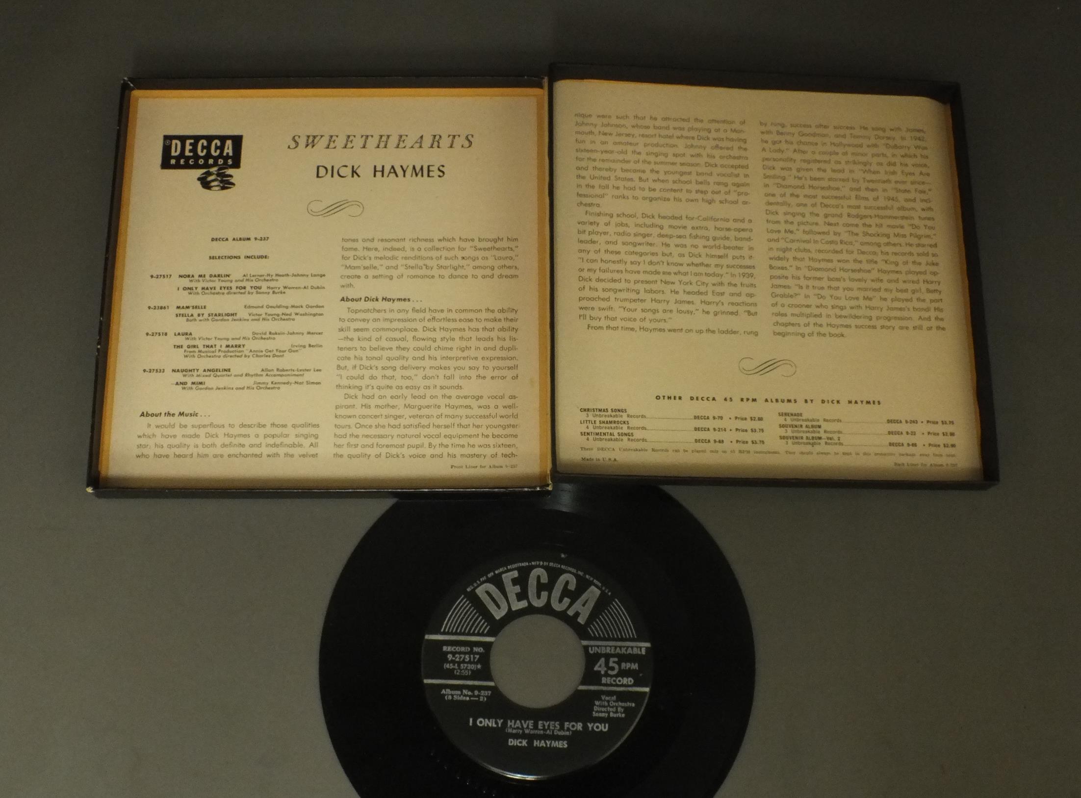 DICK HAYMES/SWEETHEARTS BOX DECCA9 237 製造国:米国盤 / Media:7inch外観:EX盤の状態:EX 価格(税込):¥3,080(売約済) 送料 7inch:定形外郵便 360円~LP:定形外郵便 660円~送料は、注文の最終画面で確認頂けます。 > > DICK HAYMES/SWEETHEARTS BOX 外観 (EX)特記事項:BOXは、角スレ多少有り。ヘリスレが少し有りますが、全体的にはきれいな感じです。外観EXの共通説明:ダメージが限定的。中古品としては保存状態がよい方。シミ、ヨゴレ、スレ 少し~軽度。 盤の状態 (EX)特記事項:4枚とも薄いスリキズ・スレ少しある感じ。一見してきれいな感じです。盤EXの共通説明:盤面のスリキズが薄いものが少し~軽度 音に出そうなものは無いように見える(軽微なソフトティック音は除く)。 Tweet それぞれの画像をクリックすると、大きい写真が見られます こちらの商品もお勧めです 1,100円 TERESA BREWER / GOOD NEWS 550円 POINTER SISTERS / CONTACT 1,650円 JULIE WILSON / SINGS KURT WEILL SONGBOOK 1,980円 JONI JAMES / ITALIANISSIME 1,320円 BING CROSBY / BING CROSBY 1,210円 BOB CROSBYボブ・クロスビー / BOB CROSBY`S BOB CATSボブ・クロスビーのボブ・キャッツ 660円 KATE SMITH / KATE SMITH`S GOLDEN YEARS OF BROADCASTING 770円 BOB CROSBY / THE HITS OF BOB CROSBY`S BOBCAST