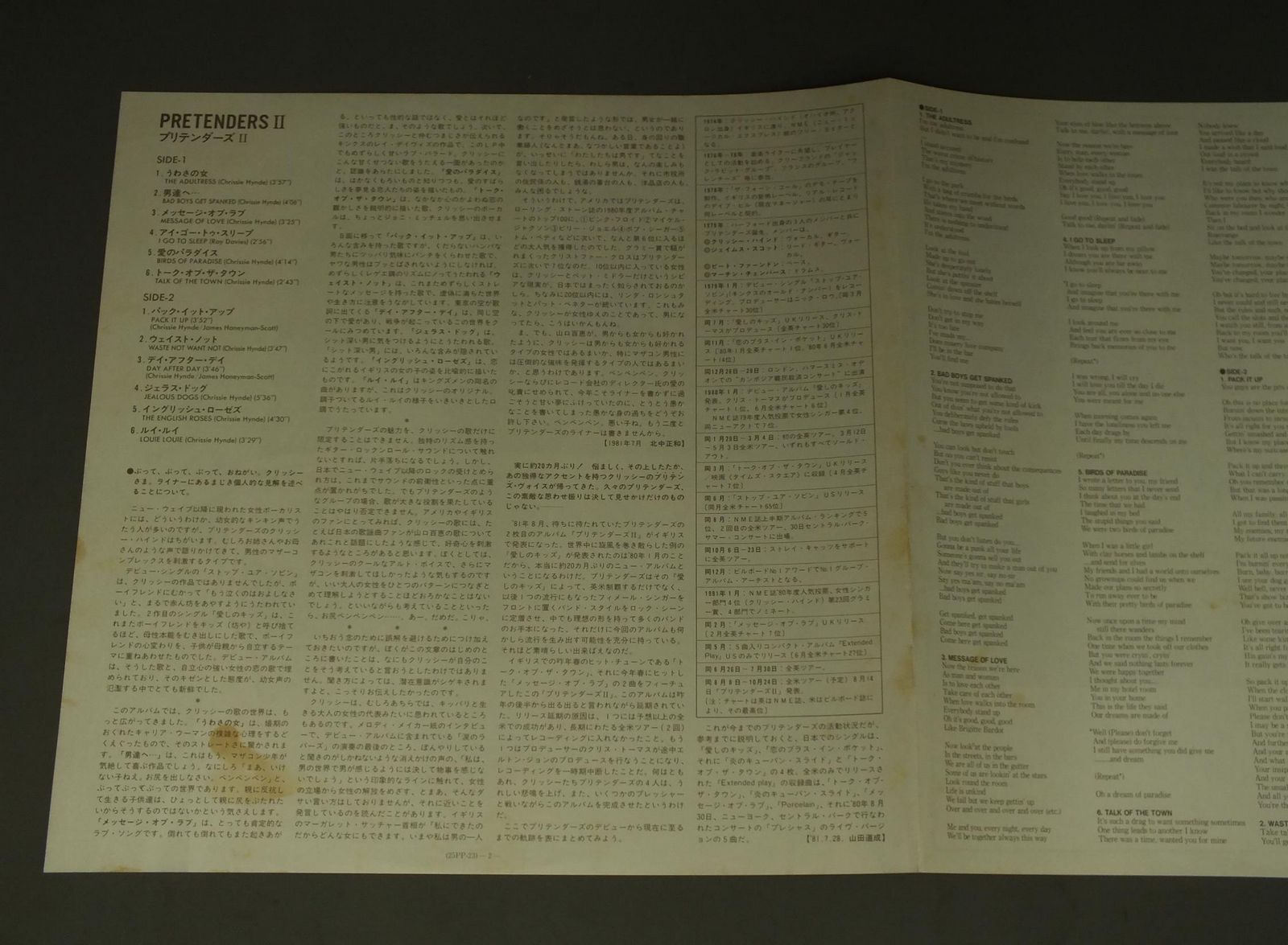 PRETENDERSプリテンダーズ/PRETENDERS 2プリテンダーズ2 25PP23 製造国:日本盤 / Media:LP外観:EX盤の状態:EX+帯:EX 価格(税込):¥880(売約済) 送料 7inch:定形外郵便 360円~LP:定形外郵便 660円~送料は、注文の最終画面で確認頂けます。 > > PRETENDERS/PRETENDERS 2 外観 (EX)特記事項:特記なし。外観EXの共通説明:ダメージが限定的。中古品としては保存状態がよい方。シミ、ヨゴレ、スレ 少し~軽度。 盤の状態 (EX+)特記事項:薄いスリキズ・スレ少し。一見してきれいな状態です。盤EX+の共通説明:盤面の極薄いスリキズ、スレ少し程度 音に出そうなものは無いように見える(極軽微なソフトティック音は除く)。 帯の状態 (EX):特記なし。 Tweet それぞれの画像をクリックすると、大きい写真が見られます こちらの商品もお勧めです 440円 TUBESチューブス / OUTSIDE INSIDEアウトサイド・インサイド 1,320円 BLONDIEブロンディ / AUTOAMERICANオート・アメリカン 1,210円 ULTRAVOXウルトラヴォックス / NEW EUROPEANS新欧州人 1,320円 DEAD OR ALIVEデッド・オア・アライヴ / YOUTHQUAKEユースクエイク 1,320円 ADAM AND THE ANTSアダム&ジ・アンツ / KINGS OF THE WILD FRONTIERアダムの王国 1,650円 BLONDIEブロンディ / EAT TO THE BEAT恋のハートビート 1,320円 DOOL BY DOOLドール・バイ・ドール / GYPSY BLOODジプシー・ブラッド 1,320円 ELVIS COSTELLOエルヴィス・コステロ / GOODBYE CRUEL WORLDグッバイ・クルエル・ワールド