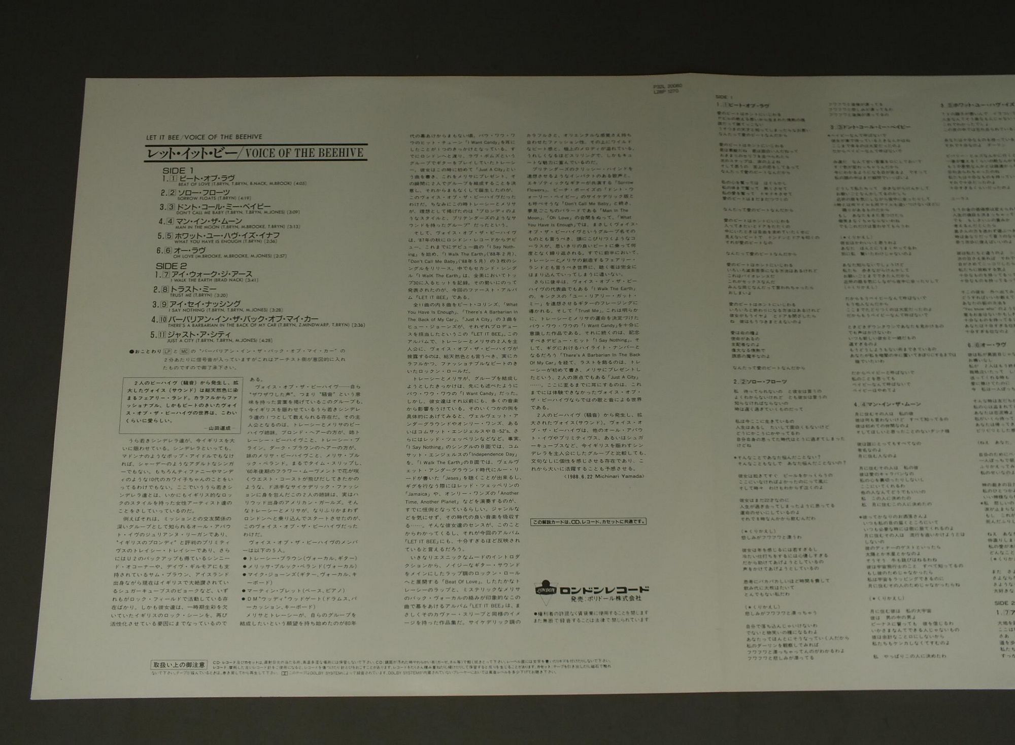 VOICE OF THE BEEHIVEヴォイス・オブ・ザ・ビーハイヴ/LET IT BEE WLPレット・イット・ビー L28P1270 製造国:日本盤 / Media:LP外観:EX盤の状態:EX+ 価格(税込):¥880(売約済) 送料 7inch:定形外郵便 360円~LP:定形外郵便 660円~送料は、注文の最終画面で確認頂けます。 > > VOICE OF THE BEEHIVE/LET IT BEE WLP 外観 (EX)特記事項:ヘリにスレ有。外観EXの共通説明:ダメージが限定的。中古品としては保存状態がよい方。シミ、ヨゴレ、スレ 少し~軽度。 盤の状態 (EX+)特記事項:極薄いスリキズ・スレ少し。一見してきれいな状態です。盤EX+の共通説明:盤面の極薄いスリキズ、スレ少し程度 音に出そうなものは無いように見える(極軽微なソフトティック音は除く)。 その他:見本盤 Tweet それぞれの画像をクリックすると、大きい写真が見られます こちらの商品もお勧めです 440円 TEN TENテン・テン / WALK ONウォーク・オン 770円 CHEAP TRICKチープ・トリック / HEAVEN TONIGHT天国の罠(トリック) 662円 ISLE OF MANアイル・オブ・マン / ISLE OF MANアイル・オブ・マン 440円 BELLE STARSベル・スターズ / BELLE STARSベル・スターズ 1,320円 QUARTERFLASHクウォーターフラッシュ / QUARTERFLASHミッドナイト・フラッシュ 770円 CHEAP TRICKチープ・トリック / HEAVEN TONIGHT天国の罠 770円 CHEAP TRICKチープ・トリック / AT BUDOKANAT 武道館 770円 CULTUTE CLUB / HOUSE ON FIRE