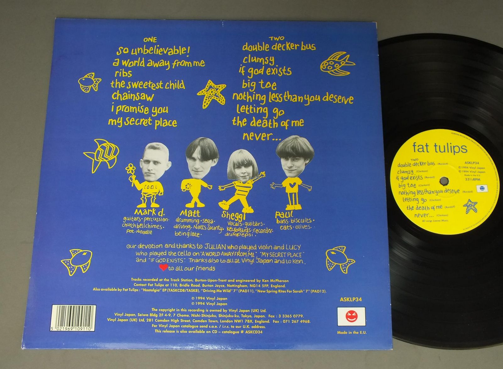 FAT TULIPS/STARFISH ASKLP34 製造国:輸入盤 / Media:LP外観:EX+盤の状態:EX+ 価格(税込):¥3,439(売約済) 送料 7inch:定形外郵便 360円~LP:定形外郵便 660円~送料は、注文の最終画面で確認頂けます。 > > FAT TULIPS/STARFISH 外観 (EX+)特記事項:特記なし。外観EX+の共通説明:中古としては美品、一見してきれいでダメージが軽微。シミ、ヨゴレ、スレ有っても僅か~少し。 盤の状態 (EX+)特記事項:薄いスリキズ・スレ少し。一見してきれいな状態です。盤EX+の共通説明:盤面の極薄いスリキズ、スレ少し程度 音に出そうなものは無いように見える(極軽微なソフトティック音は除く)。 Tweet それぞれの画像をクリックすると、大きい写真が見られます こちらの商品もお勧めです 1,210円 PICKLES / MINDYARD 1,100円 YEAH JAZZ / SIX LANE ENDS 1,980円 VARIOUS ARTISTS (GARDEN OF DELIGHTS PRESENTS ) / SEEK REFUGE FROM YOUR INTOLERABLE SITUATION 3,300円 KING OF LUXEMBOURG / ROYAL BASTARD 1,980円 PRISONSHAKE / ROARING THIRD 660円 BRONSKI BEAT / HUNDREDS & THOUSANDS 770円 BODEANS / OUTSIDE LOOKING 990円 RAJ QUARTET / WHOOPS !WHAT A PALAVER !EL レーベル