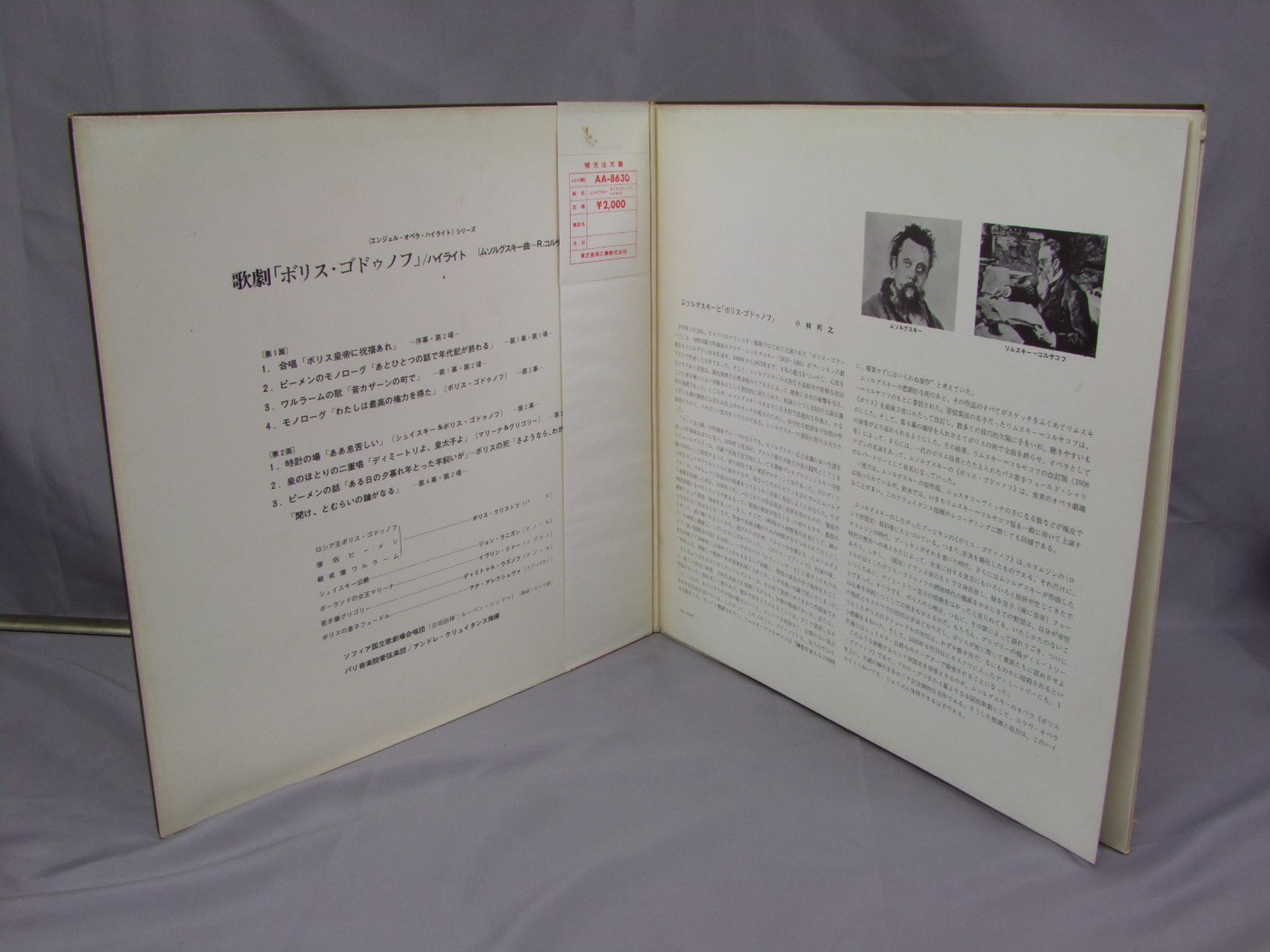 BORIS CHRISTOFFB.クリストフ/MOUSSORGSKY/BORIS GODOUNOV HIGHLIGHTSムソルグスキー/歌劇 ボリス・ゴドゥノフ ハイライト AA8630 製造国:日本盤 / Media:LP外観:EX盤の状態:EX+帯:EX 価格(税込):¥1,100(売約済) 送料 7inch:定形外郵便 360円~LP:定形外郵便 660円~送料は、注文の最終画面で確認頂けます。 レコード検索 > J-POP > BORIS CHRISTOFF/MOUSSORGSKY/BORIS GODOUNOV HIGHLIGHTS 外観 (EX)特記事項:ジャケ表面にスレ多少有り。外観EXの共通説明:ダメージが限定的。中古品としては保存状態がよい方。シミ、ヨゴレ、スレ 少し~軽度。 盤の状態 (EX+)特記事項:極薄いスリキズ・スレ少し。一見してきれいな状態です。盤EX+の共通説明:盤面の極薄いスリキズ、スレ少し程度 音に出そうなものは無いように見える(極軽微なソフトティック音は除く)。 帯の状態 (EX):シミ有。 その他:白見本盤 Tweet それぞれの画像をクリックすると、大きい写真が見られます こちらの商品もお勧めです 990円 ATSUKO AZUMA-YOICHI MIURA東敦子-三浦洋一 / CONTEMPORARY ARTISTS OF JAPAN-12現代日本の演奏家シリーズ=12 東敦子 イタリア歌曲集 990円 ROBERT SHAWロバート・ショウ / BRAHMS LIEBESLIEDER WALTZESブラームス 円舞曲集 `愛の歌` `新・愛の歌` 990円 AKIRA YUYAMA-HITOSHI KOBAYASHI湯山昭-小林仁 / SUNDAY SONATINA日曜日のソナチネ 770円 KARAJAN - BERLIN PHILカラヤン - ベルリン・フィル / BEETHOVEN - MISSA SOLEMNISベートーヴェン - 荘厳ミサ曲 1,320円 GERHARD SCHMIDT-GADENゲルハルト・シュミット・ガーデン / BACH-WEIHNACHTS-ORATORIUMバッハ-クリスマス・オラトリオ 990円 HANS WERNER HENZE / SZENEN AUD ELEGIE FUR JUNGE LIEBENDEヘンツェ - 歌劇若い恋人たちのエレジー 990円 ANNA MOFFOアンナ・モッフォ / THE BEST OF ANNA MOFFOベスト・オブ・モッフォ 990円 COLLEGIUM AUREUMコレギウム・アウレウム合奏団 / MISSA SALISBURGENSISオラツイオ・ベネヴォリ - 53声部のザルツブルク大聖堂
