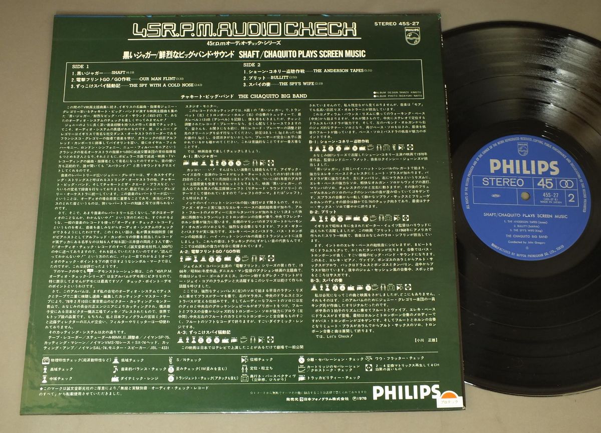 CHAQUITO BIG BANDチャキート・ビッグ・バンド/CHAFT CHAQUITO PLAYS SCREEN MUSIC鮮烈なビッグ・バンド・サウンド 45S27 製造国:日本盤 / Media:LP外観:EX+盤の状態:EX+ 価格(税込):¥1,100(売約済) 送料 7inch:定形外郵便 360円~LP:定形外郵便 660円~送料は、注文の最終画面で確認頂けます。 > > CHAQUITO BIG BAND/CHAFT CHAQUITO PLAYS SCREEN MUSIC 外観 (EX+)特記事項:特記なし。外観EX+の共通説明:中古としては美品、一見してきれいでダメージが軽微。シミ、ヨゴレ、スレ有っても僅か~少し。 盤の状態 (EX+)特記事項:薄いスリキズ・スレ少し。一見してきれいな状態です。盤EX+の共通説明:盤面の極薄いスリキズ、スレ少し程度 音に出そうなものは無いように見える(極軽微なソフトティック音は除く)。 Tweet それぞれの画像をクリックすると、大きい写真が見られます こちらの商品もお勧めです 1,650円 HIDEIKO MATSUMOTO松本英彦 / PREDICTION風紀行 1,650円 MASARU IMADA今田勝 / DAY IN THE PARADISEコーラルの涙 1,210円 ERROLL GARNERエロール・ガーナー / SERENADE TO LAURAセレナード・トゥ・ローラ 990円 ISAO SASAKIイサオ・ササキ / AUTUMN SERENADEオータム・セレナーデ 1,320円 SONNY CLARK TRIOソニー・クラーク・トリオ / SAME TITEL 990円 SHOJI SUZUKI & HIS RHYTHM ACES鈴木章治とリズム・エース / SUZUKAKE NO MICHI新・鈴懸の径 770円 COZY COLE - RED NORVO etcコジー・コール - レッド・ノーヴォ他 / ALL STAR SESSIONSオール・スター・セッション 1,210円 SONNY STITT WITH QUINCY JONES ORCHETRAソニー・スティット・クインシージョーンズ オーケストラ / SAME TITLE