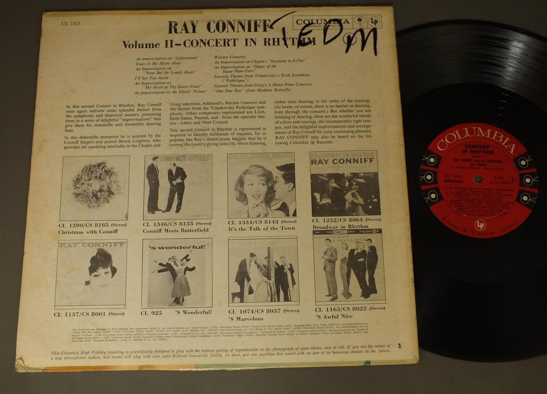 RAY CONNIFF/CONCERT IN RHYTHM-VOLUME 2 CL1415 製造国:米国盤 / Media:LP外観:VG+盤の状態:VG+ 価格(税込):¥1,100(売約済) 送料 7inch:定形外郵便 360円~LP:定形外郵便 660円~送料は、注文の最終画面で確認頂けます。 > > RAY CONNIFF/CONCERT IN RHYTHM-VOLUME 2 外観 (VG+)特記事項:上ヘリにスレやテープ補修。底抜け有り。背スレ有り。ジャケ表面にスレよごれやシミ。外観VG+の共通説明:ダメージやや有り。シミ、ヨゴレ、スレなど多少~やや多め。 盤の状態 (VG+)特記事項:薄いスリキズ・細かいスレ多少。プチ出そうな小キズ、線キズも有ります。少し聴いてみましたが、音自体はしっかりクリアーに鳴っているようでした。盤VG+の共通説明:盤面にスリキズが多少~やや有り、音に出そうなものも多少ある。 Tweet それぞれの画像をクリックすると、大きい写真が見られます こちらの商品もお勧めです 440円 JOHNNY GUARNIERI / JOHNNY GUARNIERI REMEMBERED 880円 PAUL RENARD / MANY KEYBOARDS OF THE AMAZING PAUL RENARD 770円 BOB WILBER / DIZZYFINGERS 770円 HANNA-FONTANA BAND / LIVE AT CONCORD 770円 WOODY HERMAN / LIVE AT MONTEREY 1,540円 EARL FATHA HINES / EARL FATHA HINES 1,100円 AL HIRT / BEST OF AL HIRT 1,320円 SHARKEY AND HIS KINGS OF DIXIELAND / MIDNIGHT ON BOURBON STREET
