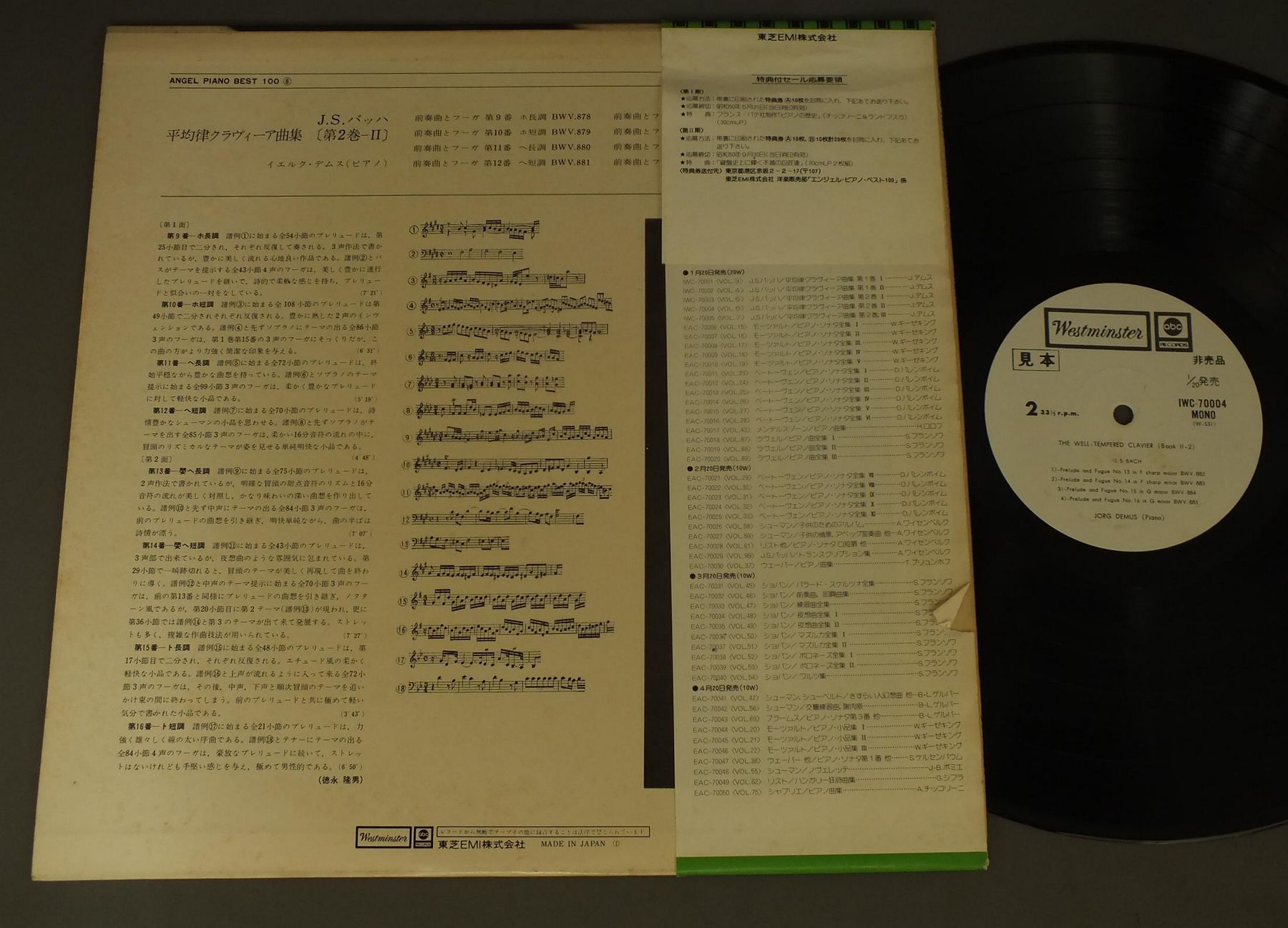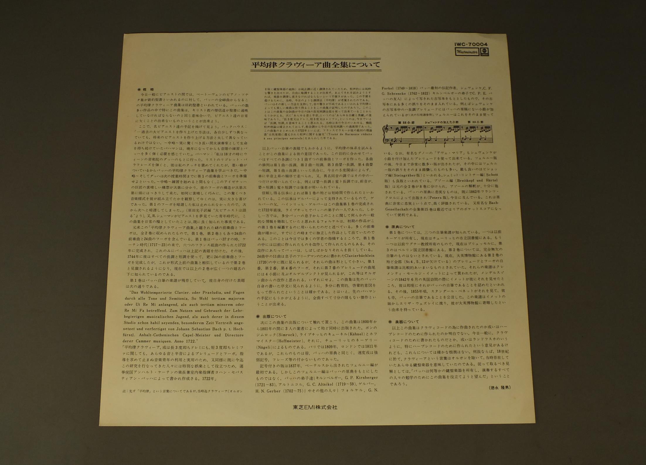 DEMUSデムス/BACH/WELL-TEMPERED CLAVIER(BOOK2-2)バッハ/平均律クラヴィーア曲集(第2巻その2) IWC70004 製造国:日本盤 / Media:LP外観:EX-盤の状態:EX+帯:EX- 価格(税込):¥1,650(売約済) 送料 7inch:定形外郵便 360円~LP:定形外郵便 660円~送料は、注文の最終画面で確認頂けます。 > > DEMUS/BACH/WELL-TEMPERED CLAVIER(BOOK2-2) 外観 (EX-)特記事項:ジャケ表面にシミ、よごれ有。外観EX-の共通説明:ダメージ軽度~多少。 中古品としては普通の状態。シミ、ヨゴレ、スレなど軽く~多少。 盤の状態 (EX+)特記事項:極薄いスリキズ・スレ少し。一見してきれいな状態です。盤EX+の共通説明:盤面の極薄いスリキズ、スレ少し程度 音に出そうなものは無いように見える(極軽微なソフトティック音は除く)。 帯の状態 (EX-):切れ、やぶれ有。ヨレ有。シミ有。 その他:白見本盤 Tweet それぞれの画像をクリックすると、大きい写真が見られます こちらの商品もお勧めです 770円 POLLINIポリーニ / CHOPIN - ETUDESショパン練習曲集 990円 ADAM HARSIEWICZアダム・ハラシェヴィッチ / CHOPIN - NOCTURNESショパン - 夜想曲選 990円 BRENDELブレンデル / SCHUBERT - MOMENTS MUSICAUXシューベルト - 即興の時 990円 P.FRANKLペーター・フランクル / DEBUSSY-PIANO MUSIC COMPLETE VOL6ドビュッシー-ピアノ曲全集 第6集 990円 RUBINSTEINルービンシュタイン / CHOPIN POLONAISESショパン ポロネーズ集 1,320円 MARIE-CLAIRE ALAINマリークレール・アラン / BACH - TOCCATA AND FUGUEバッハ - トッカータとフーガ 990円 ROBLESマリサ・ロブレス / FANTAISIEファンタジー 1,320円 ITZHAK PERLMANイツァーク・パールマン / KREISLERクライスラー - ヴァイオリン名曲集
