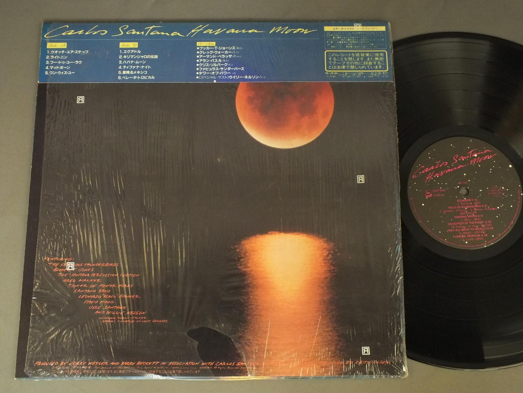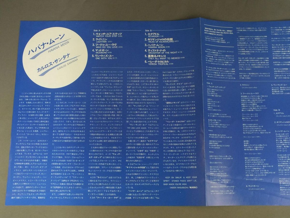 CARLOS SANTANAカルロス・サンタナ/HAVANA MOONハバナ・ムーン 25AP2600 製造国:日本盤 / Media:LP外観:EX+盤の状態:EX+帯:EX+ 価格(税込):¥990(売約済) 送料 7inch:定形外郵便 360円~LP:定形外郵便 660円~送料は、注文の最終画面で確認頂けます。 > > CARLOS SANTANA/HAVANA MOON 外観 (EX+)特記事項:特記なし。外観EX+の共通説明:中古としては美品、一見してきれいでダメージが軽微。シミ、ヨゴレ、スレ有っても僅か~少し。 盤の状態 (EX+)特記事項:薄いスリキズ・スレ少し。一見してきれいな状態です。盤EX+の共通説明:盤面の極薄いスリキズ、スレ少し程度 音に出そうなものは無いように見える(極軽微なソフトティック音は除く)。 帯の状態 (EX+):特記なし。 Tweet それぞれの画像をクリックすると、大きい写真が見られます こちらの商品もお勧めです 770円 JOHN DENVERジョン・デンバー / EVENING WITH JOHN DENVERジョン・デンバー・ライブ 660円 JERRY VALEジェリー・ヴェール / LANGUAGE OF LOVE 60s ISSUE恋の讃歌 ペラジャケ 1,210円 SIMON & GARFUNKELサイモンとガーファンクル / WEDNESDAY MORNING 3AM水曜日の朝午前3時 770円 JACKSON BROWNEジャクソン・ブラウン / LAWYERS IN LOVE愛の使者 990円 JACK BRUCEジャック・ブルース / SONGS FOR A TAILOR真髄 1,210円 MICHEL POLNAREFFミッシェル・ポルナレフ / POLNAREF NOWポルナレフ・ナウ 770円 JOHNNY CASHジョニー・キャシュ / JOHNNY CASH`S GREATEST HITSジョニー・キャシュ・グレーテスト・ヒット 440円 MAX CARLマックス・カール / CIRCLEサークル