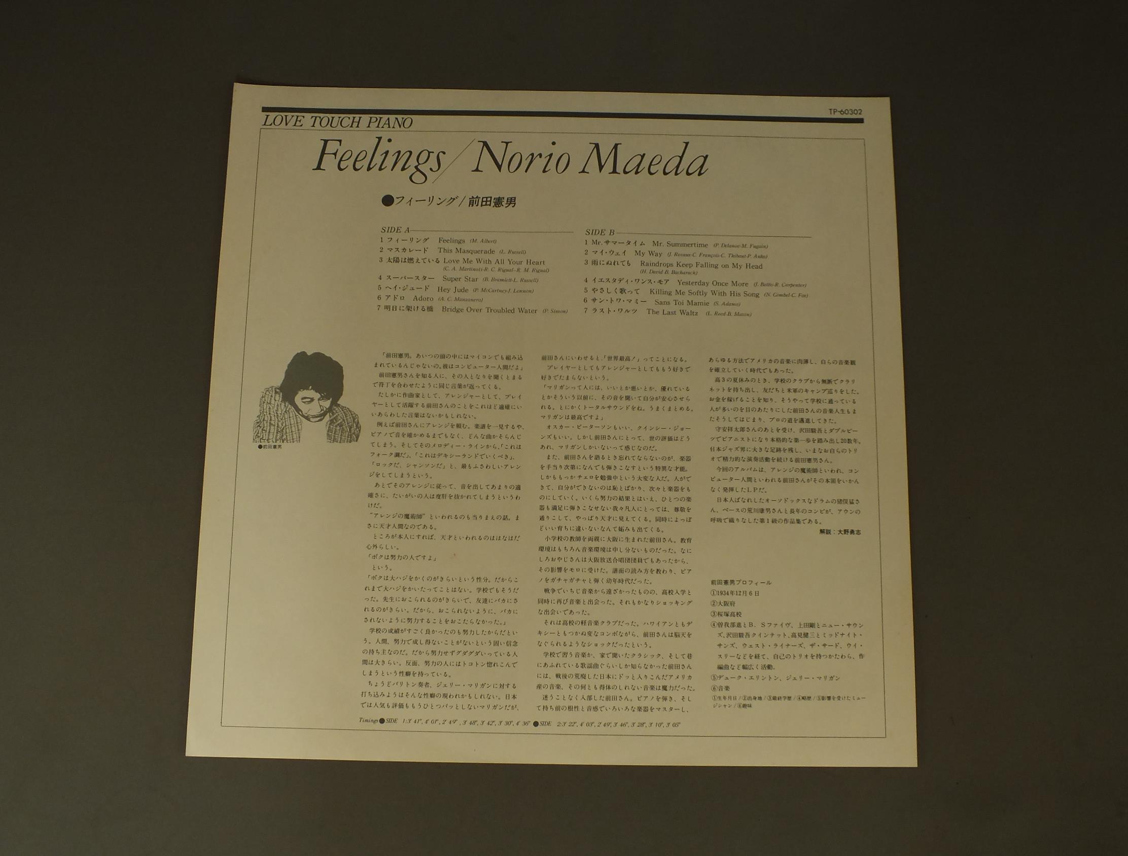 NORIO MAEDA前田憲男/FEELINGSフィーリング TP60302 製造国:日本盤 / Media:LP外観:VG+盤の状態:EX帯:EX- 価格(税込):¥770(売約済) 送料 7inch:定形外郵便 360円~LP:定形外郵便 660円~送料は、注文の最終画面で確認頂けます。 > > NORIO MAEDA/FEELINGS 外観 (VG+)特記事項:ジャケ表面にスレ有、シミ、よごれ有。外観VG+の共通説明:ダメージやや有り。シミ、ヨゴレ、スレなど多少~やや多め。 盤の状態 (EX)特記事項:薄いスリキズ・スレ軽くある感じ。軽微なものの様子です。盤EXの共通説明:盤面のスリキズが薄いものが少し~軽度 音に出そうなものは無いように見える(軽微なソフトティック音は除く)。 帯の状態 (EX-):シミ有。 その他:白見本盤 Tweet それぞれの画像をクリックすると、大きい写真が見られます こちらの商品もお勧めです 990円 DAVE GRUSINデイヴ・グルーシン / ONE OF A KINDデイヴ・グルーシン・ジェントル・サウンド 1,210円 SONNY ROLLINSソニー・ロリンズ / THE WAY I FEELザ・ウェイ・アイ・フィール 1,320円 GATO BARBIERIガトー・バルビエリ / UNDER FIREアンダー・ファイア 1,650円 McOY TYNERマッコイ・タイナー / SONG OF THE NEW WORLDソング・オブ・ザ・ニュー・ワールド 1,320円 JAMES LAST BANDジェームス・ラスト・バンド / SEDUCTIONセダクション 770円 SINGERS UNLIMITEDシンガーズ・アンリミテッド / CAPELLAア・カペラ 1,210円 JACK SHELDON & HIS WEST COAST FRIENDSジャック・シェルドンとヒズ・ウェスト・コースト・フレンズ / ANGEL WINGSエンジェル・ウィングス 880円 MODERN JAZZ QUARTETモダン・ジャズ・クワルテット / BASED ON BACH & THE BLUESバッハとブルースを基に