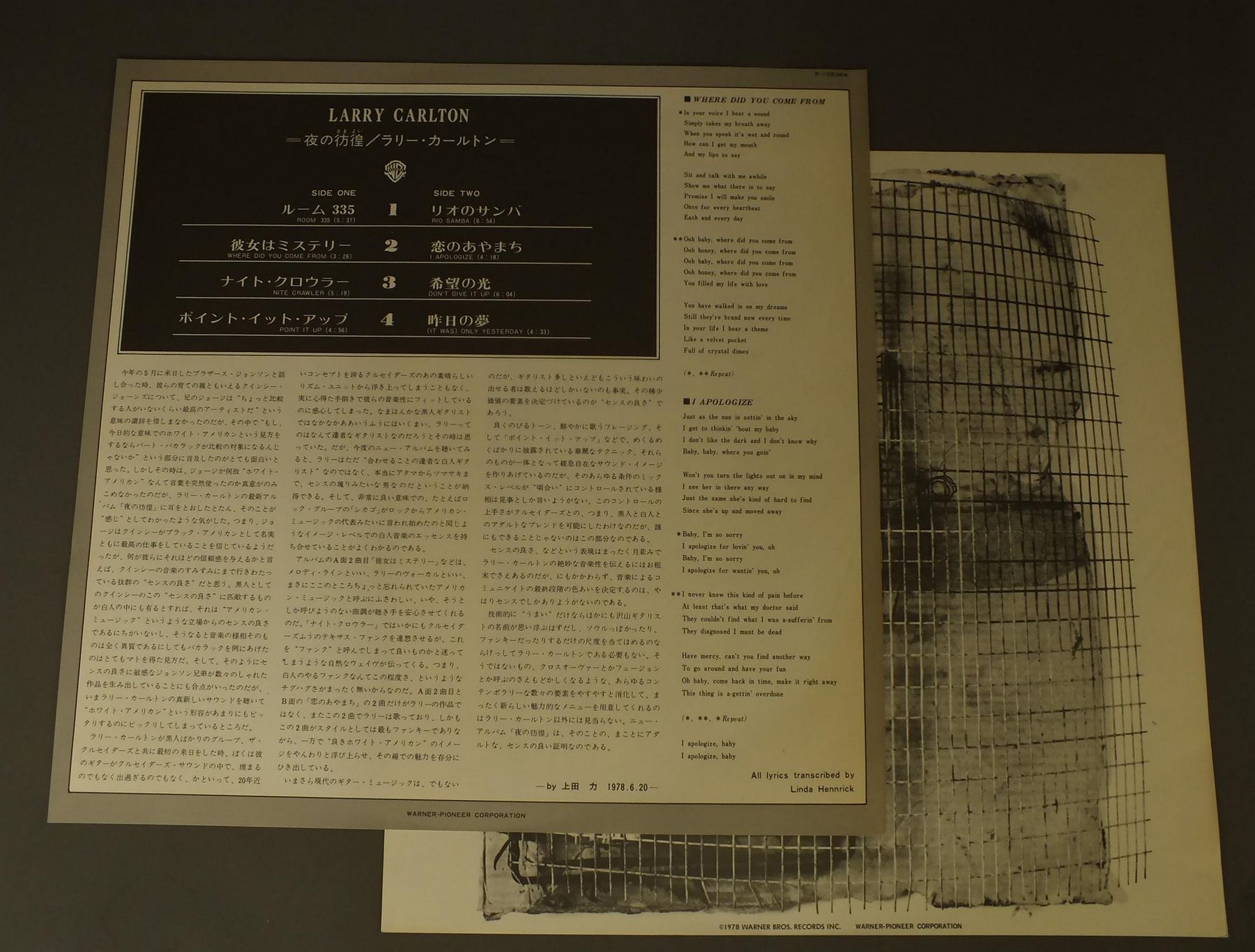 LARRY CARLTONラリー・カールトン/夜の彷徨 P10536W 製造国:日本盤 / Media:LP外観:EX盤の状態:EX+帯:EX- 価格(税込):¥770(売約済) 送料 7inch:定形外郵便 360円~LP:定形外郵便 660円~送料は、注文の最終画面で確認頂けます。 レコード検索 > > LARRY CARLTON/ 外観 (EX)特記事項:ジャケ表面にスレ有。外観EXの共通説明:ダメージが限定的。中古品としては保存状態がよい方。シミ、ヨゴレ、スレ 少し~軽度。 盤の状態 (EX+)特記事項:薄いスリキズ・スレ少し。一見してきれいな状態です。盤EX+の共通説明:盤面の極薄いスリキズ、スレ少し程度 音に出そうなものは無いように見える(極軽微なソフトティック音は除く)。 帯の状態 (EX-):シミ有。 Tweet それぞれの画像をクリックすると、大きい写真が見られます こちらの商品もお勧めです 1,650円 MASARU IMADA今田勝 / MINT BREEZEミント・ブリーズ 1,210円 DEREK SMITHディレク・スミス / NEW SOILニュー・ソワール 770円 GEORGE LEWISジョージ・ルイス / IN TOKYO1963年8月都響厚生年金会館ライブ 880円 WILTON FELDERウイルトン・フェルダー / WE ALL HAVE A STAR星の伝説 880円 JOE SULLIVAN-JESS STACY-WILLIE THE LION SMITH etcジョー・ブシュキン-ジェス・スティシー-ウィリーザ・ライオンスミス 他 / CHAIRMEN OF THE BOARD VOL2ピアノ・ジャズの競演 第2集 1,210円 BUD FREEMAN`S SUMMA CUM LAUDE ORCH.バド・フリーマンズ・スマ・カム・ロード・オーケストラ / CHICAGO AUSTIN HIGH SCHOOL JAZZ IN HI-FIシカゴ・オースチン・ハイスクール・ジャズ 770円 GEORGE LEWISジョージ・ルイス / ON PARADEオン・パレード 1,320円 THE JOHN BUNCH QUINTETジョン・バンチ / JONE`S OTHER BUNCHジョンズ・アザー・バンチ