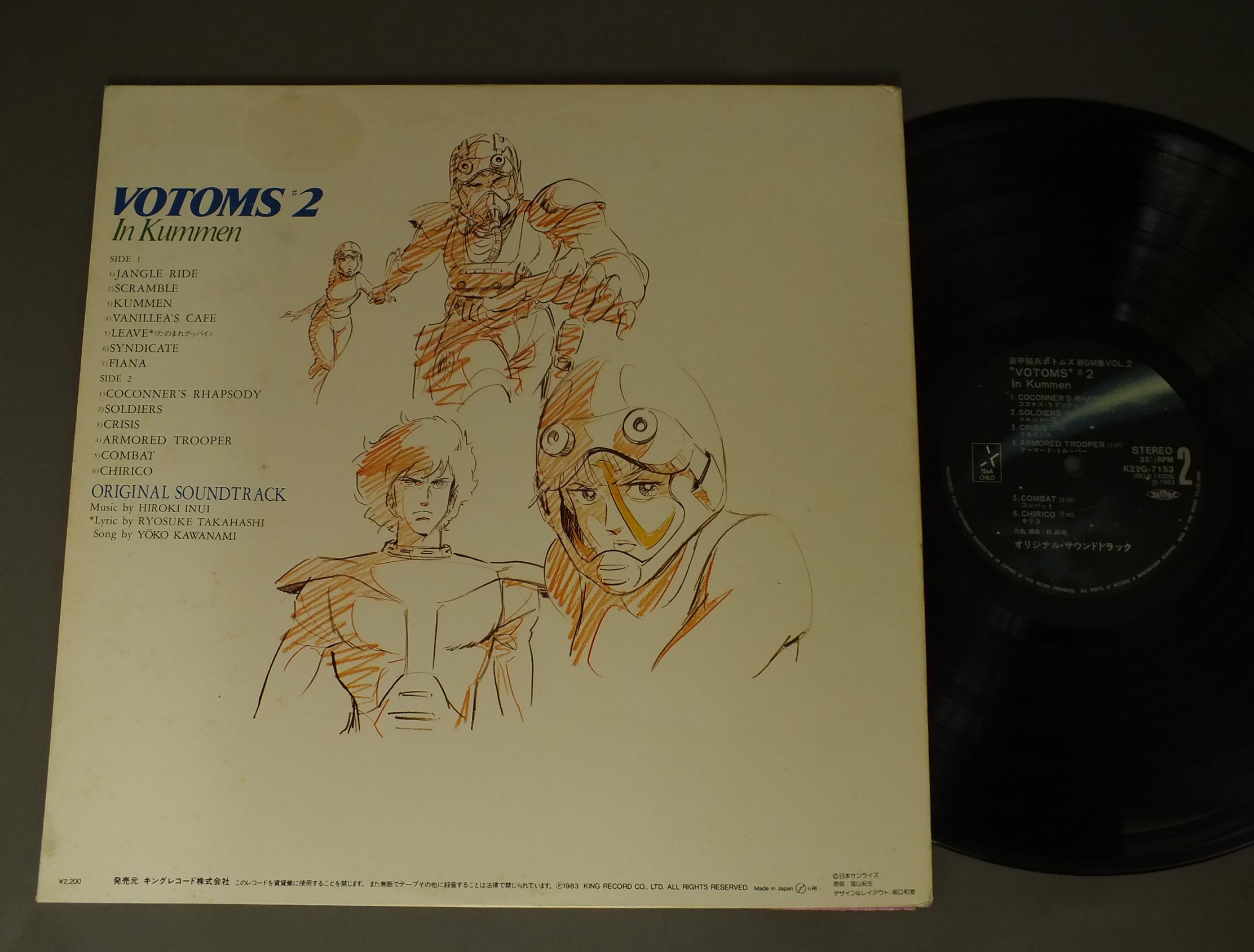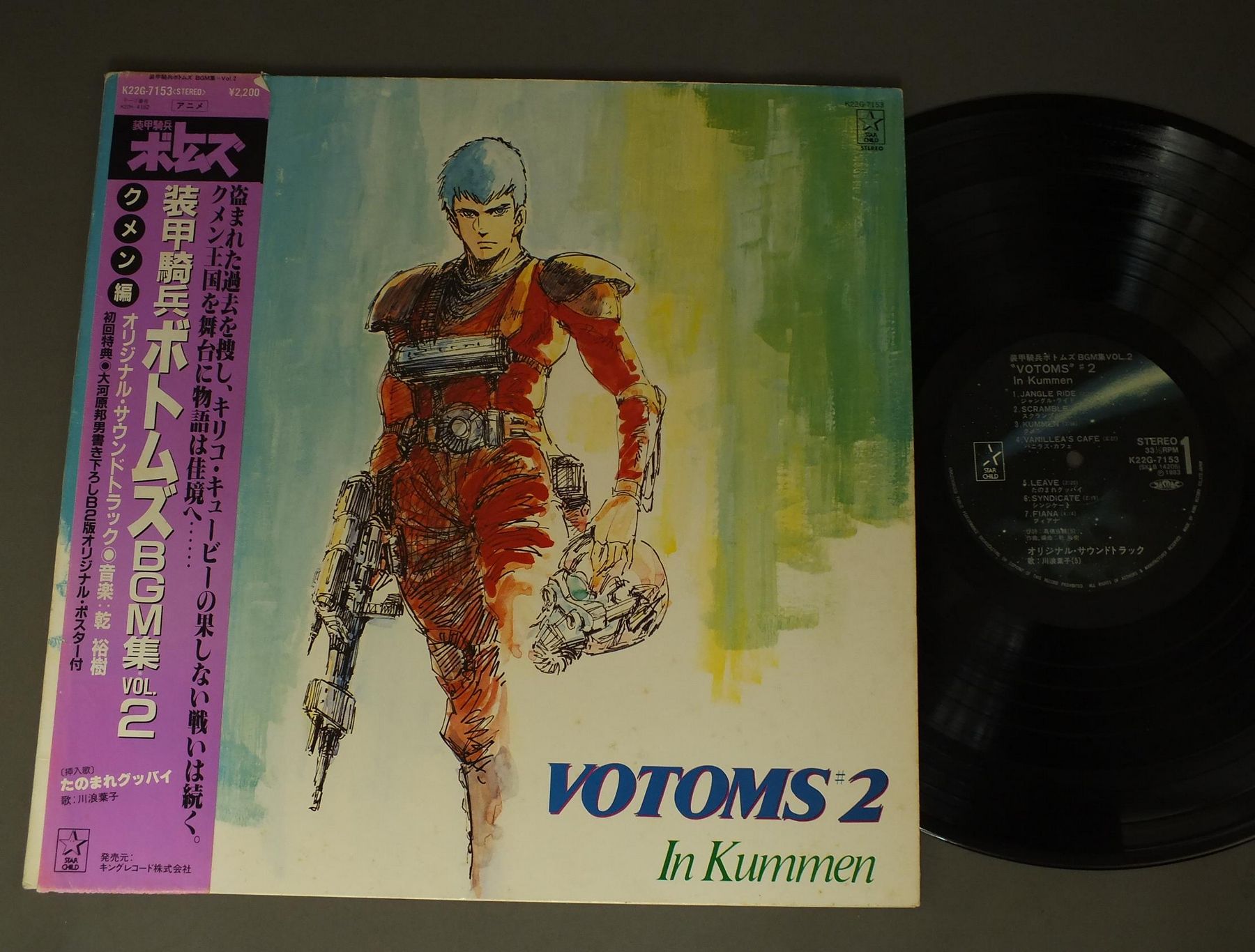 ANIME VOTOMS/IN KUMMENアニメ「装甲騎兵ボトムズ BGM集 VOL.2 K22G7153 製造国:日本盤 / Media:LP外観:EX-盤の状態:EX-帯:VG+ 価格(税込):¥770(売約済) 送料 7inch:定形外郵便 360円~LP:定形外郵便 660円~送料は、注文の最終画面で確認頂けます。 > > ANIME VOTOMS/IN KUMMEN 外観 (EX-)特記事項:ヘリにスレ有。ジャケ表面にシミ、よごれ有、スレ有。外観EX-の共通説明:ダメージ軽度~多少。 中古品としては普通の状態。シミ、ヨゴレ、スレなど軽く~多少。 盤の状態 (EX-)特記事項:薄いスリキズ・細かい表面スレ多少ある感じ。殆どが軽微なものの様子です。盤EX-の共通説明:盤面のスリキズが多少有り。音に出そうなものは殆ど無いように見える~さほど気にならないぐらいの軽いプチ数カ所程度。 帯の状態 (VG+):切れ、やぶれ有。 Tweet それぞれの画像をクリックすると、大きい写真が見られます こちらの商品もお勧めです 770円 CRUSHER JOEクラッシャージョウ / SYMPHONIC SUITE交響組曲 550円 ROUND-VERNIAN VIFAM銀河漂流バイファム / MUSIC & DRAMAMUSIC & DRAMA 770円 TV ANIME AIM FOR THE ACEアニメ エースをねらえ ! / VOL2新エースをねらえ ! 770円 ROUND-VERNIAN VIFAM銀河漂流バイファム / SOUNDTRACK EXTRA EDITION音楽集・番外編 770円 ANIMETOPIAアニメトピア / 3アニメトピア3 770円 ROUND-VERNIAN VIFAM銀河漂流バイファム / ORIGINAL SOUND TRACK音楽集 1,320円 KEITH EMARSONキース・エマーソン / ORIGINAL SOUNDTRACK HARMAGEDON映画 幻魔大戦ドラマ編 770円 ROUND-VERNIAN銀河漂流バイファム / VIFAM VOL2音楽集 VOL2