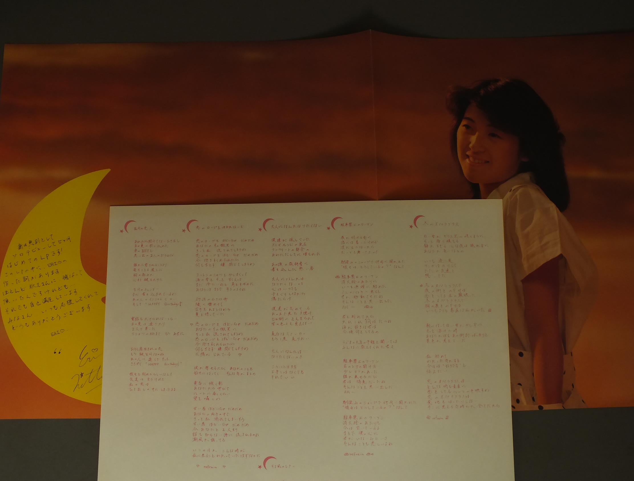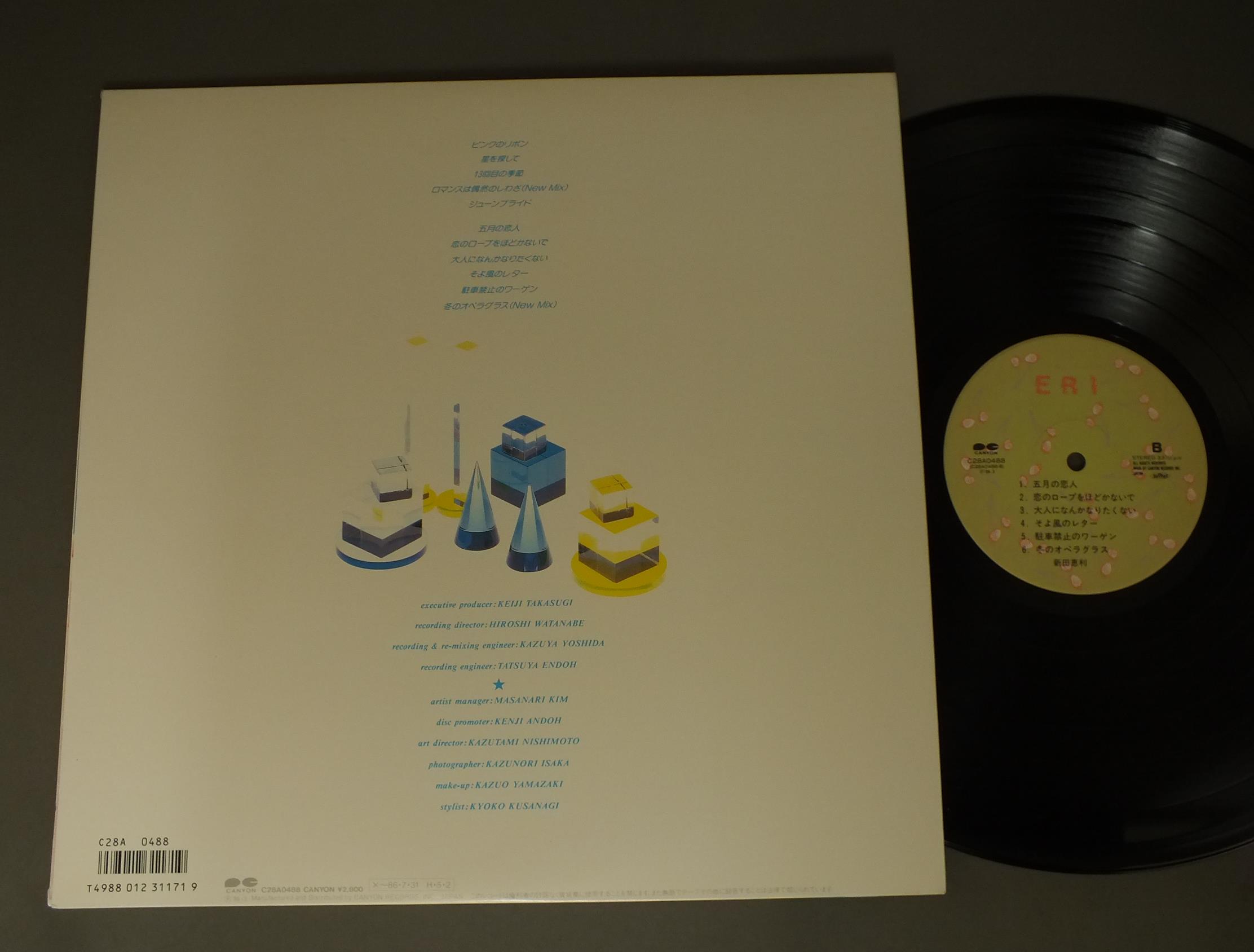 ERI NITTA新田恵利/ERI C28A0488 製造国:日本盤 / Media:LP外観:EX+盤の状態:EX帯:EX+ 価格(税込):¥880(売約済) 送料 7inch:定形外郵便 360円~LP:定形外郵便 660円~送料は、注文の最終画面で確認頂けます。 > > ERI NITTA/ERI 外観 (EX+)特記事項:ジャケ表面にスレ有、シミ、よごれ有。外観EX+の共通説明:中古としては美品、一見してきれいでダメージが軽微。シミ、ヨゴレ、スレ有っても僅か~少し。 盤の状態 (EX)特記事項:薄いスリキズ・スレ軽くある感じ。軽微なものの様子です。盤EXの共通説明:盤面のスリキズが薄いものが少し~軽度 音に出そうなものは無いように見える(軽微なソフトティック音は除く)。 帯の状態 (EX+):特記なし。 Tweet それぞれの画像をクリックすると、大きい写真が見られます こちらの商品もお勧めです 990円 SONOKO KAWAI河合その子 / MODE DE SONOKOモード・デ・その子 1,320円 MAKO ISHINO石野真子 / MY COLLECTIONマイ・コレクション 770円 SHOKO SAWADA沢田聖子 / YUMENO KATACHI夢のかたち 1,320円 MIKI ASAKURA麻倉未稀 / SEXY ELEGANCEセクシー・エレガント 550円 CHIEMI堀ちえみ / KAZE NO SASAYAKI風のささやき 880円 YUMI MORIO森尾 由美 / YOU & ME 2,640円 MINAKO HONDA本田美奈子 / MINAKO THE VIRGIN CONCERTMINAKO ザ・ヴァージン・コンサート 880円 SONOKO KAWAI河合その子 / SONOKOその子