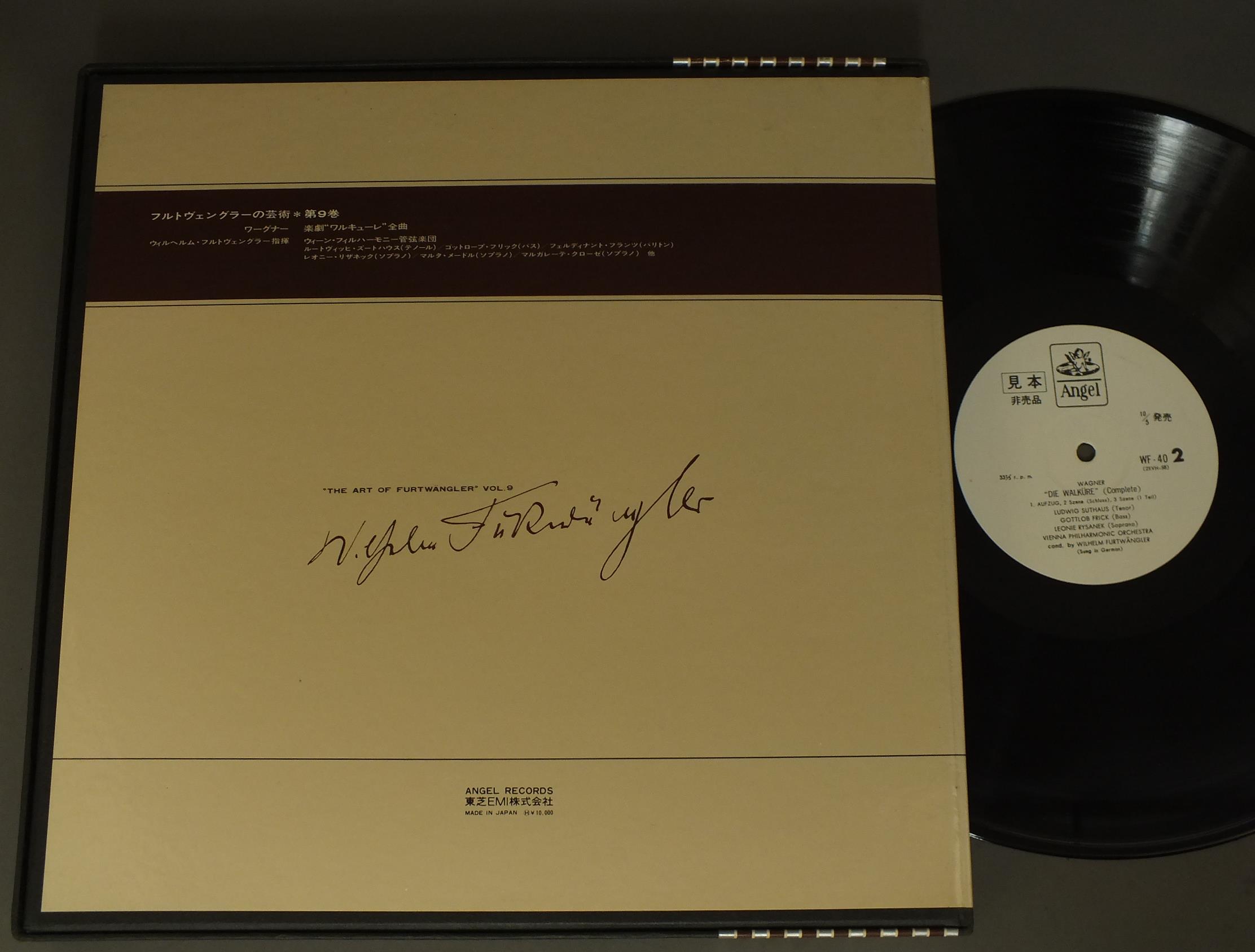 FURTWANGLERフルトヴェングラー/WAGNER DIE WALKURE(COMPLETE)ワーグナー/ワルキューレ WF40-44 製造国:日本盤 / Media:LP外観:EX盤の状態:EX 価格(税込):¥3,300(売約済) 送料 7inch:定形外郵便 360円~LP:定形外郵便 660円~送料は、注文の最終画面で確認頂けます。 > > FURTWANGLER/WAGNER DIE WALKURE(COMPLETE) 外観 (EX)特記事項:ブックレット表紙にシミ外観EXの共通説明:ダメージが限定的。中古品としては保存状態がよい方。シミ、ヨゴレ、スレ 少し~軽度。 盤の状態 (EX)特記事項:薄いスリキズ・スレ少しある感じ。一見してきれいな感じです。盤EXの共通説明:盤面のスリキズが薄いものが少し~軽度 音に出そうなものは無いように見える(軽微なソフトティック音は除く)。 帯の状態 ():シミ有。 その他:白見本盤 5枚組 Tweet それぞれの画像をクリックすると、大きい写真が見られます こちらの商品もお勧めです 2,420円 CALLAS - VOTTO - SCALA OPERA HOUSE MILANカラス - ヴォットー - ミラノ・スカラ座管弦楽団 / VIERDI - UN BALLO IN MASCHERA 3LP BOXヴェルディ - 仮面舞踏会 3枚組 1,320円 KLEMPERER - PHILHARMONIA ORCHESTRA / BEETHOVEN - FIDELIO 3LP SET 990円 HANS HOTTERハンス・ホッタ― / SCHUBERT - SCHWANENGESANGシューベルト - 歌曲集 白鳥の歌 990円 KIYOSHI IGARASHI五十嵐喜芳 / JAPANESE SONG VOL2五十嵐喜芳のすべて VOL2 日本のうた-城ヶ島の雨 1,210円 ALFRED DELLERアルフレッド・デラ― - 二―ル・ジェンキンス - モーリス・ベーバン他 / WILLIAM BYRD - MASS FOR 3 4 & 5 VOICES 3LP BOX SETウィリアム・バード - 三声部 四声部 五声部のミサ曲 - モテトゥス集 3枚組 770円 FISCHER DIESKAU - JORG DEMUSディースカウ - イェルク・デームス / LOEWE - LIEDER UND BALLADEN NACH TEXTENルーヴェ - ゲーテの詩による歌曲とバラード 990円 BOSKOVSKY - VIENNA MOZART ENSEMBLEボスコフスキー - ウィーン・モーツアルト合奏団 / MOZART - COMPLETE DANCES & MARCHES VOL1 3LP SETモーツアルト部局と行進曲全集第1巻 3 990円 LEHMANN-ULANOWSKYレーマン-ウラノフスキー / SCHUBERT-SCHUMANN-MENDELSSOHN-LIEDERシューベルト- 若い尼僧 他