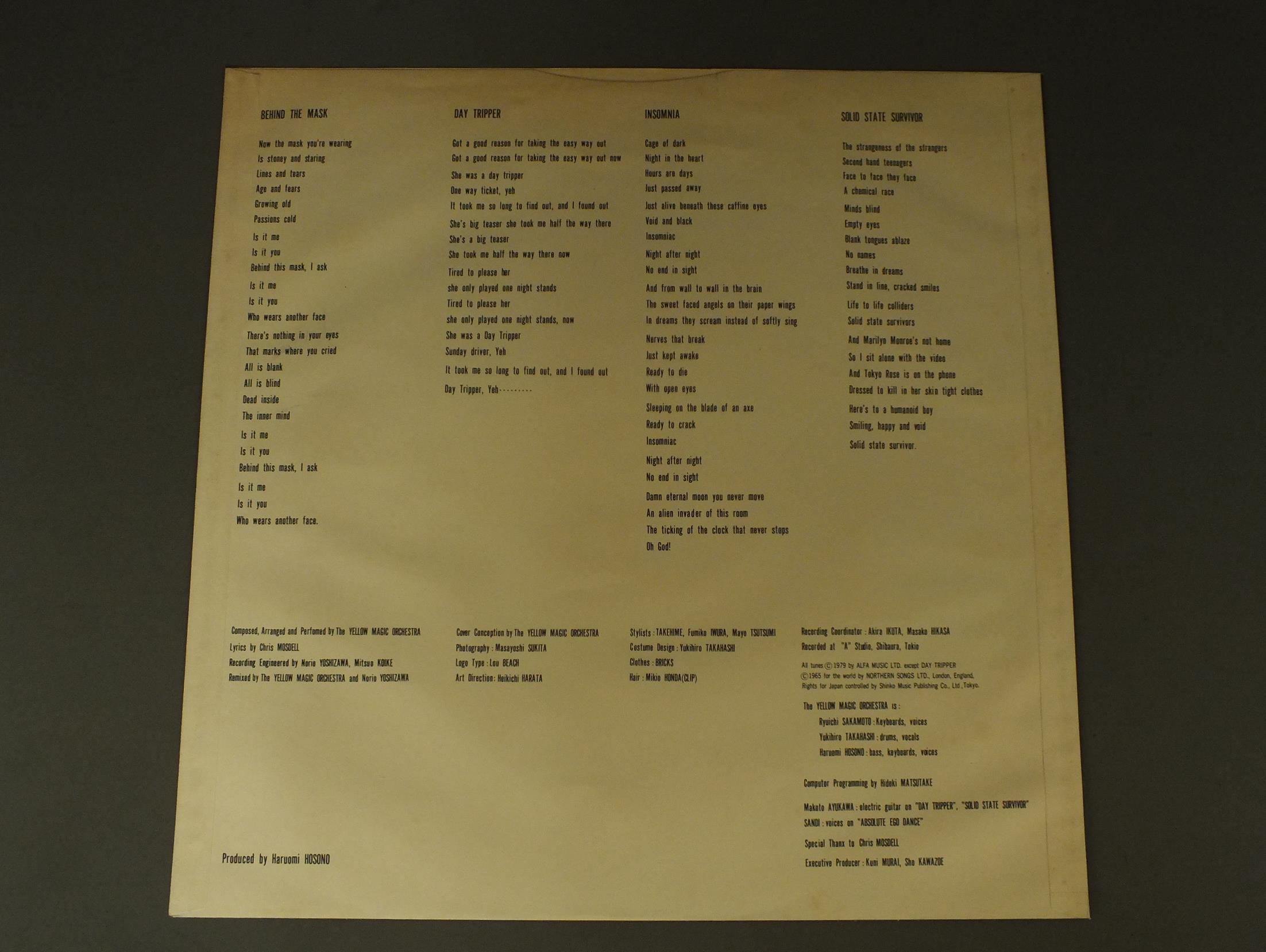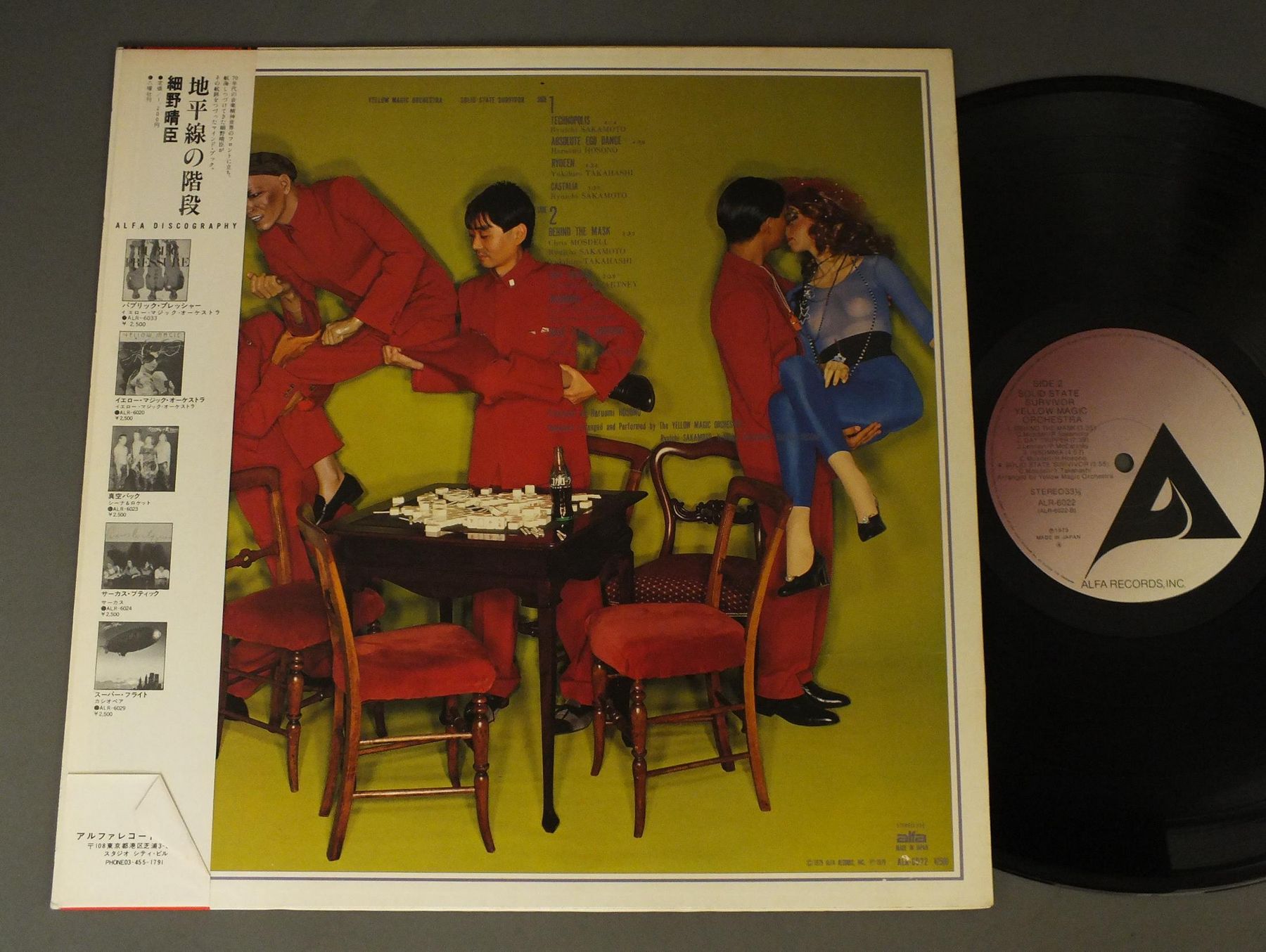 YELLOW MAGIC ORCHESTRAイエロー・マジック・オーケストラ/SOLID STATE SURVIVORソリッド・ステイト・サヴァイヴァー ALR6022 製造国:日本盤 / Media:LP外観:EX盤の状態:EX+帯:EX 価格(税込):¥660(売約済) 送料 7inch:定形外郵便 360円~LP:定形外郵便 660円~送料は、注文の最終画面で確認頂けます。 > > YELLOW MAGIC ORCHESTRA/SOLID STATE SURVIVOR 外観 (EX)特記事項:特記なし。外観EXの共通説明:ダメージが限定的。中古品としては保存状態がよい方。シミ、ヨゴレ、スレ 少し~軽度。 盤の状態 (EX+)特記事項:極薄いスリキズ・スレ少し。一見してきれいな状態です。盤EX+の共通説明:盤面の極薄いスリキズ、スレ少し程度 音に出そうなものは無いように見える(極軽微なソフトティック音は除く)。 帯の状態 (EX):特記なし。 Tweet それぞれの画像をクリックすると、大きい写真が見られます こちらの商品もお勧めです 1,980円 MASAKO OHYA大屋政子 / LIVE CONCERTライブコンサート 1,320円 SHOGO HAMADA浜田省吾 / SAND CASTLE 1,320円 NANA KINOMI木の実ナナ / BEST OF NANAベスト・オブ・ナナ-うぬぼれワルツ 880円 JUNKO OHASHI大橋純子 / MY LOVEたそがれマイ・ラブ 770円 YOSUI INOUE井上陽水 / YOSUI 2 ( SENTIMENTAL )陽水?センチメンタル 550円 CHAGE & ASUKAチャゲ&飛鳥 / 4th ALBUM 21 CENTURY21世紀 770円 `SHOW` AIKAWA哀川翔 / ANTITHESE TRAIN ANTITHESE FLIGHTアンチテーゼ・トレイン アンチテーゼフライト 440円 MARI AMACHI天地真理 / BRIDGE OF A RAINBOW虹をわたって