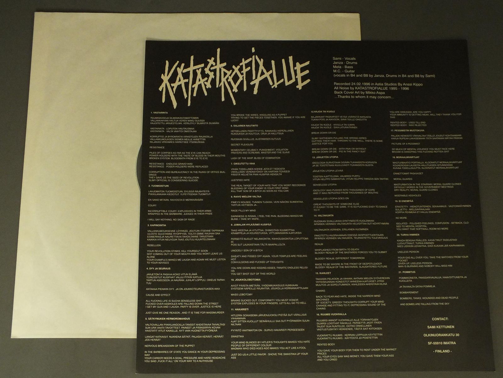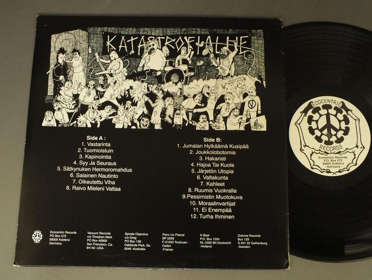 KATASTROFIALUE/OIKEUTETTU VIHA ER#139LP 製造国:独盤 / Media:LP外観:EX盤の状態:EX 価格(税込):¥1,650(売約済) 送料 7inch:定形外郵便 360円~LP:定形外郵便 660円~送料は、注文の最終画面で確認頂けます。 > > KATASTROFIALUE/OIKEUTETTU VIHA 外観 (EX)特記事項:背やヘリにスレ有り。外観EXの共通説明:ダメージが限定的。中古品としては保存状態がよい方。シミ、ヨゴレ、スレ 少し~軽度。 盤の状態 (EX)特記事項:薄いスリキズ・スレ軽くある感じ。殆どが軽微なものの様子です。盤EXの共通説明:盤面のスリキズが薄いものが少し~軽度 音に出そうなものは無いように見える(軽微なソフトティック音は除く)。 Tweet それぞれの画像をクリックすると、大きい写真が見られます こちらの商品もお勧めです 1,320円 RAPED EPLIEPTICS etc / COM STAINS OVER MY RECORD COLLECTION 1,980円 CONFLICT / TURNING REBELLION INTO MONEY 770円 SIXTEEN TONS / HEADSHOT 1,320円 STRAY CATS / GONNA BALL 990円 KINGS OF OBLIVION / ALL THIS MADNESS 2,750円 FRENZYフレンジー / HALL OF MIRRORSホール・オブ・ミラーズ 770円 DAVY JONES LOCKER / GREEN ALBUM 770円 DUKES / DUKES