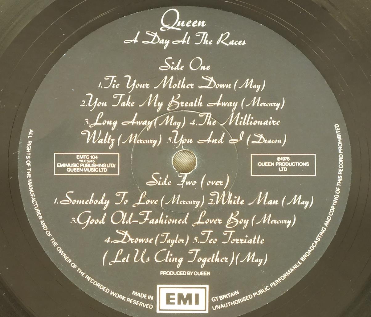 QUEEN/DAY AT THE RACES初回マト EMTC104 製造国:英国盤 / Media:LPMatrix:1U 1U外観:EX盤の状態:EX- 価格(税込):¥9,350(売約済) 送料 7inch:定形外郵便 360円~LP:定形外郵便 660円~送料は、注文の最終画面で確認頂けます。 > > QUEEN/DAY AT THE RACES 外観 (EX)特記事項:上下ヘリスレや表ジャケヘリにスレ多少有り。ジャケ表面は多少ヨレシワやスレ、細かいスリキズ等有りますが、全体的にしっかりした印象。オリジナルインナーもヨレやよごれ無く、抜けも無い状態。外観EXの共通説明:ダメージが限定的。中古品としては保存状態がよい方。シミ、ヨゴレ、スレ 少し~軽度。 盤の状態 (EX-)特記事項:薄いスリキズ・スレ軽くある感じ。ほとんどが軽微なものの様子です。A2の静かな部分で、少し軽プチ有りますが、全体的には殆ど気になら無い感じ。 曲間など、静かなところを中心に聴いて見ましたが、チリプチ軽度で音もしっかり鳴っていました。盤EX-の共通説明:盤面のスリキズが多少有り。音に出そうなものは殆ど無いように見える~さほど気にならないぐらいの軽いプチ数カ所程度。 Tweet それぞれの画像をクリックすると、大きい写真が見られます こちらの商品もお勧めです