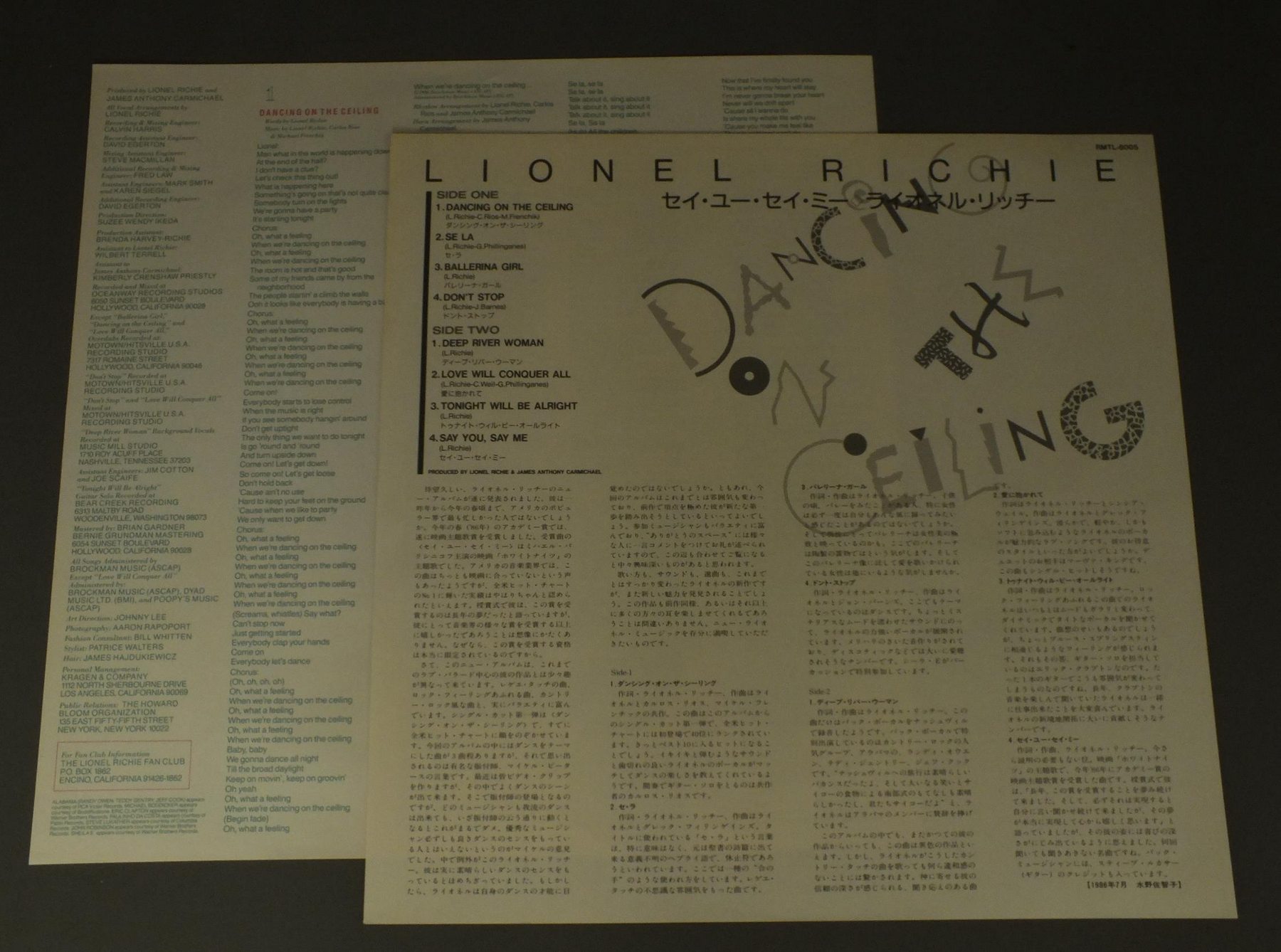 LIONEL RICHIEライオネル・リッチー/DANCING ON THE CEILINGセイ・ユー・セイ・ミー RMTL8005 製造国:日本盤 / Media:LP外観:EX+盤の状態:EX帯:EX+ 価格(税込):¥770(売約済) 送料 7inch:定形外郵便 360円~LP:定形外郵便 660円~送料は、注文の最終画面で確認頂けます。 > > LIONEL RICHIE/DANCING ON THE CEILING 外観 (EX+)特記事項:特記なし。外観EX+の共通説明:中古としては美品、一見してきれいでダメージが軽微。シミ、ヨゴレ、スレ有っても僅か~少し。 盤の状態 (EX)特記事項:薄いスリキズ・スレ軽くある感じ。軽微なものの様子です。盤EXの共通説明:盤面のスリキズが薄いものが少し~軽度 音に出そうなものは無いように見える(軽微なソフトティック音は除く)。 帯の状態 (EX+):特記なし。 Tweet それぞれの画像をクリックすると、大きい写真が見られます こちらの商品もお勧めです 1,210円 DAZZ BANDダズ・バンド / KEEP IT LIVEキープ・イット・ライブ 1,210円 TEMPTATIONSテンプテーションズ / REUNION再会 990円 SPINNERSスピナーズ / SPINNERS 8スピナーズ・エイト 1,210円 TEDDY PENDERGRASSテディ・ペンダーグラス / TEDDY LIVE ! COAST TO COASTライブ!コースト・トゥ・コースト 880円 GLADYS KNIGHT & THE PIPSグラディス・ナイト&ザ・ピップス / I FEEL A SONGアイ・フィール・ア・ソング 770円 CHAMPAIGNシャンペーン / MODERN HEARTモダン・ハート 440円 VARIOUS GOSPEL SINGERS / RAINBOW OF LIVING GOSPEL虹色の祈り -コンテンポラリー・ゴスペルの世界 1,210円 JERMAINE JACKSONジャーメイン・ジャクソン / LET`S GET SERIOUSレッツ・ゲット・シーリアス