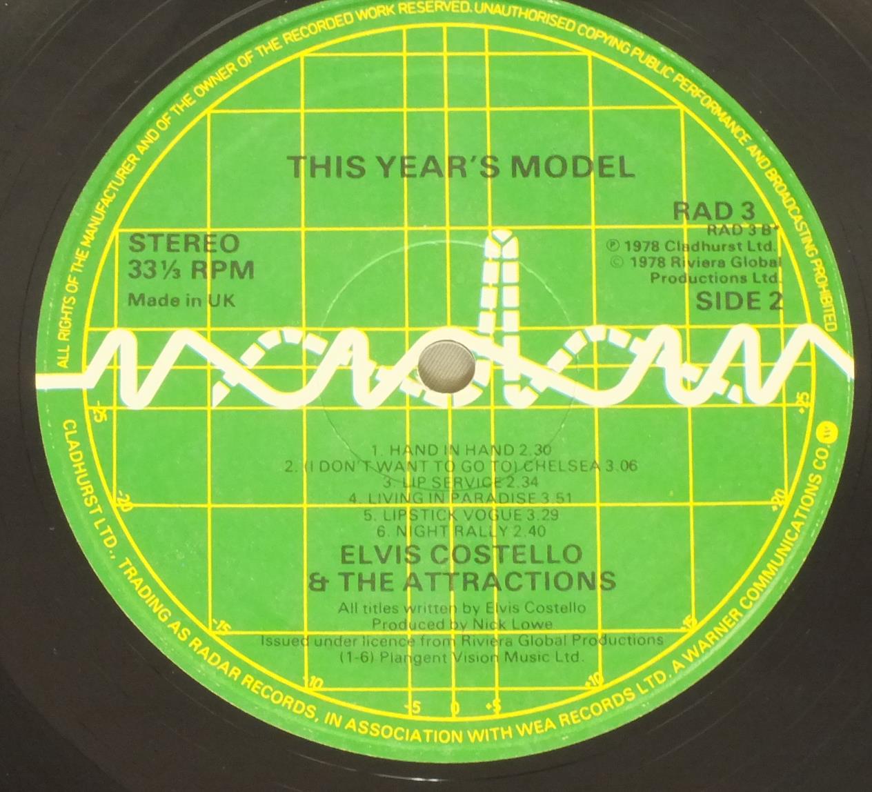 ELVIS COSTELLO/THIS YEARS MODEL初回シングル付 DRAD3 製造国:英国盤 / Media:LPMatrix:A3 B1外観:EX盤の状態:EX 価格(税込):¥9,350(売約済) 送料 7inch:定形外郵便 360円~LP:定形外郵便 660円~送料は、注文の最終画面で確認頂けます。 > > ELVIS COSTELLO/THIS YEARS MODEL 外観 (EX)特記事項:上下ヘリスレ多少有り。ジャケ表面は全体的にスレやスリキズ、よごれ等は少ない感じ。オリジナルインナーはヨレや抜けの無いしっかりした状態。おまけシングルの入っているレイダーのカンパニースリーブはヘリスレ多め。底抜け有。外観EXの共通説明:ダメージが限定的。中古品としては保存状態がよい方。シミ、ヨゴレ、スレ 少し~軽度。 盤の状態 (EX)特記事項:薄いスリキズ・スレ少しある程度。音に出そうなものもなく一見してきれいな状態です。曲間など、静かなところを中心に聴いて見ましたが、チリノイズ少ないきれいな再生具合でした。シングル盤も薄いスリキズ少し程度。盤EXの共通説明:盤面のスリキズが薄いものが少し~軽度 音に出そうなものは無いように見える(軽微なソフトティック音は除く)。 Tweet それぞれの画像をクリックすると、大きい写真が見られます こちらの商品もお勧めです 4,950円 JOLT / JOLT 3,080円 POLECATS WITH ROBIN SCOTT / CULT HEROES 4,400円 SHAM 69 / TELL US THE TRUTH 3,300円 MOOD SIX / MATTER OFF 4,950円 DEVO / WE ARE DEVO 3,520円 STRANGLERS / AURAL SCULPTURE 6,600円 DAMNED / LIVE IN NEWCASTLE 2,640円 VARIOUS PUNK ARTISTS / YUP IN FLAMES