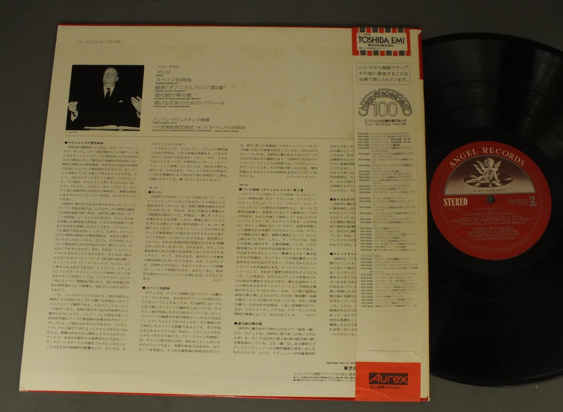 ANDRE CLUYTENSクリュイタンス/RAVEL/BOLERO ETC.ラヴェル/ボレロ他 EAC81022 製造国:日本盤 / Media:LP外観:EX盤の状態:EX+ 価格(税込):¥990(売約済) 送料 7inch:定形外郵便 360円~LP:定形外郵便 660円~送料は、注文の最終画面で確認頂けます。 > > ANDRE CLUYTENS/RAVEL/BOLERO ETC. 外観 (EX)特記事項:特記なし。外観EXの共通説明:ダメージが限定的。中古品としては保存状態がよい方。シミ、ヨゴレ、スレ 少し~軽度。 盤の状態 (EX+)特記事項:極薄いスリキズ・スレ少し。一見してきれいな状態です。盤EX+の共通説明:盤面の極薄いスリキズ、スレ少し程度 音に出そうなものは無いように見える(極軽微なソフトティック音は除く)。 Tweet それぞれの画像をクリックすると、大きい写真が見られます こちらの商品もお勧めです 1,320円 WALDO DE LOS RIOSワルド・デ・ロス・リオス / SINFONIAS8つの偉大なシンフォニー 990円 KARAJAN-MICHEL SCHWALBEカラヤン-ミシエル・シュヴァルベ / R. STRAUSS-EIN HELDENLEBENR・シュトラウス-英雄の生涯 1,430円 ANDRE - RICHTER - MUNCHENER BACH ORCHESTRAアンドレ - リヒター - ミュンヘン・バッハオーケストラ / CONCERTOS BY TELEMANN & HANDELテレマン、ヘンデル協奏曲集 1,320円 MITROPOULOS / IPPOLITOV-IVANOV-CAUCASIAN SKETCHES 1,320円 YEPES - THE NATIONAL ORCHESTRA OF SPAINイエペス - スペイン国立管弦楽団 / CONCERTO DE ARANJUEZアランフェス協奏曲 990円 KARAJANカラヤン / R. STRAUSS-TILL EULENSIEGEL`Sモーツァルト-交響曲第35番 ハフナー-R.シュトラウス-交響詩 ティル・オイレンシュピーゲルの愉快ないたずら 990円 KEMPEケンペ / STRAWINSKI DER FEUERVOGEL BALLETT SUITEストラヴィンスキー バレエ組曲 `火の鳥` ブリトゥン 鎮魂交響曲 1,870円 KUBELIK - BOSTON SYMPHOMY ORCHESTRAクーベリック - ボストン交響楽団 / SMETANA - MA VLASTスメタナ - 交響詩わが祖国