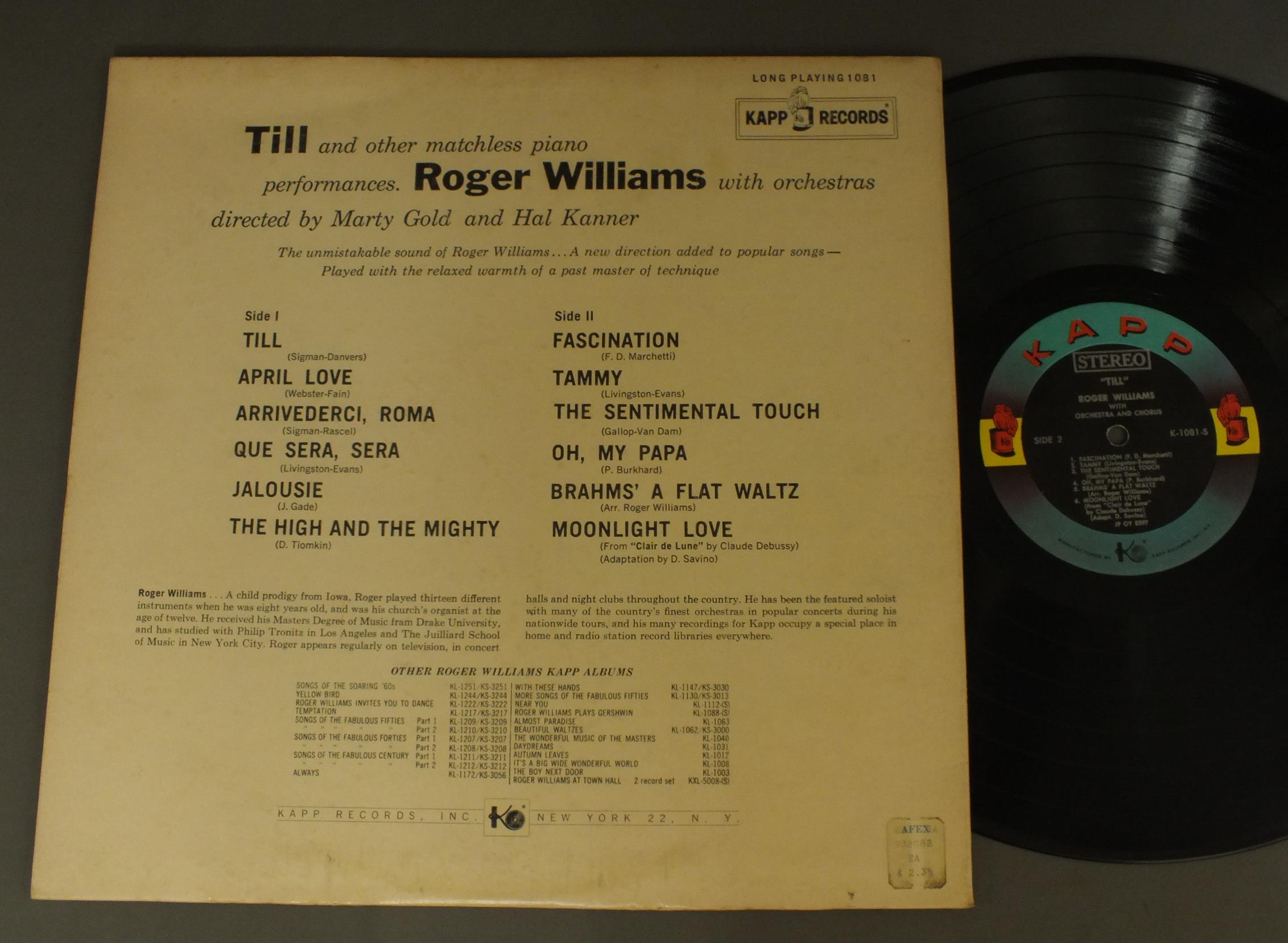 ROGER WILLIAMS/TILL K1081S 製造国:米国盤 / Media:LP外観:EX-盤の状態:EX- 価格(税込):¥990(売約済) 送料 7inch:定形外郵便 360円~LP:定形外郵便 660円~送料は、注文の最終画面で確認頂けます。 > > ROGER WILLIAMS/TILL 外観 (EX-)特記事項:特記なし。外観EX-の共通説明:ダメージ軽度~多少。 中古品としては普通の状態。シミ、ヨゴレ、スレなど軽く~多少。 盤の状態 (EX-)特記事項:薄いスリキズ・細かい表面スレ軽くある感じです。プチ出そうな所は少し。軽微なものが中心の様子です。盤EX-の共通説明:盤面のスリキズが多少有り。音に出そうなものは殆ど無いように見える~さほど気にならないぐらいの軽いプチ数カ所程度。 Tweet それぞれの画像をクリックすると、大きい写真が見られます こちらの商品もお勧めです 3,850円 CHARLIE PARKER / HISTORICAL MASTERPIECES 3LP BOX 770円 DON COSTA / MODERN DELIGHTS 2,640円 ERIC DOLPHY / GREAT CONCERT OF ERIC DOLPHY 1,650円 BOB SCOBEY`S FRISCO JAZZ BAND / BEAUTY AND THE BEAT 1,320円 MARK MURPHY / RAH 770円 GUY LOMBARDO / PRESENTS KENNY GARDNER 990円 DICK CARY / AMAZING DICK CARY AUTOGRAPHEDRALPH SUTTONサイン付 770円 LIONEL HAMPTON / HAMP THE CHAMP