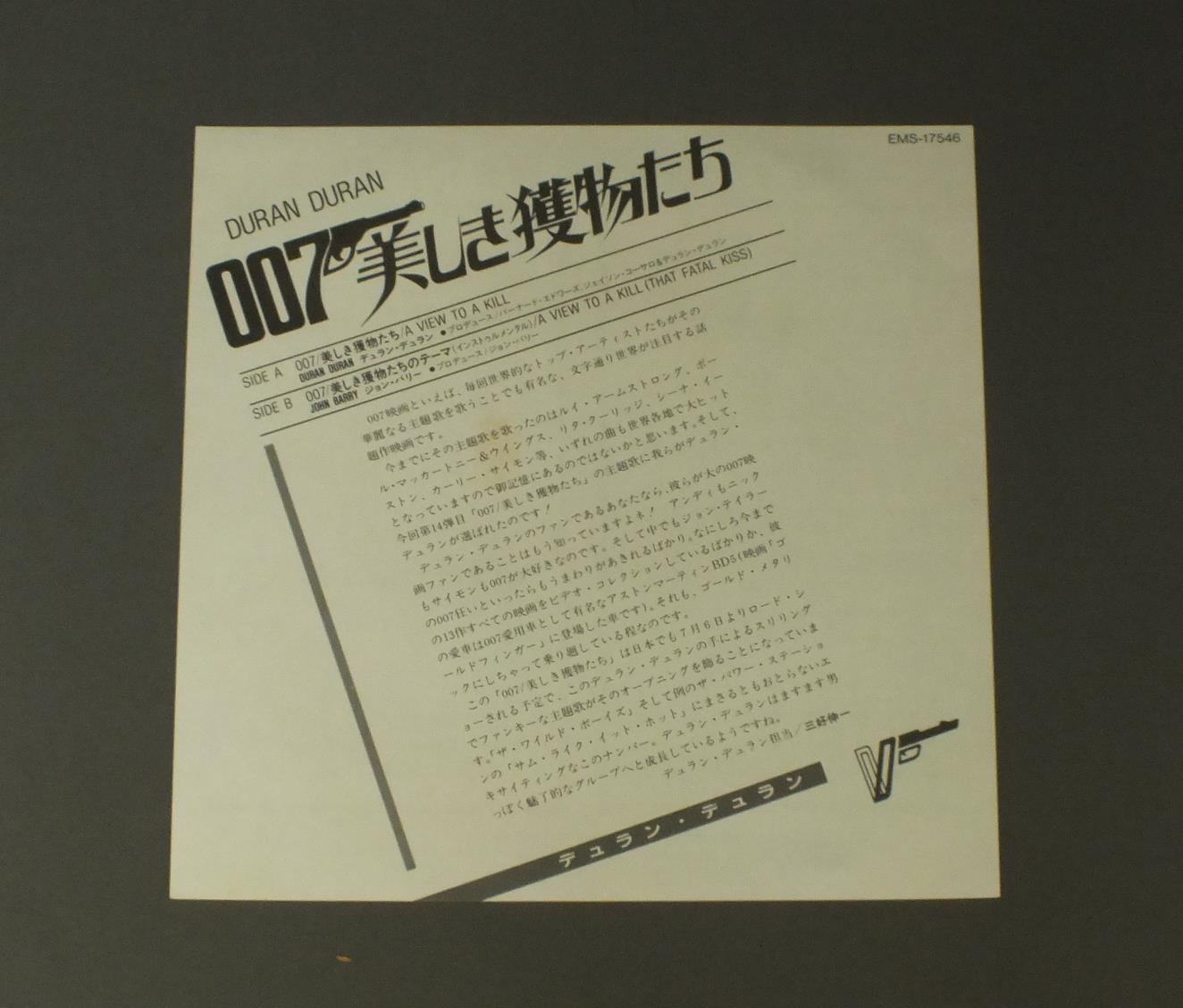 DURAN・DURANデュラン・デュラン/VIEW TO A KILL映画「007/美しき獲物たち」 007 美しき獲物たち EMS17546 製造国:日本盤 / Media:7inch外観:EX盤の状態:EX+ 価格(税込):¥330(売約済) 送料 7inch:定形外郵便 360円~LP:定形外郵便 660円~送料は、注文の最終画面で確認頂けます。 > > DURAN・DURAN/VIEW TO A KILL 外観 (EX)特記事項:歌詞カードに薄い小さなシミ。外観EXの共通説明:ダメージが限定的。中古品としては保存状態がよい方。シミ、ヨゴレ、スレ 少し~軽度。 盤の状態 (EX+)特記事項:極薄いスリキズ・スレ少し。一見してきれいな状態です。盤EX+の共通説明:盤面の極薄いスリキズ、スレ少し程度 音に出そうなものは無いように見える(極軽微なソフトティック音は除く)。 Tweet それぞれの画像をクリックすると、大きい写真が見られます こちらの商品もお勧めです 440円 TEN TENテン・テン / WALK ONウォーク・オン 1,320円 CLASSIX NOUVEAUXクラシックス・ヌヴォー / NIGHT PEOPLE夜行人間 550円 TOUCH / TOUCH 550円 HUNG CHUNGワン・チャン / HUNG CHUNGダンス・ホール・デイズ 770円 CHEAP TRICKチープ・トリック / HEAVEN TONIGHT天国の罠(トリック) 770円 NENAネーナ / ? (FRAGEZEICHEN)? (クエスチョンマーク) 1,210円 GO WESTゴー・ウェスト / MORE BANGS & CRASHESモア・バン ! アンド・クラッシュ ! 550円 CORBIN HANNER BANDコーバン・ハナー・バンド / SON OF AMERICAサン・オブ・アメリカ